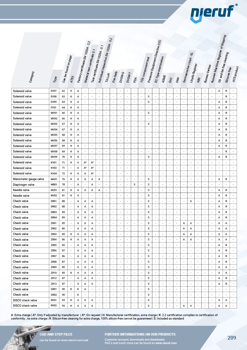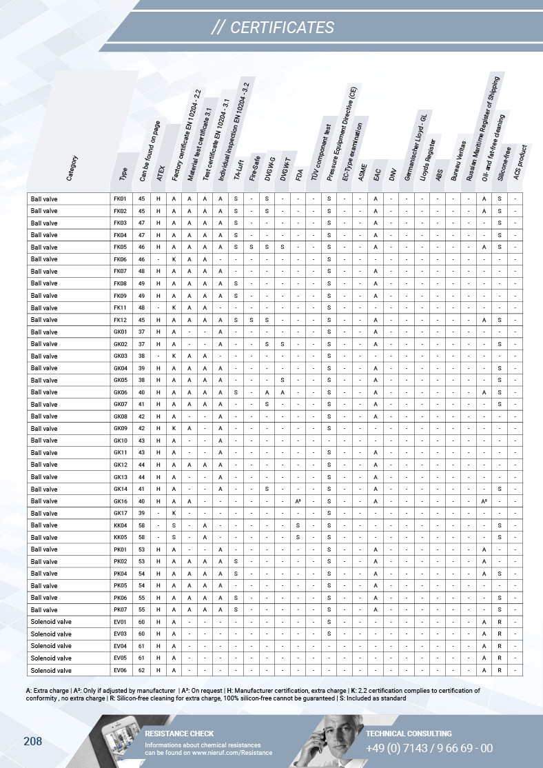 The certificate overview shows you for each NieRuf product whether a product certificate is available and under which conditions.