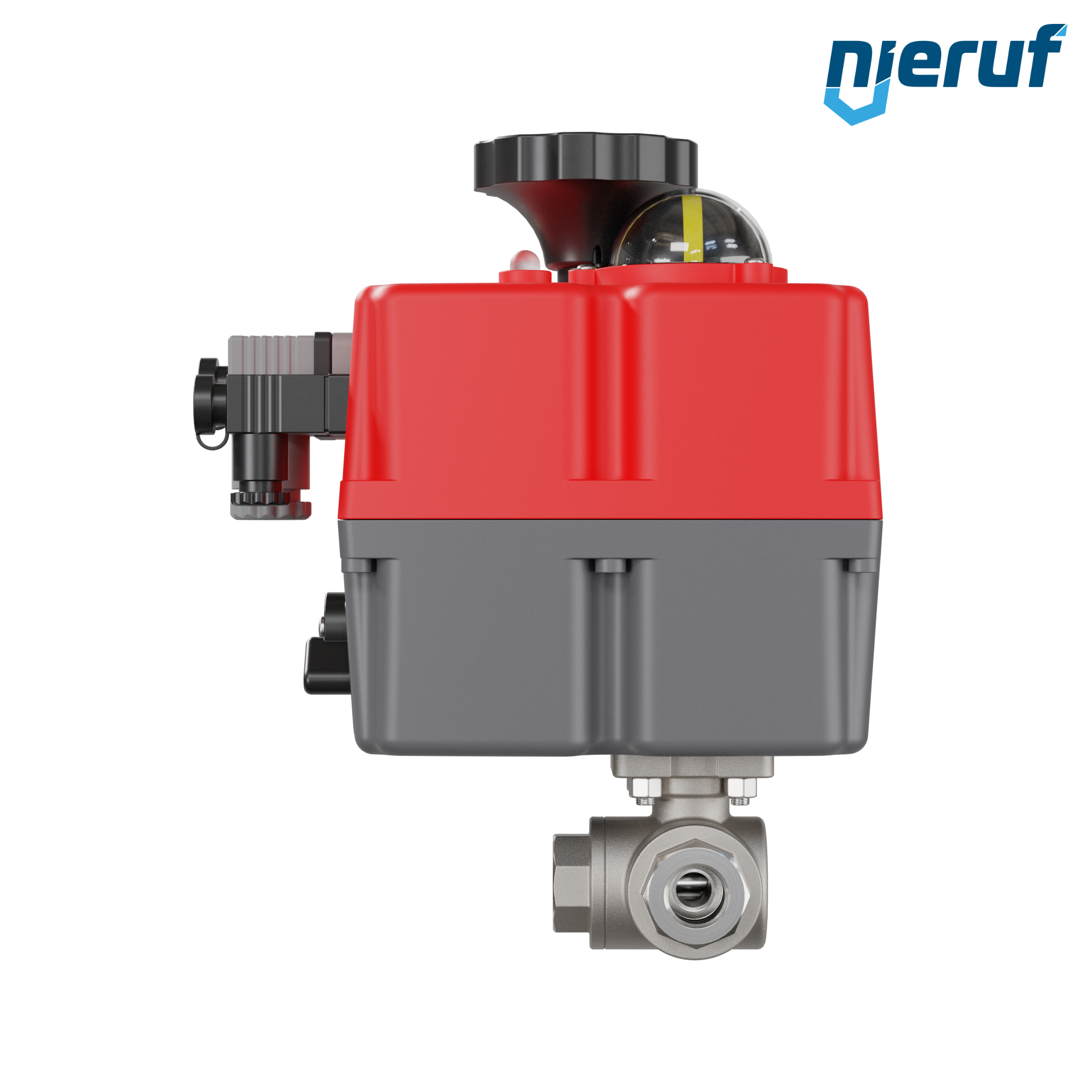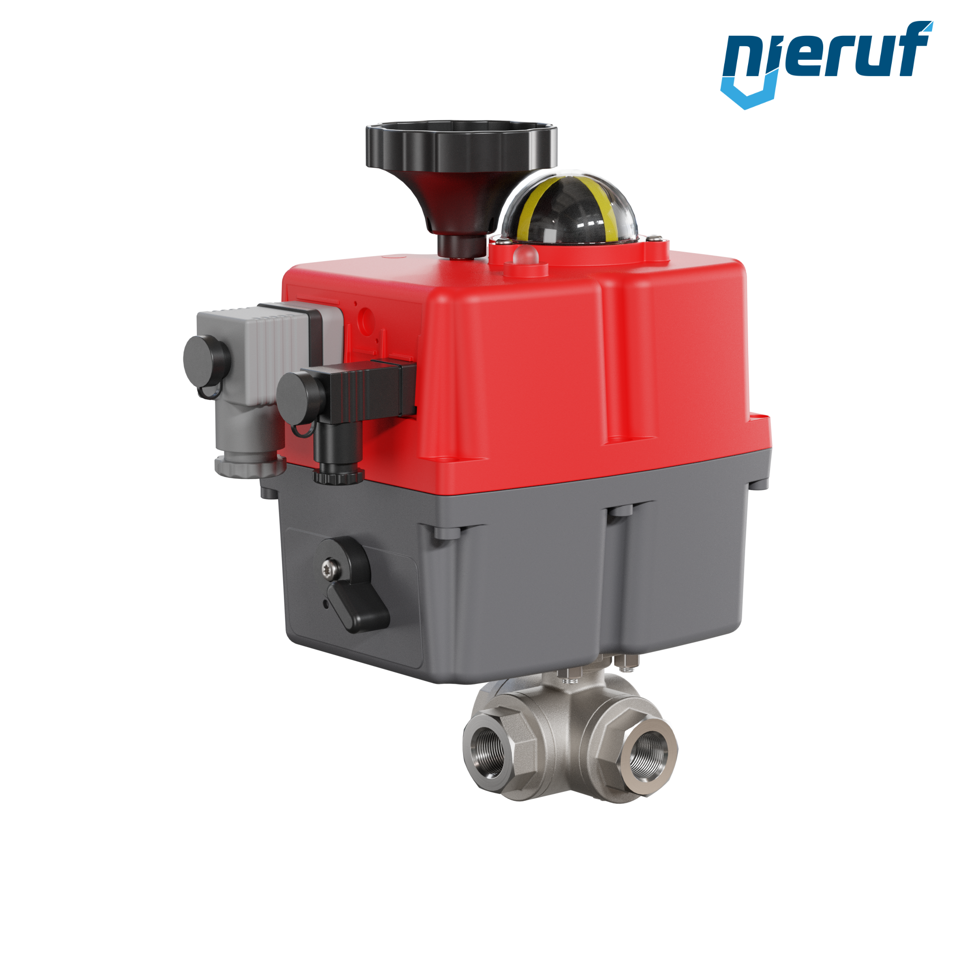 3 way automatic-ball valve 24-240V DN10 - 3/8" inch made of stainless steel 1.4408 with reduced port design with L drilling for liquid and gaseous media