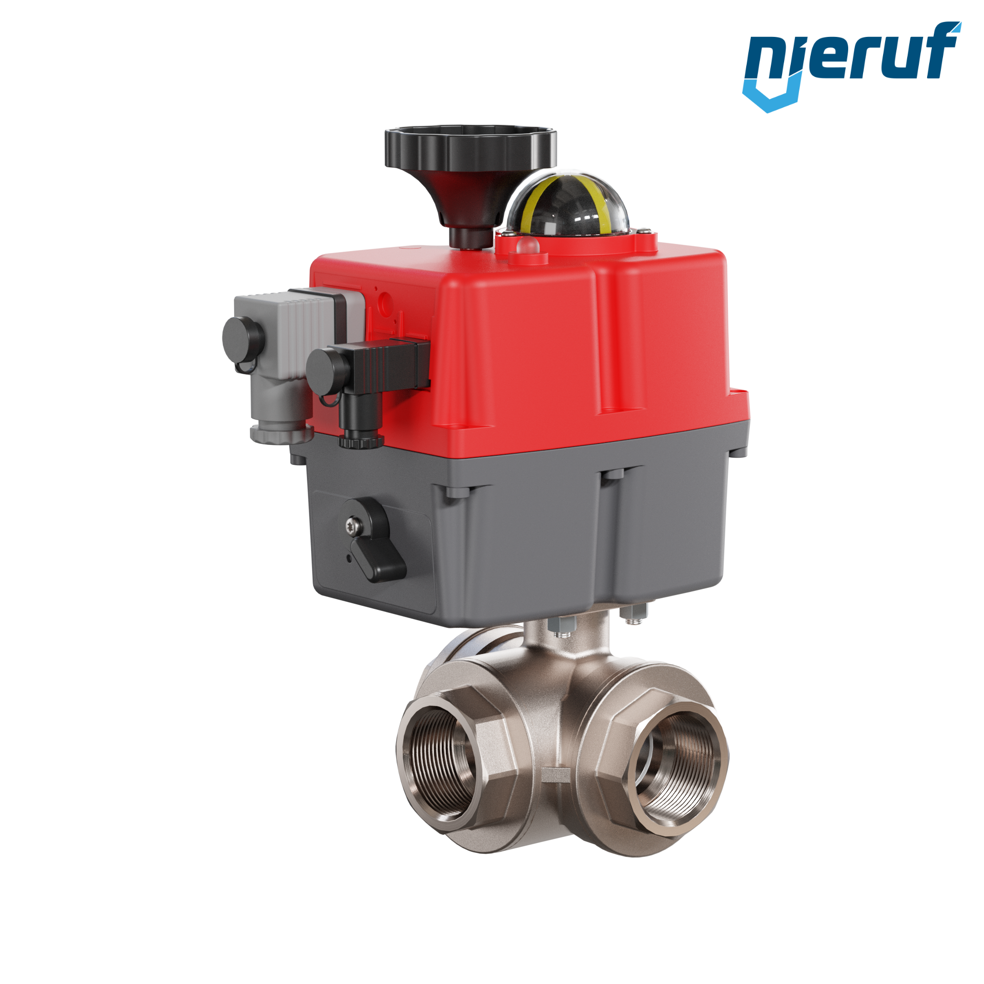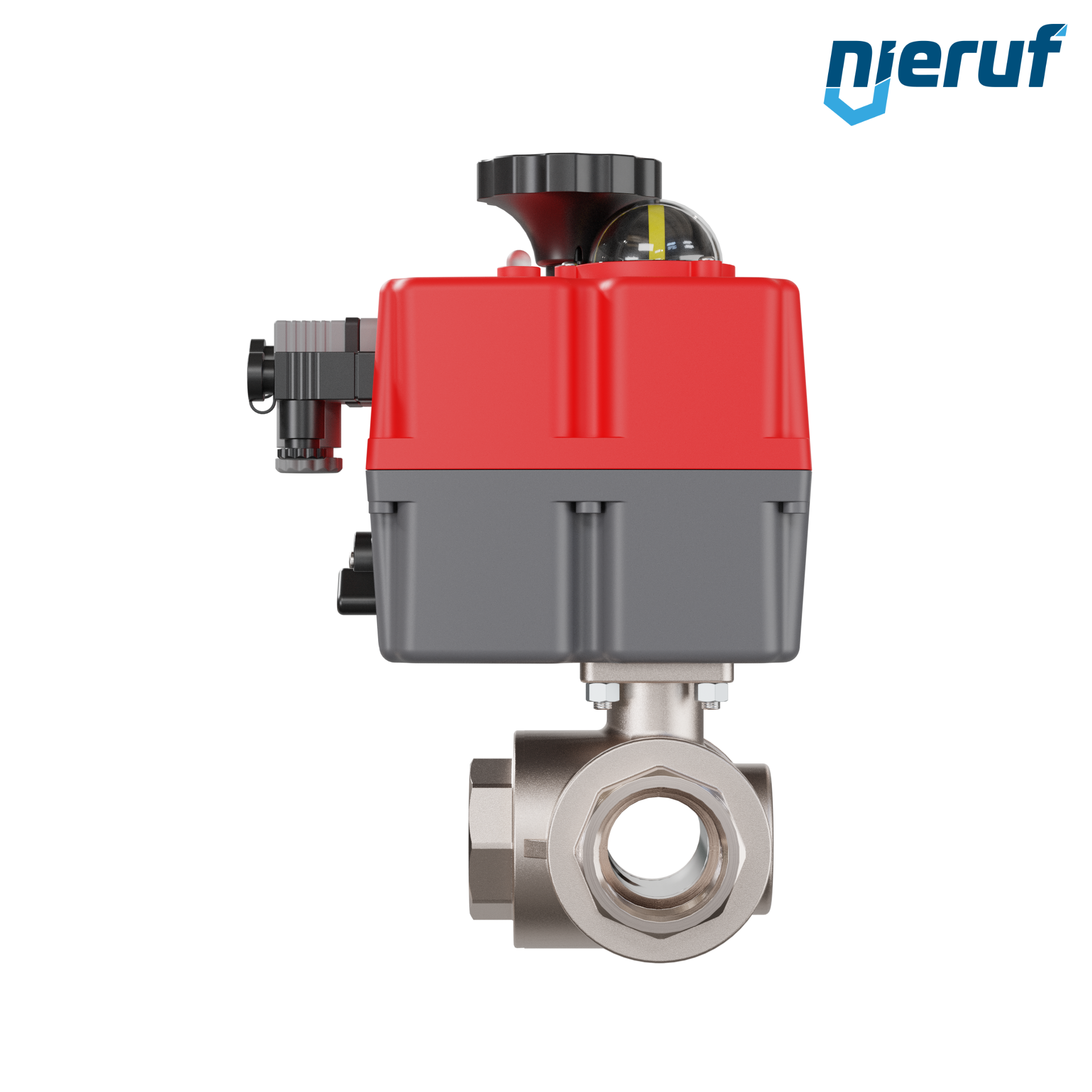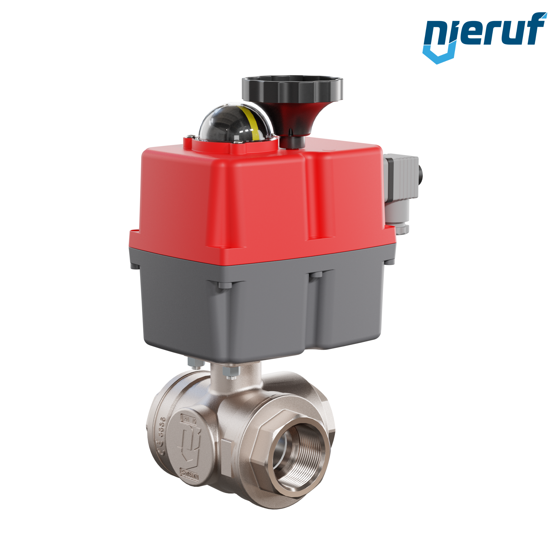 3 way automatic-ball valve 24-240V DN32 - 1 1/4" inch made of brass CW617N nickel plated with full port design with T drilling for liquid and gaseous media