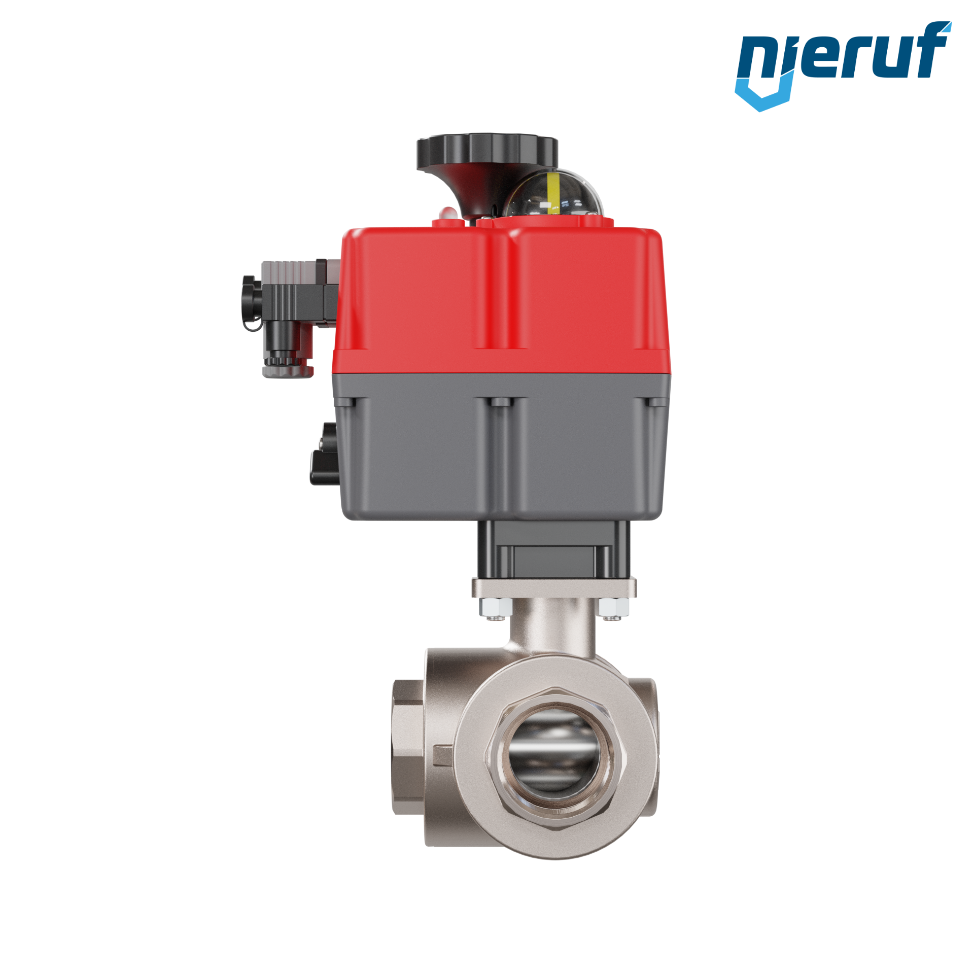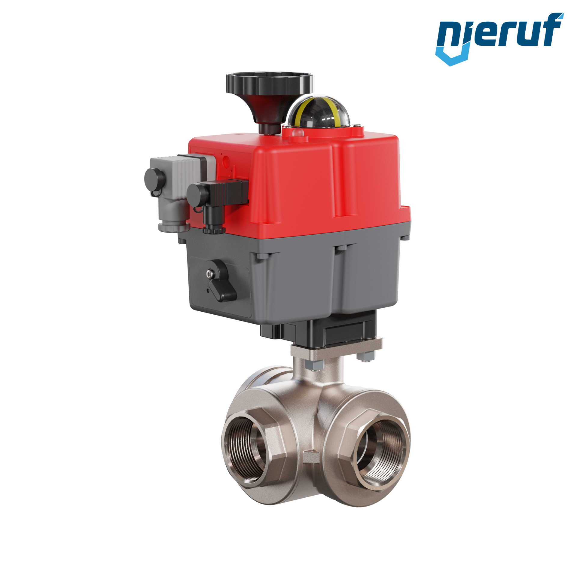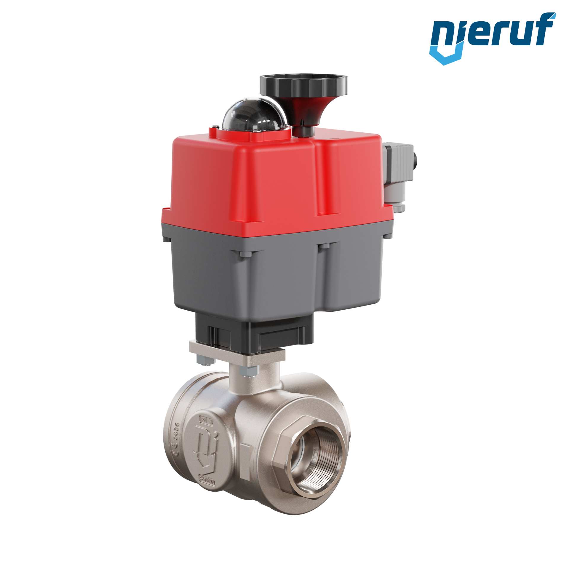 3 way automatic-ball valve 24-240V DN40 - 1 1/2" inch made of brass CW617N nickel plated with full port design with L drilling for liquid and gaseous media