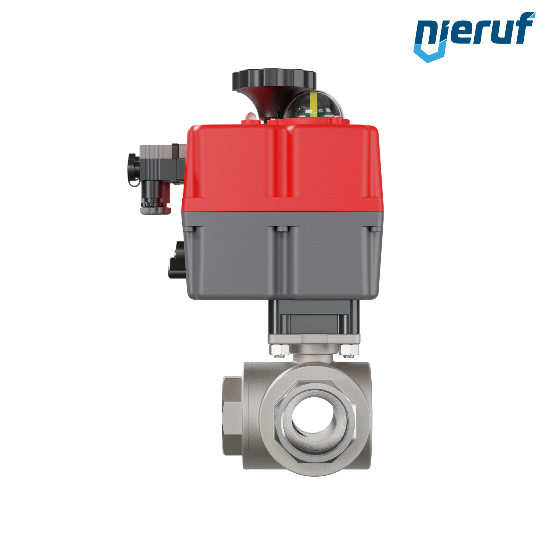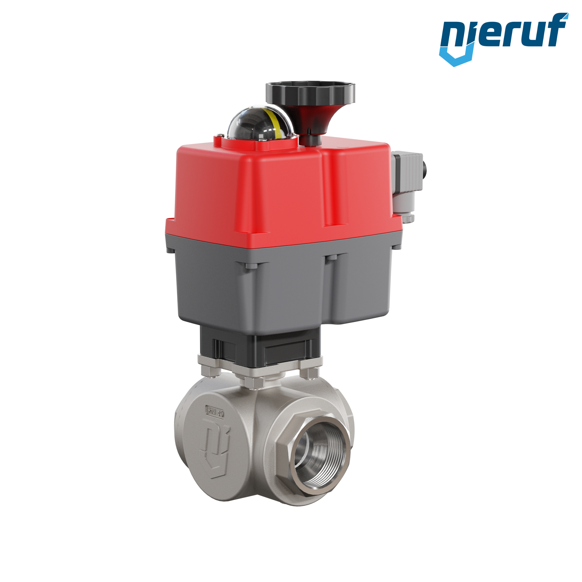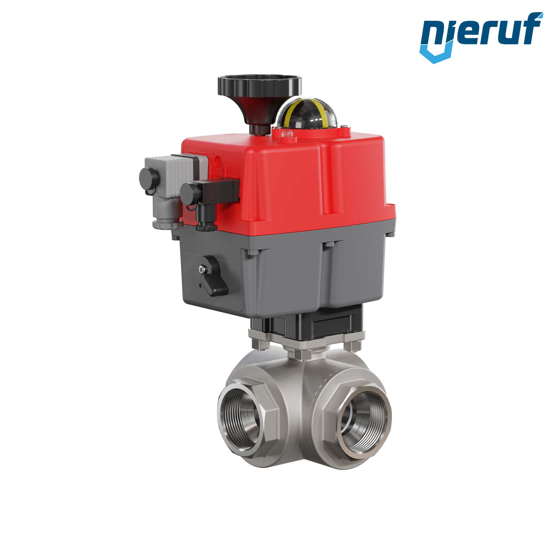 3 way automatic-ball valve 24-240V DN40 - 1 1/2" inch made of stainless steel 1.4408 with reduced port design with T drilling for liquid and gaseous media