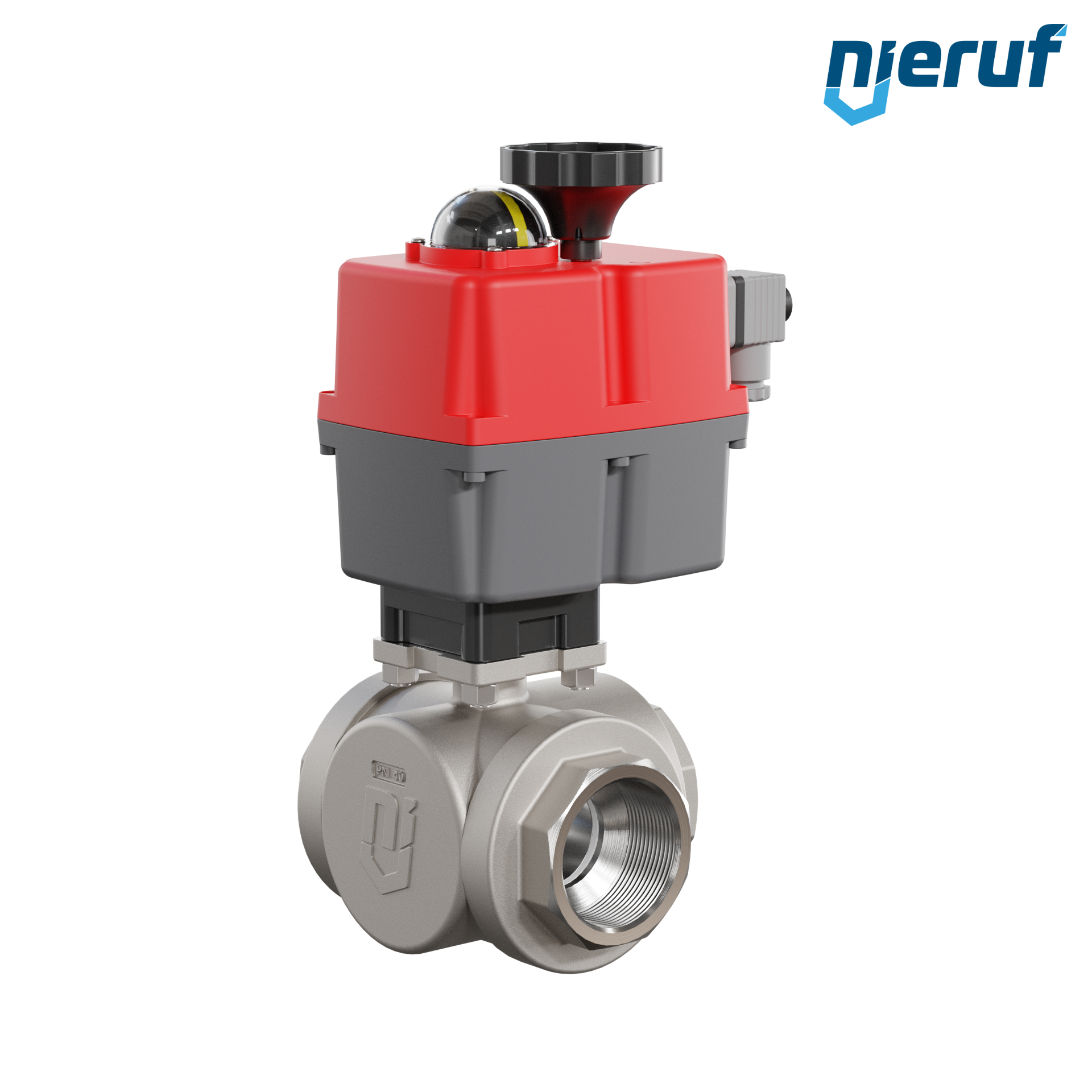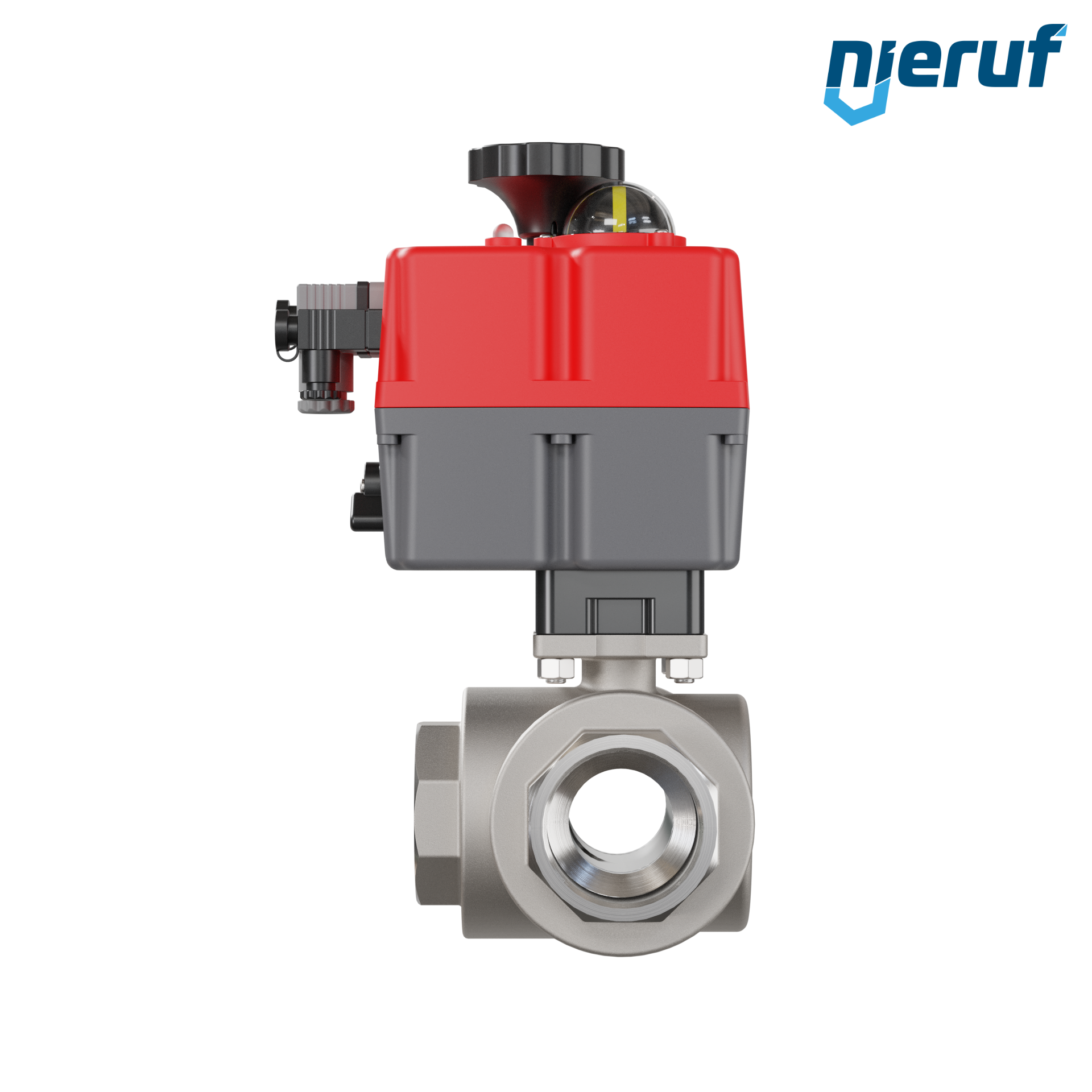 3 way automatic-ball valve 24-240V DN50 - 2" inch made of stainless steel 1.4408 with reduced port design with T drilling for liquid and gaseous media