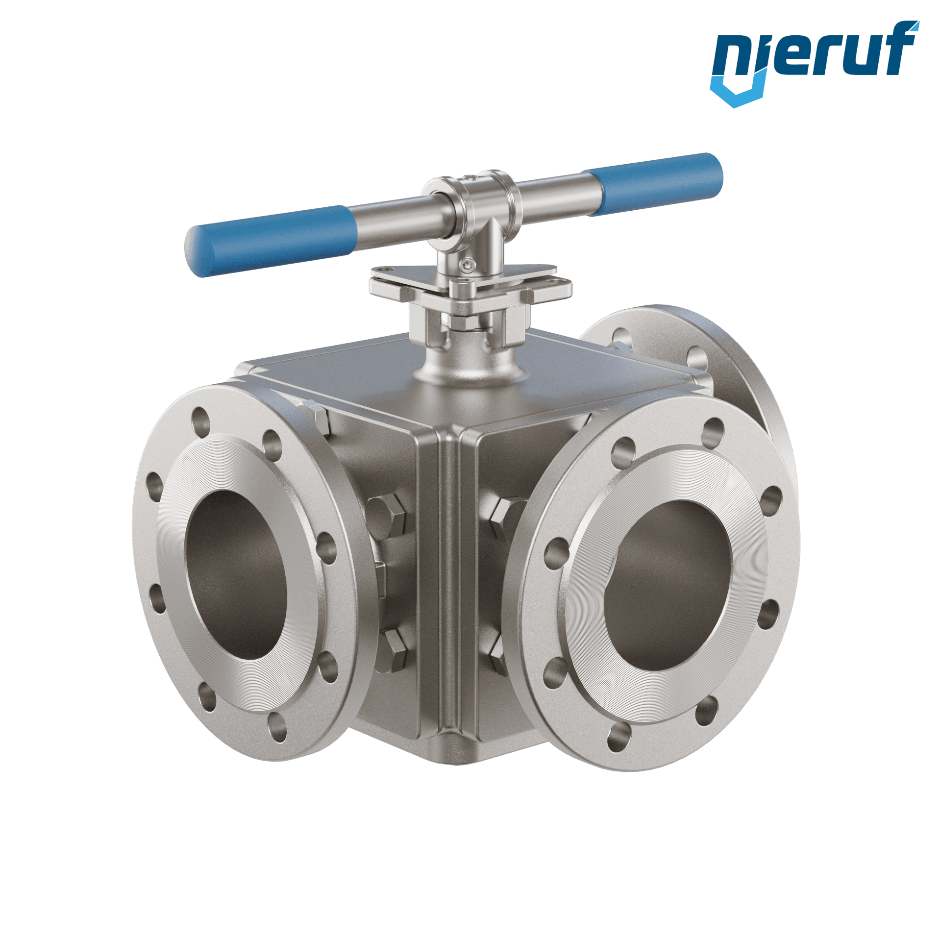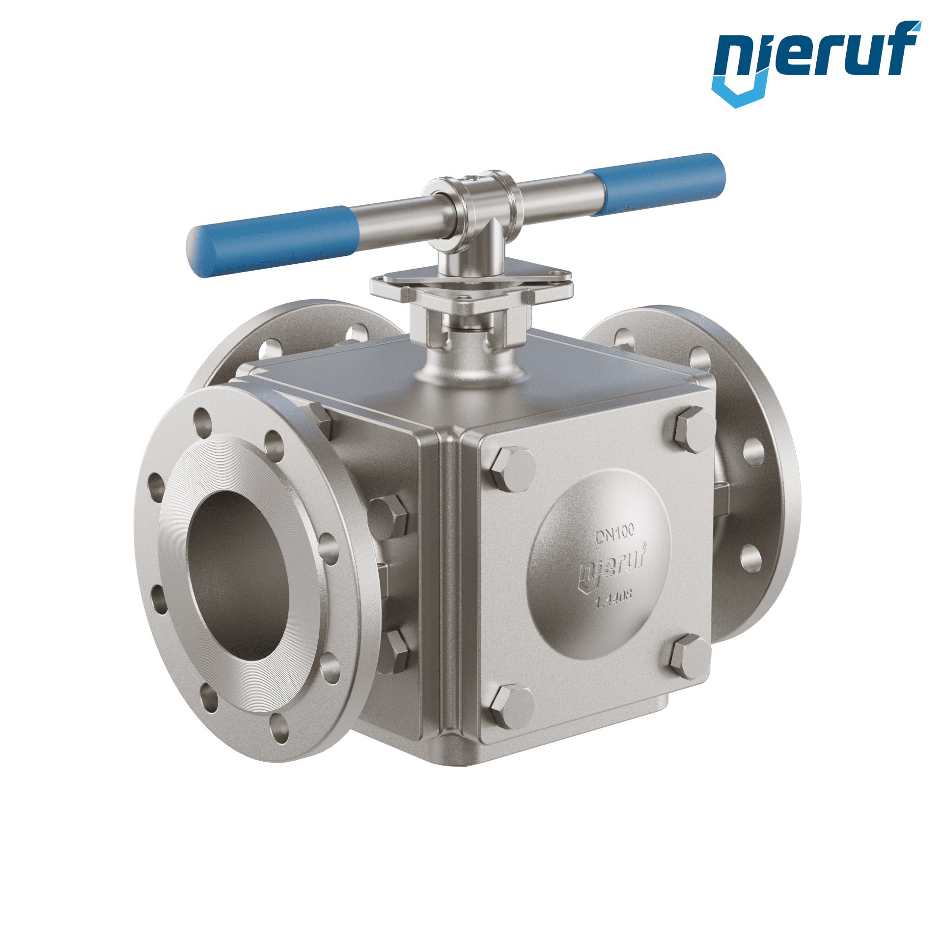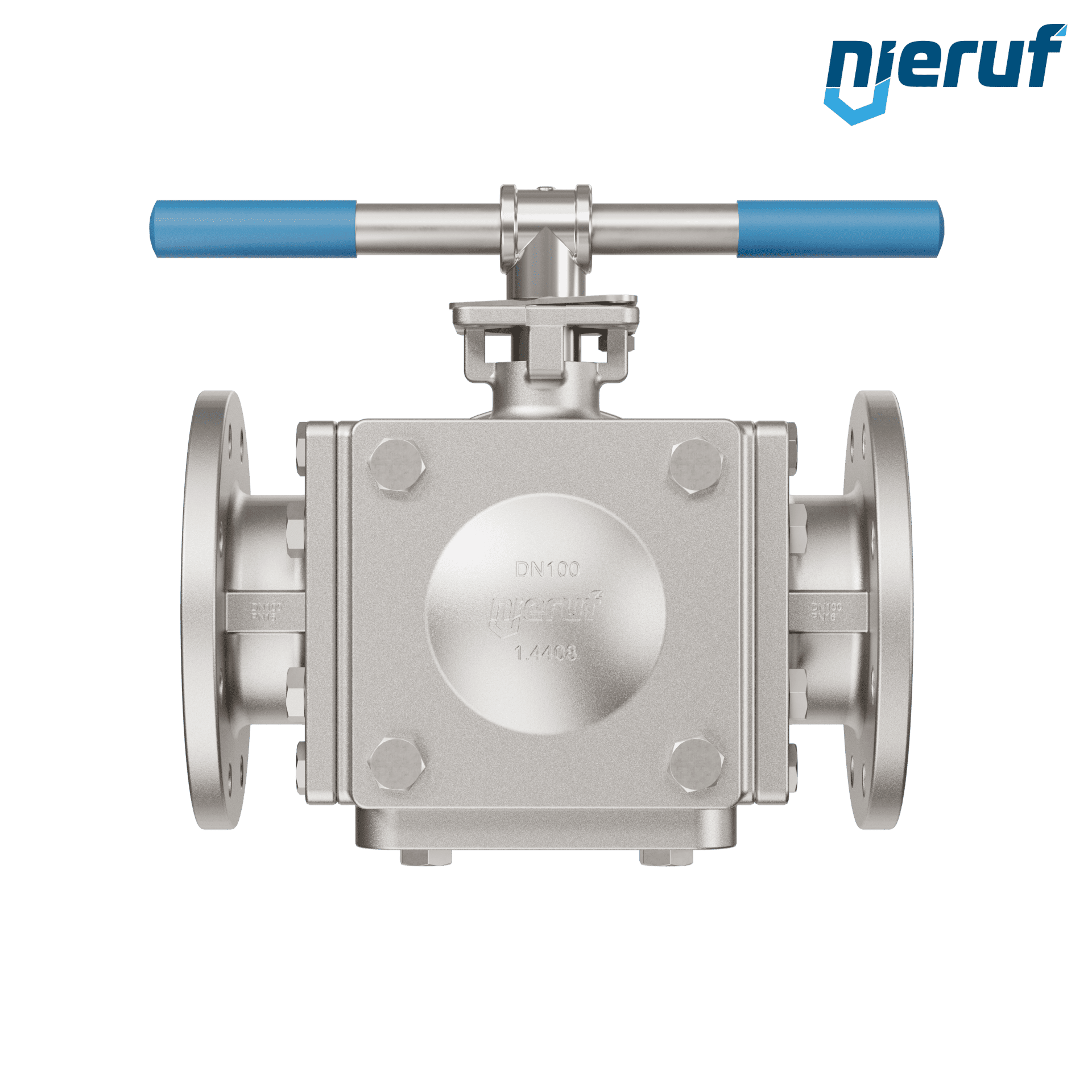 3 way stainless steel flange ball valve DN100 PN16 FK09 body stainless steel 1.4408 ball stainless steel 1.4408 seal TFM 1600 / PTFE T drilling