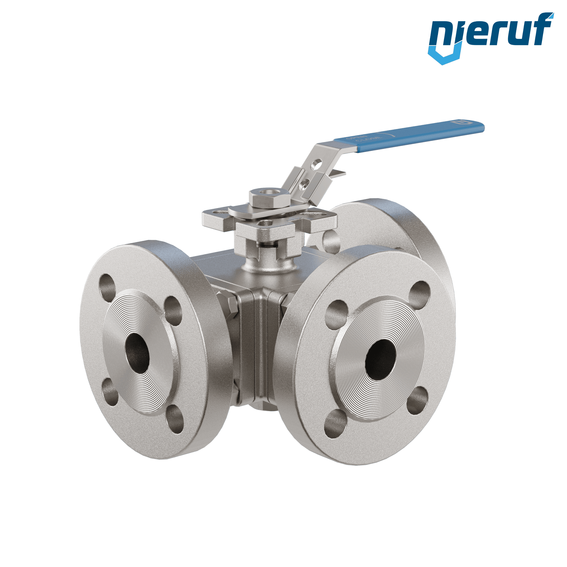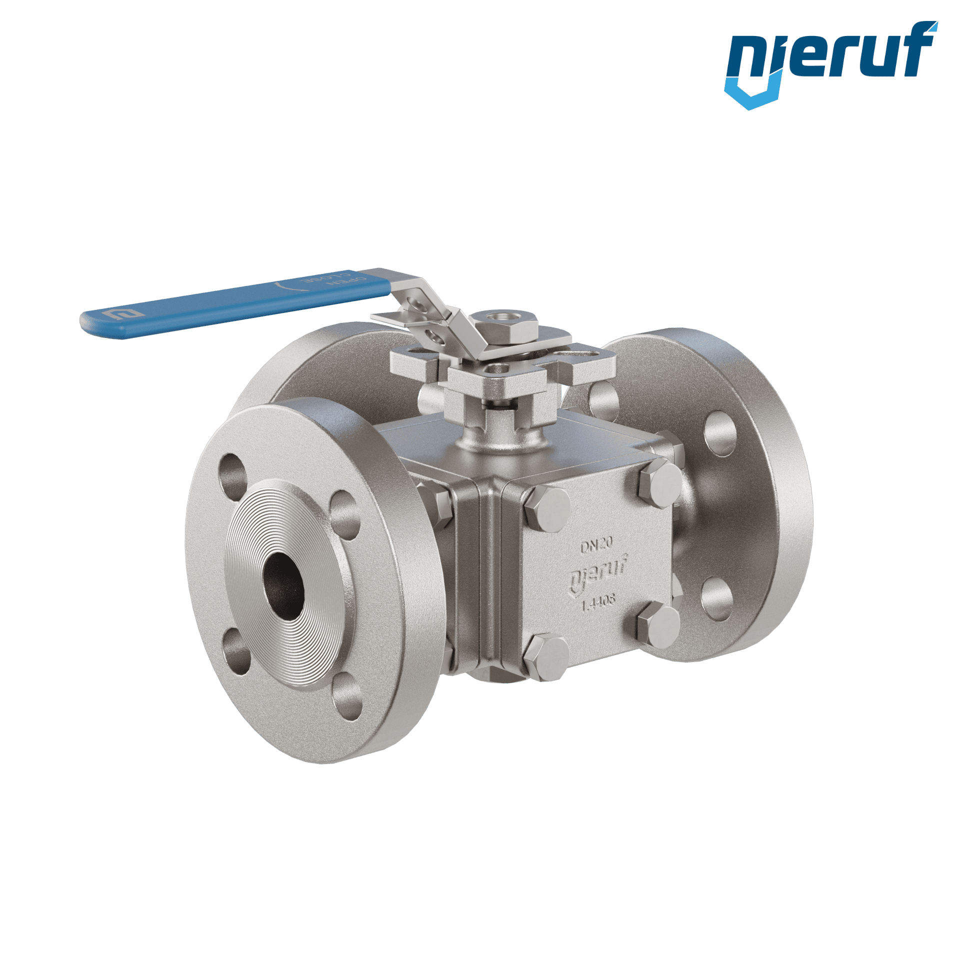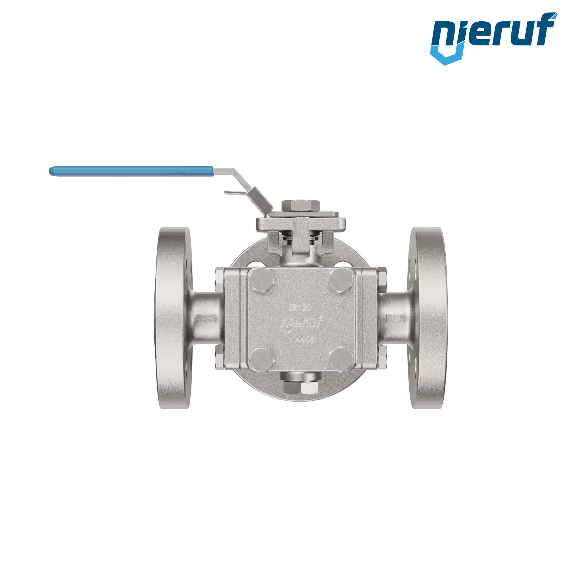 3 way stainless steel flange ball valve DN20 PN16/40 FK09 body stainless steel 1.4408 ball stainless steel 1.4408 seal TFM 1600 / PTFE T drilling