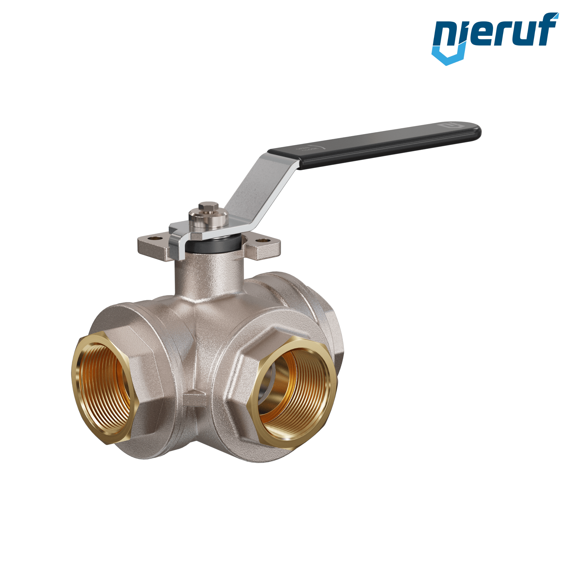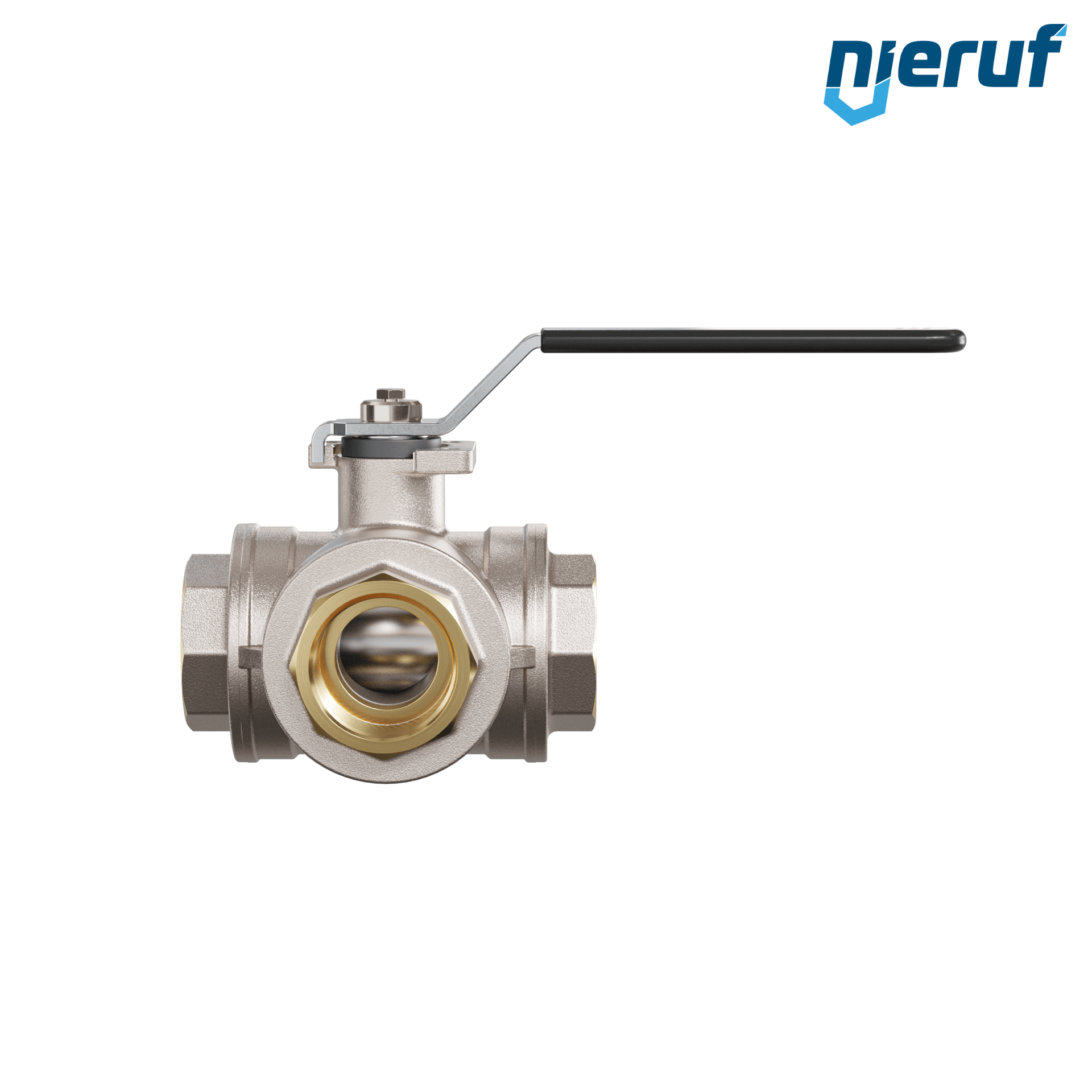 3 way brass ball valve DN32 - 1 1/4" inch full port design with L drilling seal made of PTFE for liquid and gaseous media