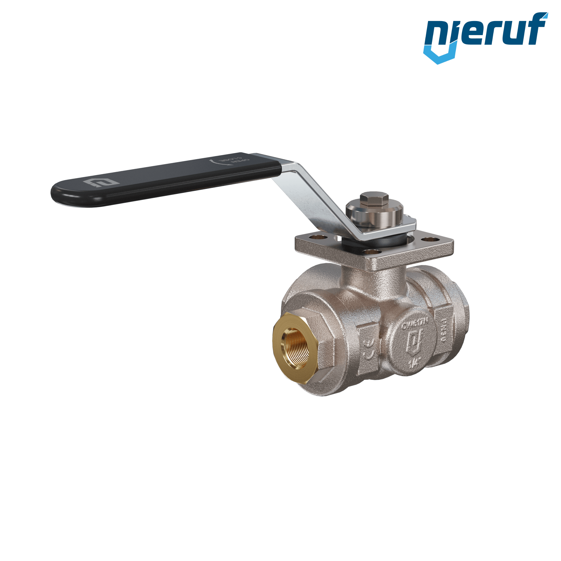 3 way brass ball valve DN8 - 1/4" inch full port design with T drilling seal made of PTFE for liquid and gaseous media