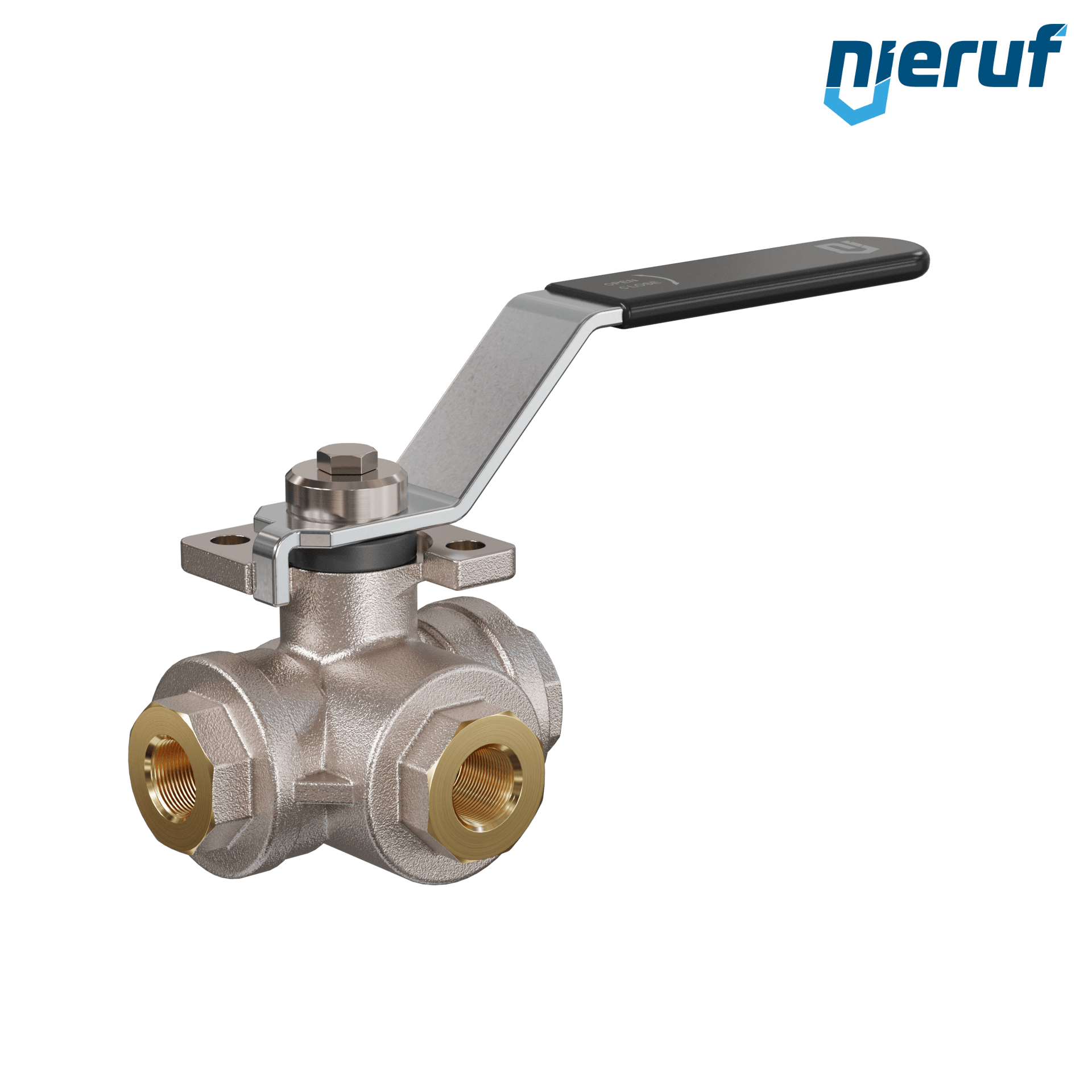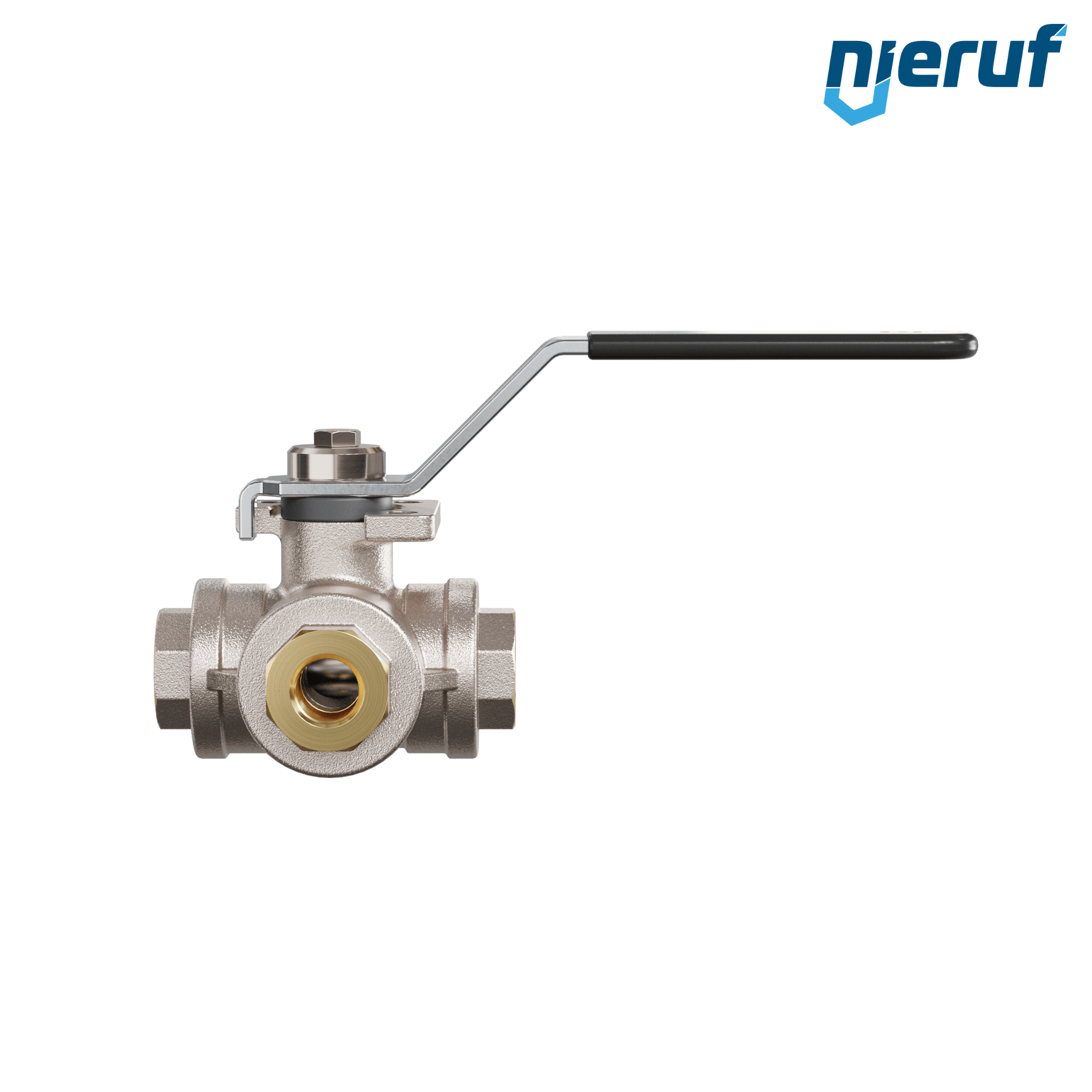 This high quality three-way ball valve is made of brass with blow out proof stem design, floating ball and 4 ball seats. This valve has a T-drilling