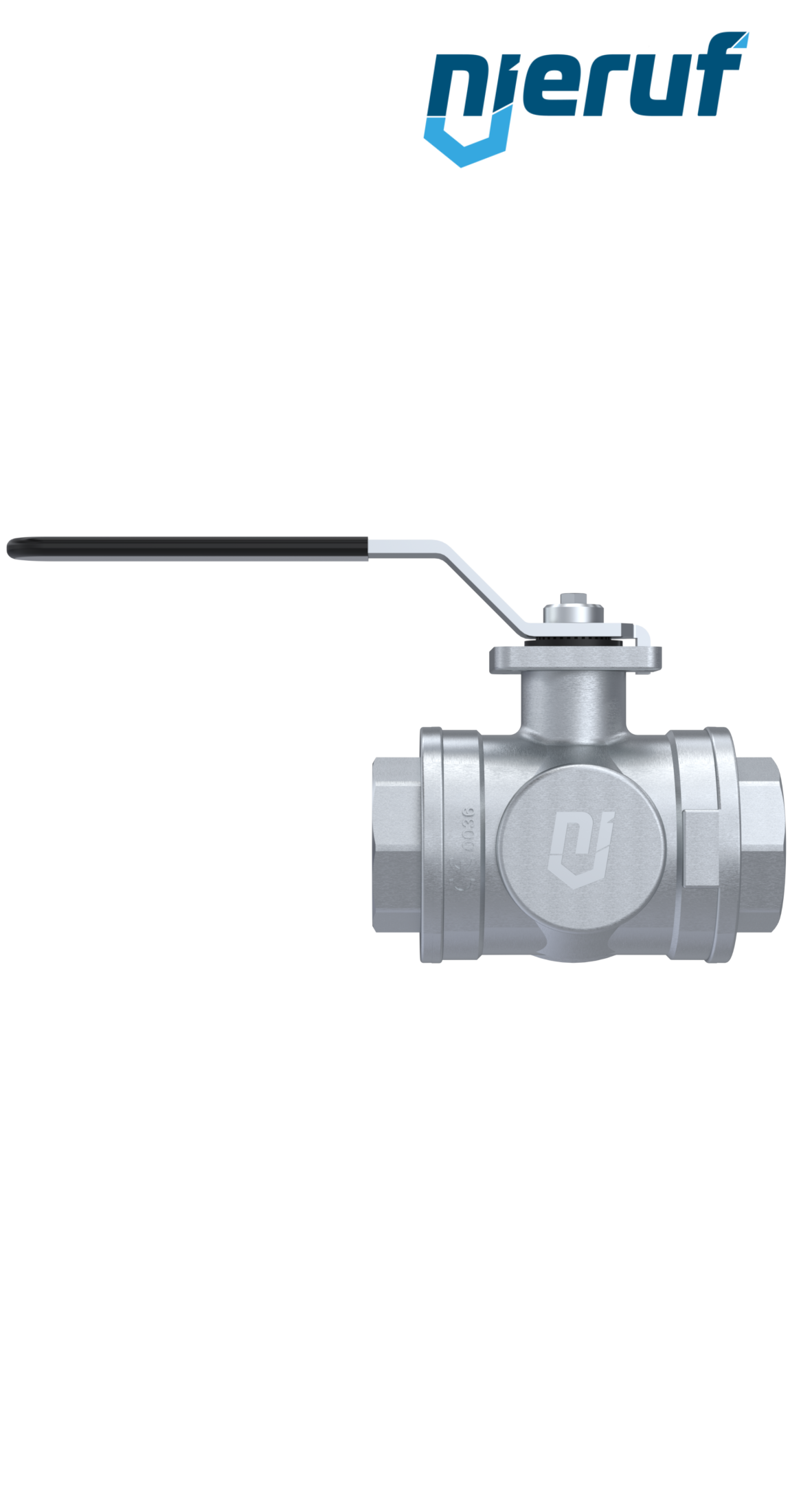 This high quality three-way ball valve is made of brass with blow out proof stem design, floating ball and 4 ball seats. This valve has a L-drilling