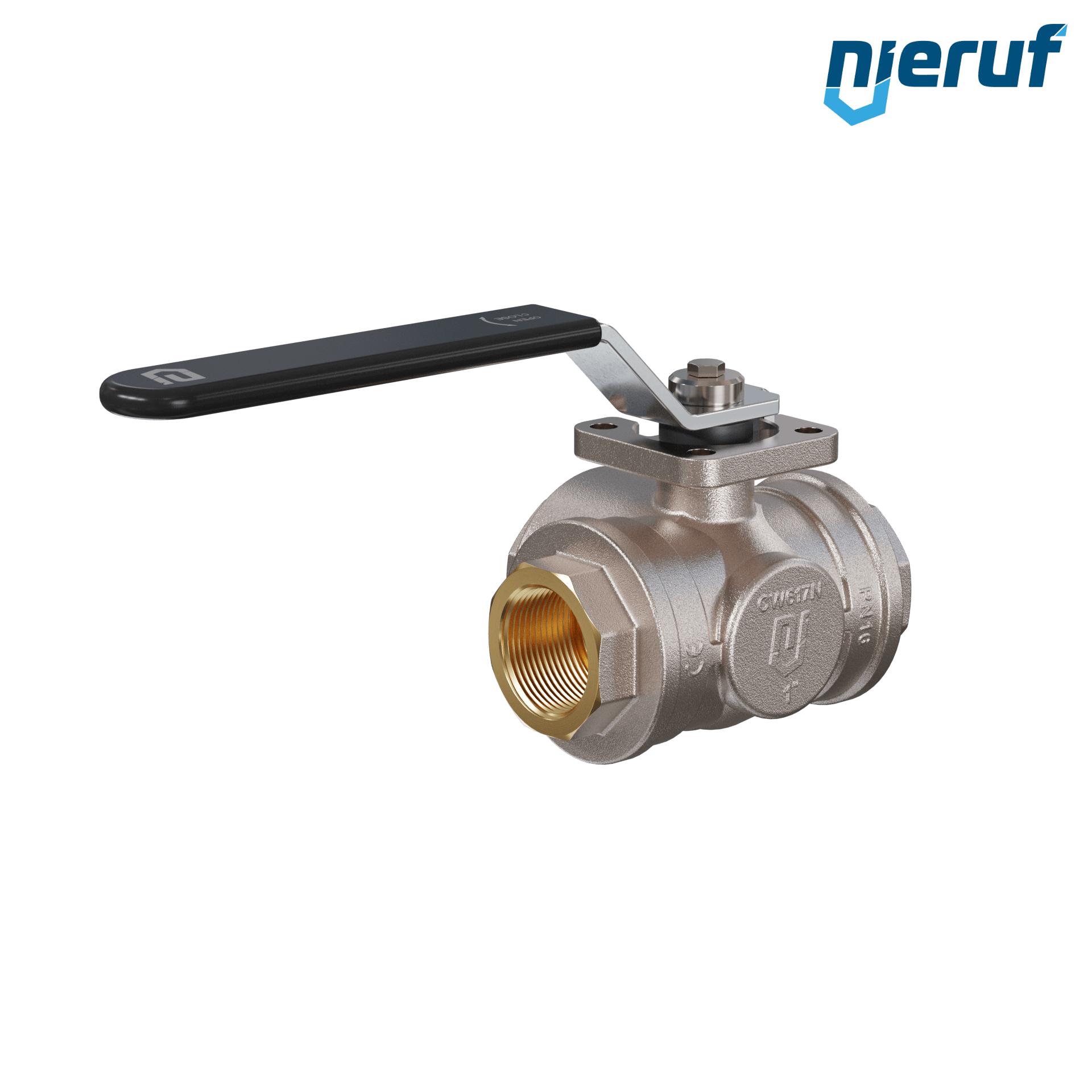 3 way brass ball valve DN25 - 1" inch full port design with L drilling seal made of PTFE for liquid and gaseous media