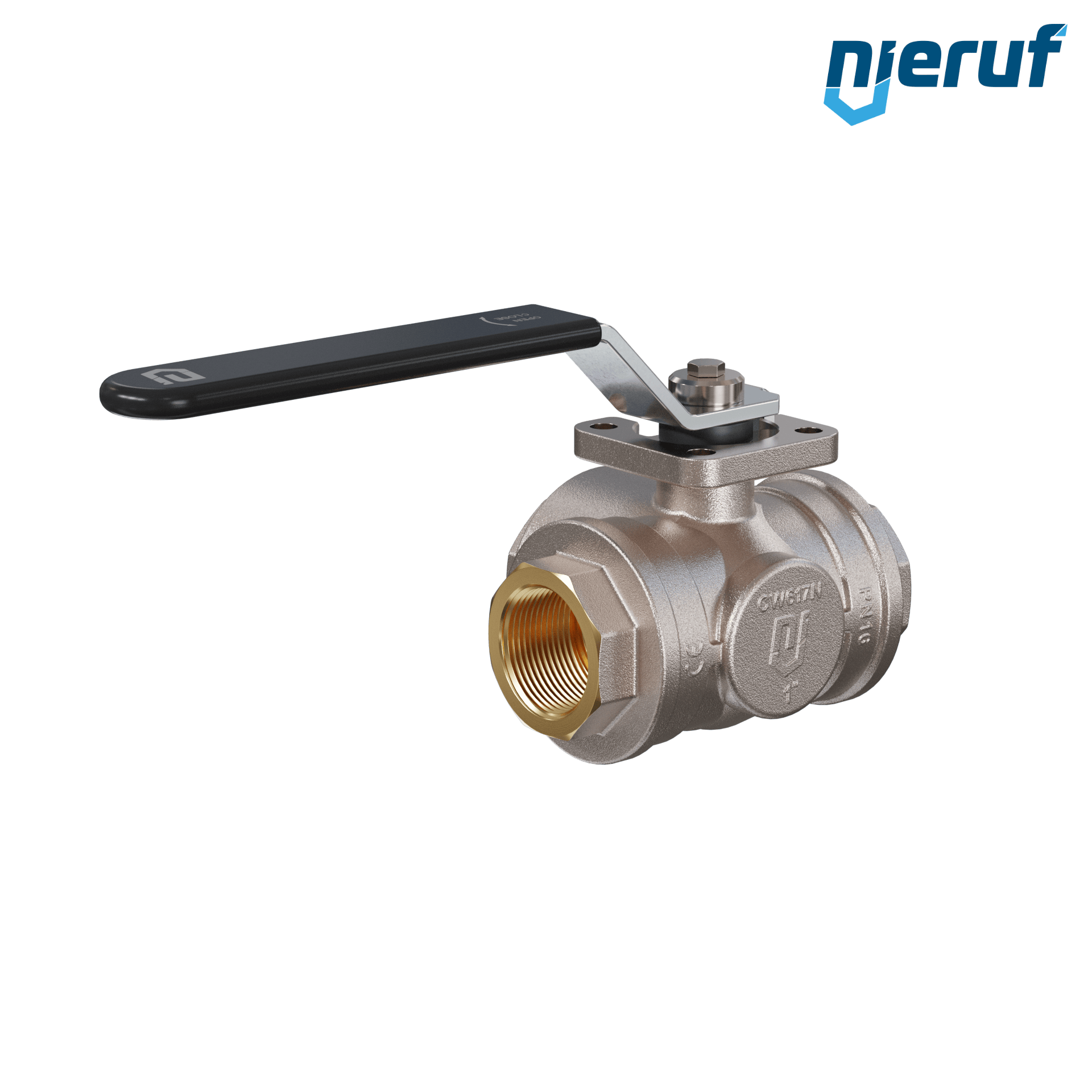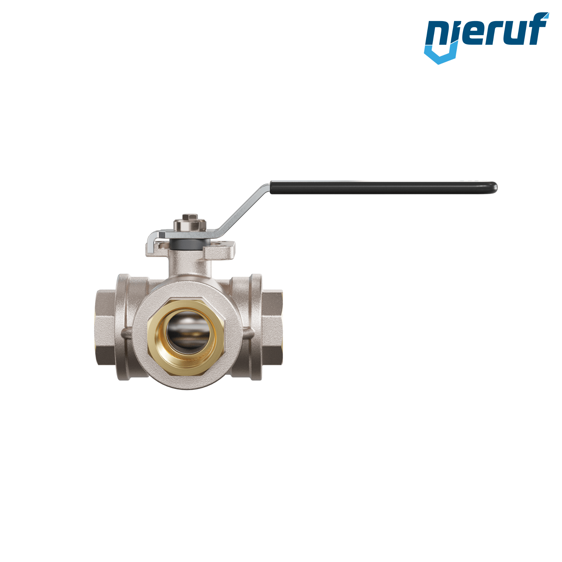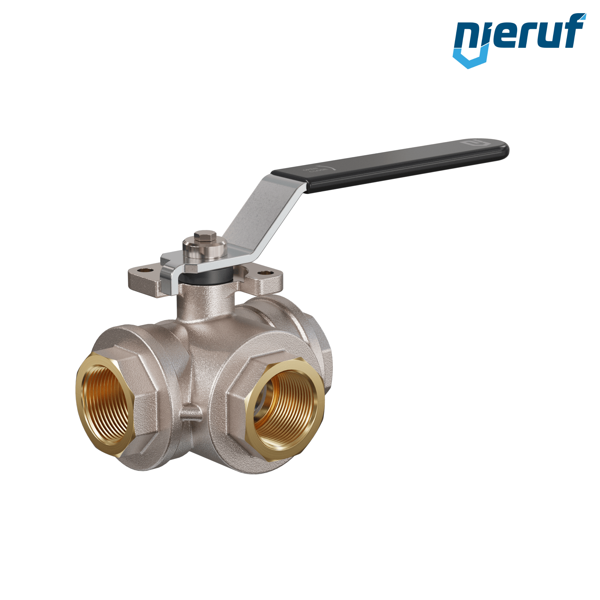 3 way brass ball valve DN25 - 1" inch full port design with T drilling seal made of PTFE for liquid and gaseous media