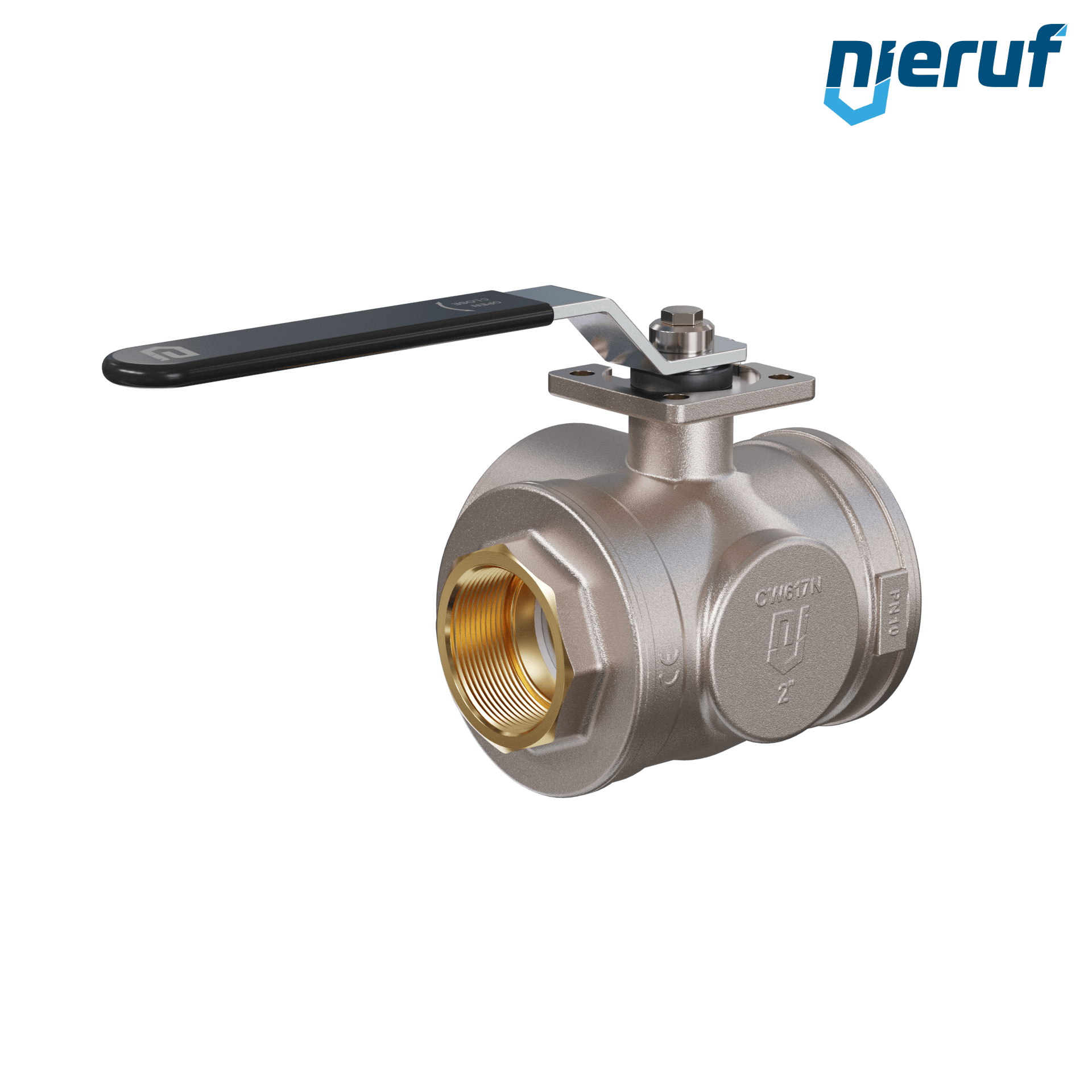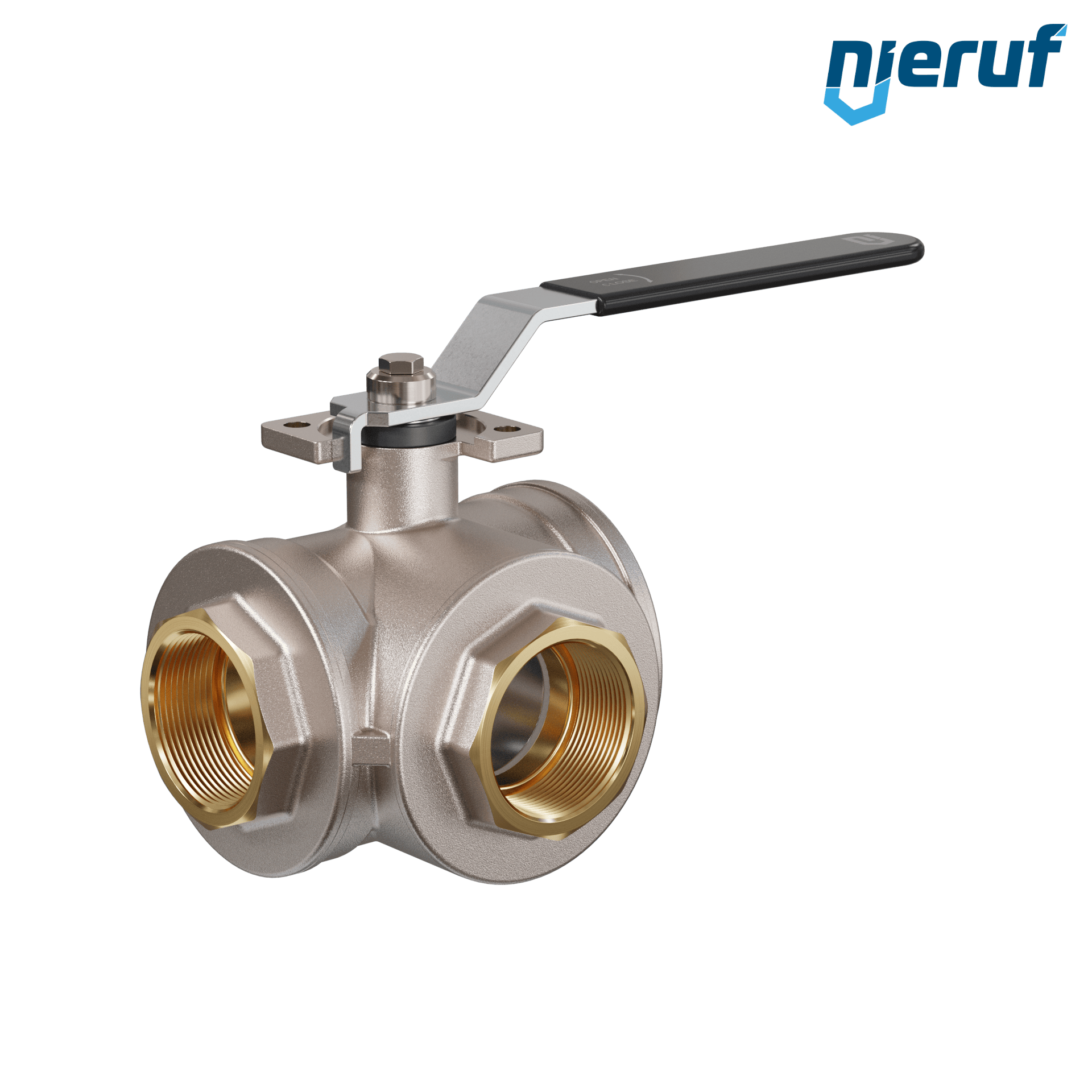 3 way brass ball valve DN50 - 2" inch full port design with L drilling seal made of PTFE for liquid and gaseous media