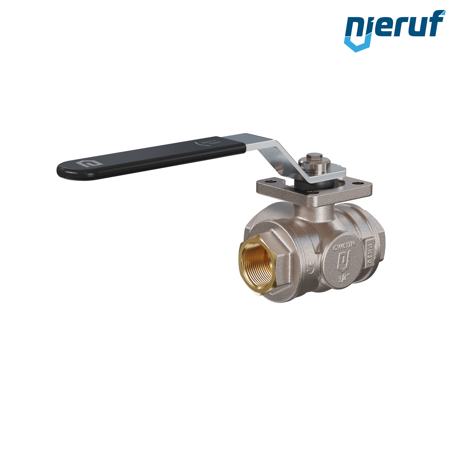 3 way brass ball valve DN20 - 3/4" inch full port design with L drilling seal made of PTFE for liquid and gaseous media