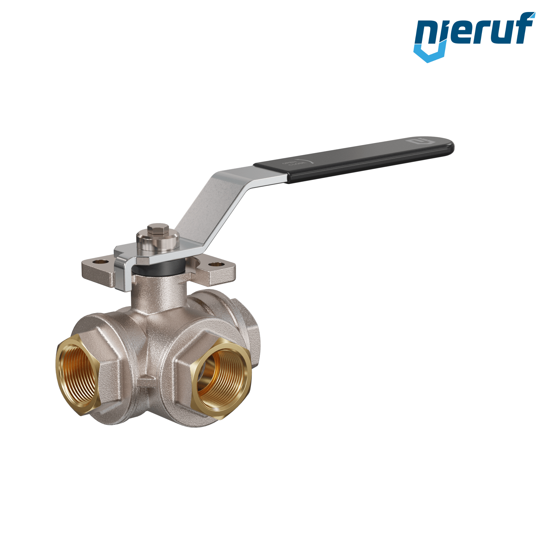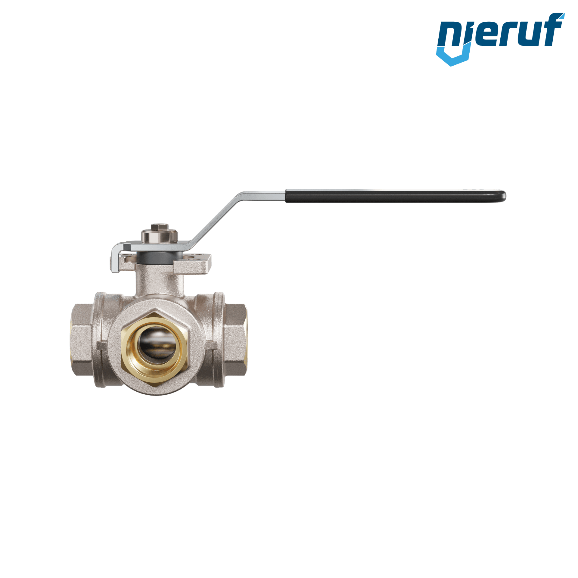 This high quality three-way ball valve is made of brass with blow out proof stem design, floating ball and 4 ball seats. This valve has a L-drilling