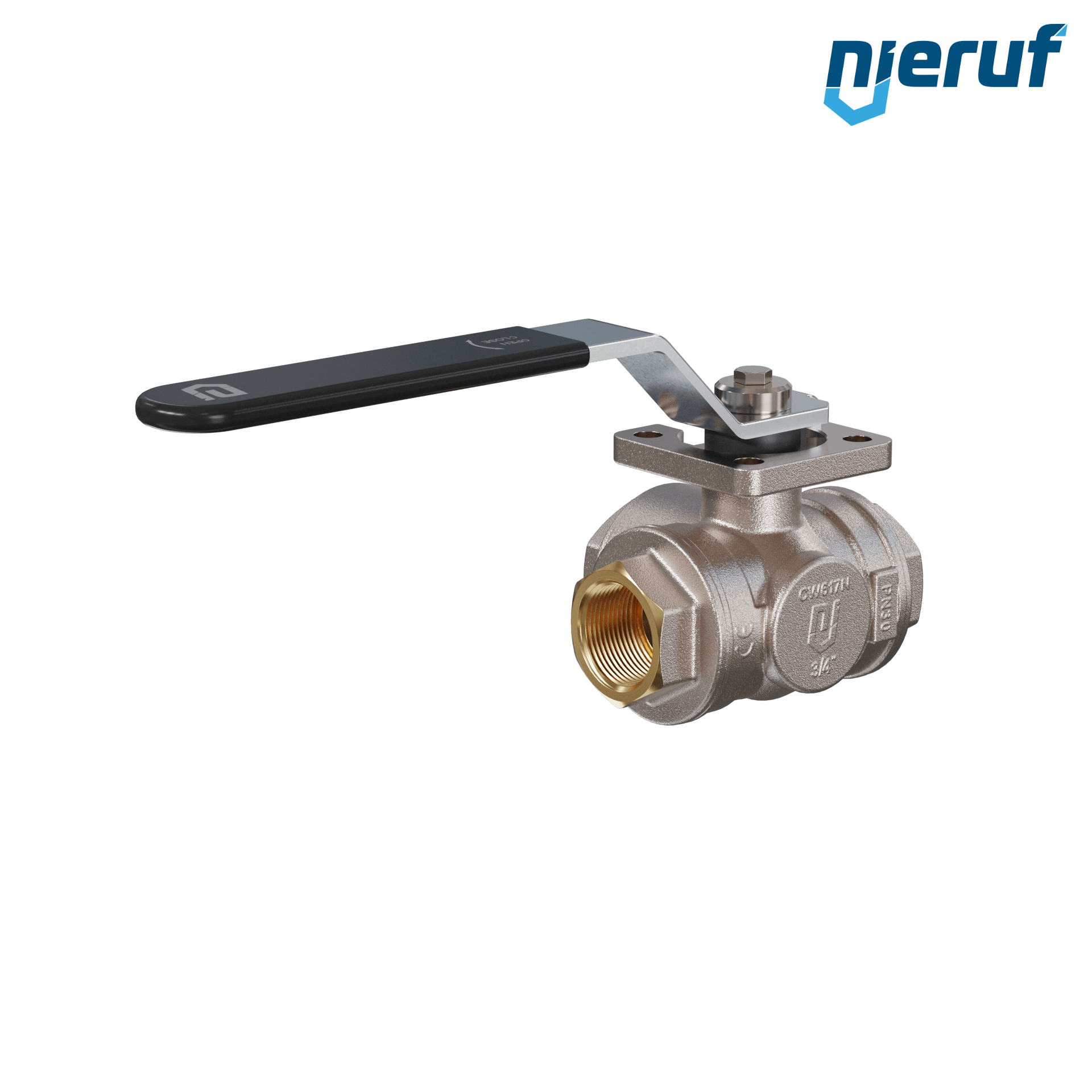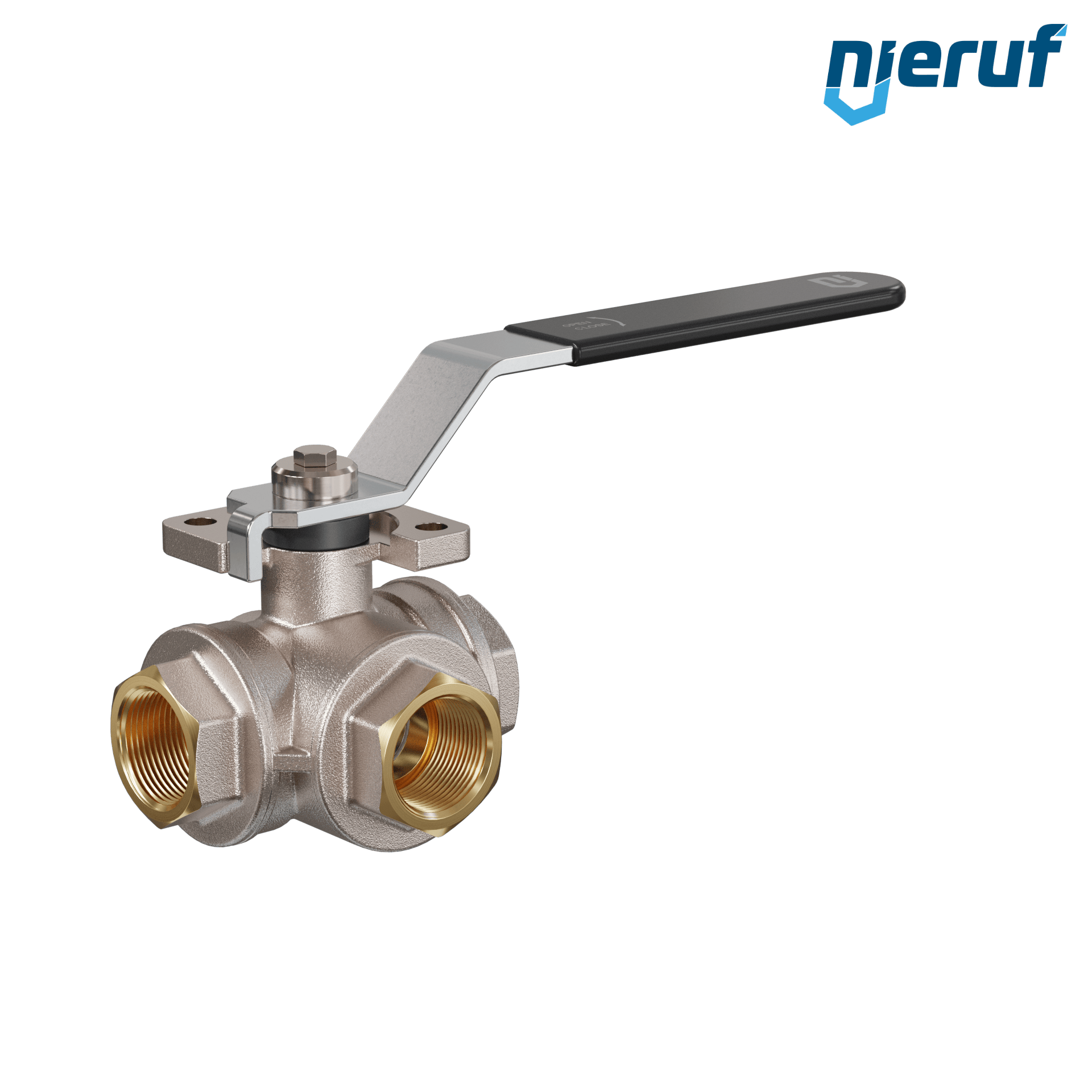 This high quality three-way ball valve is made of brass with blow out proof stem design, floating ball and 4 ball seats. This valve has a T-drilling