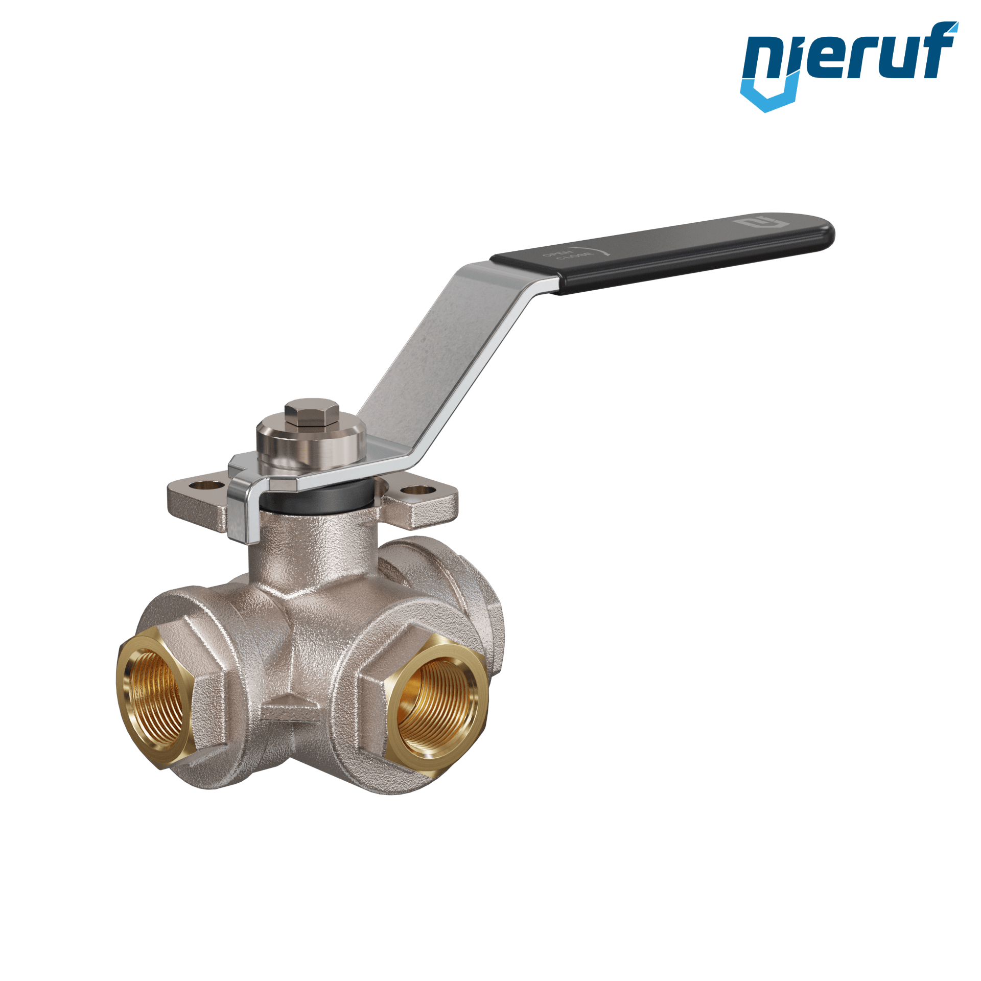 This high quality three-way ball valve is made of brass with blow out proof stem design, floating ball and 4 ball seats. This valve has a T-drilling