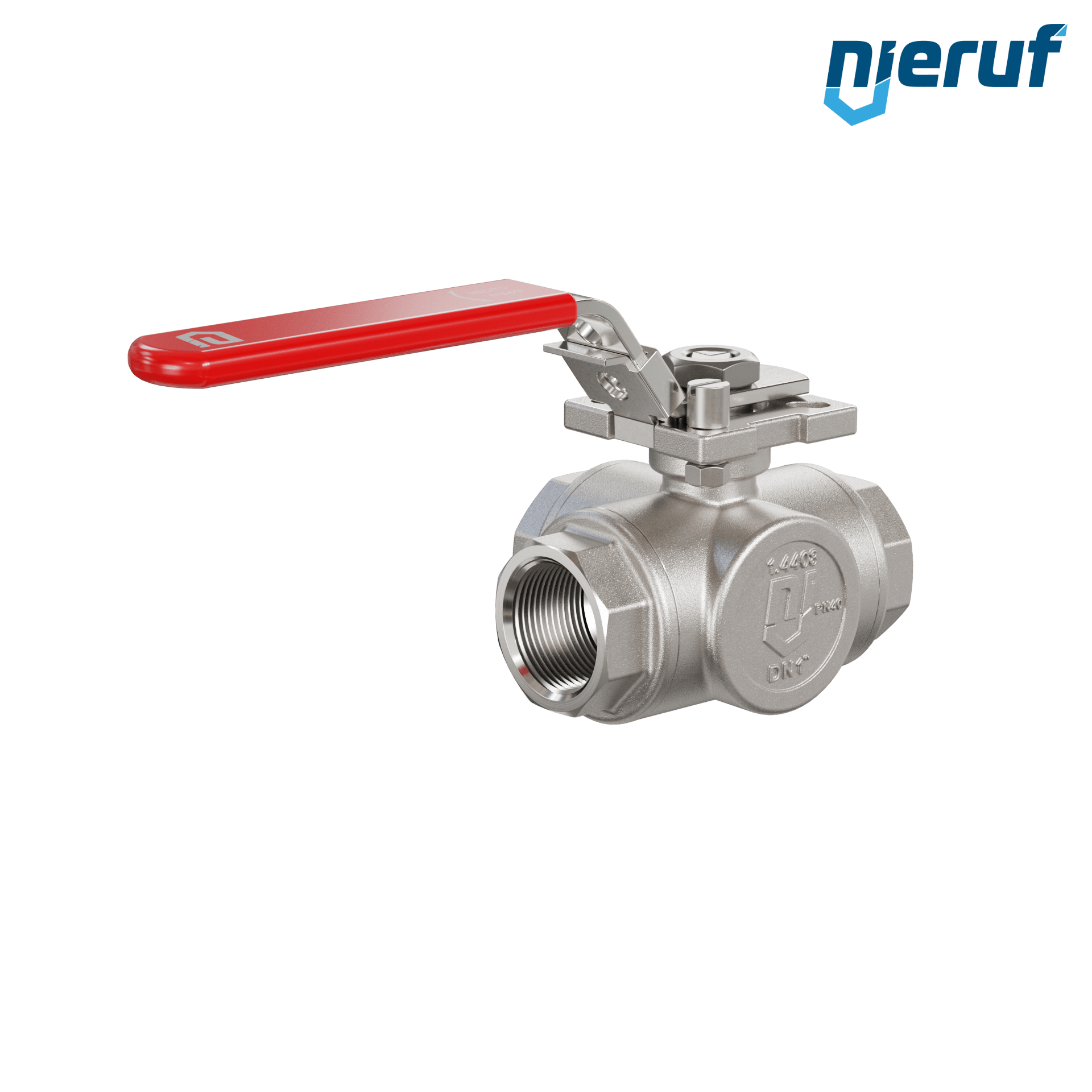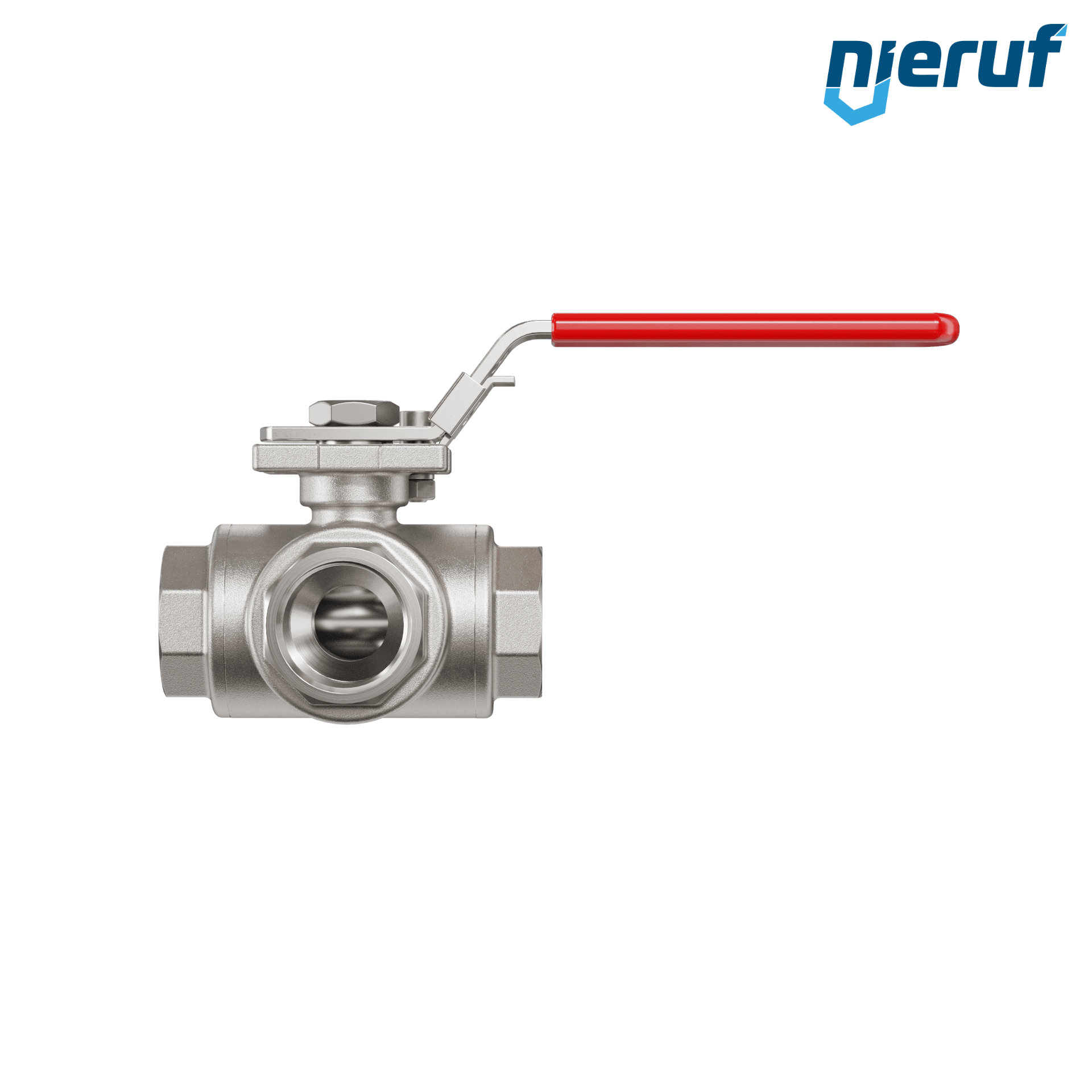 3-way ball valve DN25 - 1" inch L drilling seal made of PTFE in stainless steel for liquid and gaseous media