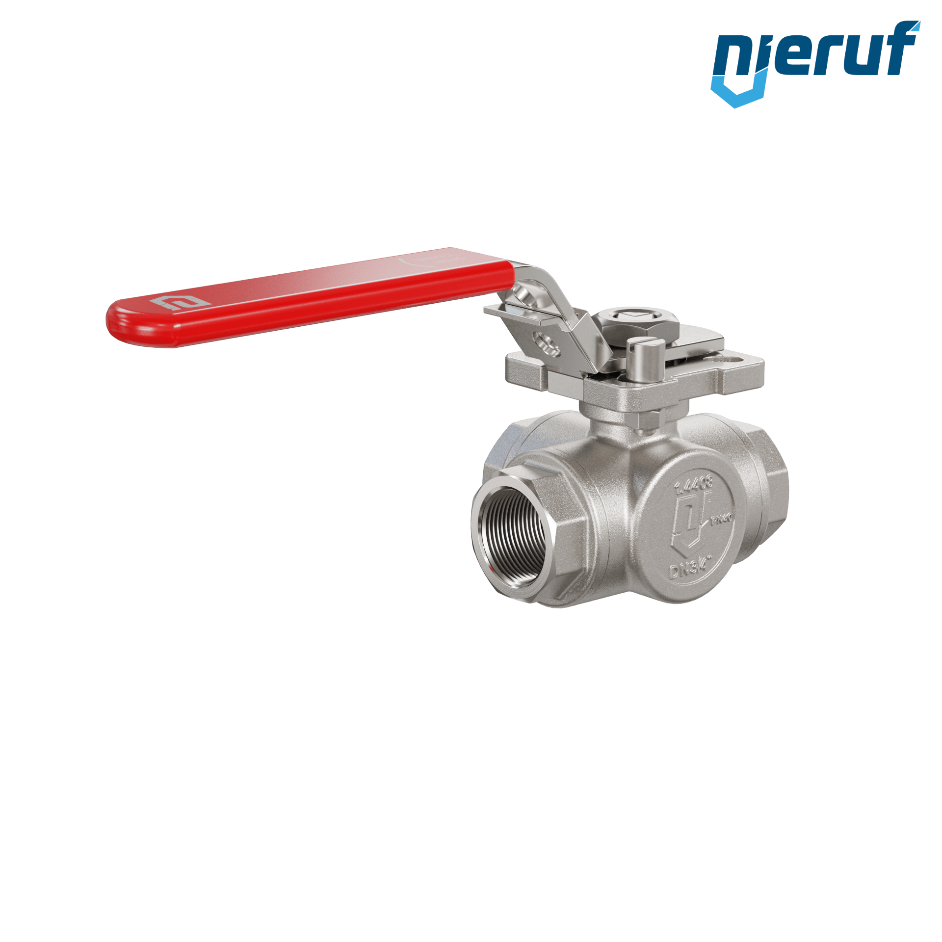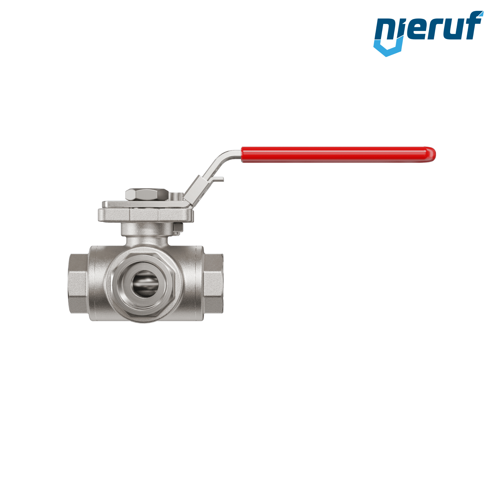 3-way ball valve DN20 - 3/4" inch L drilling seal made of PTFE in stainless steel for liquid and gaseous media
