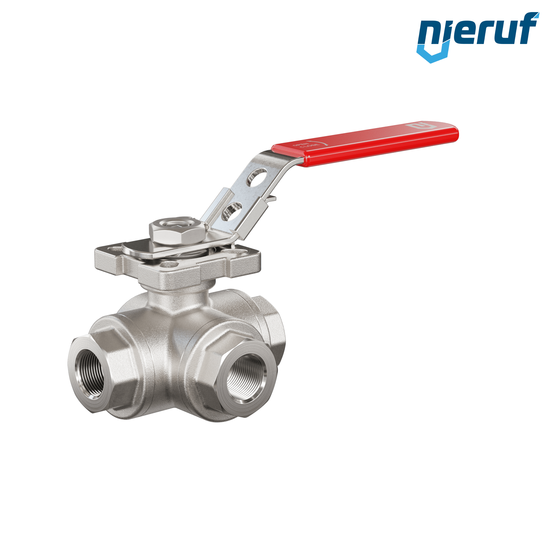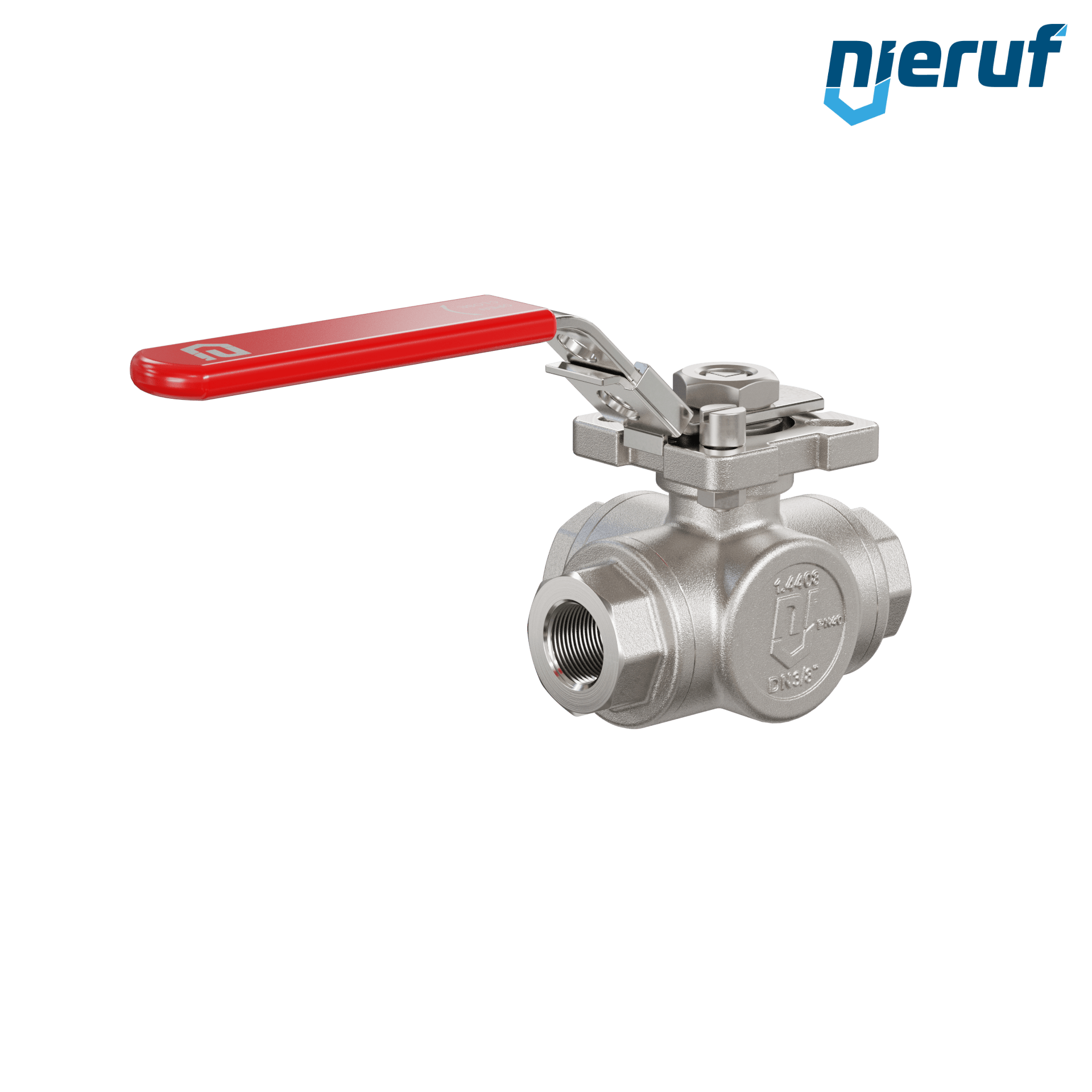 3-way ball valve DN10 - 3/8" inch L drilling seal made of PTFE in stainless steel for liquid and gaseous media