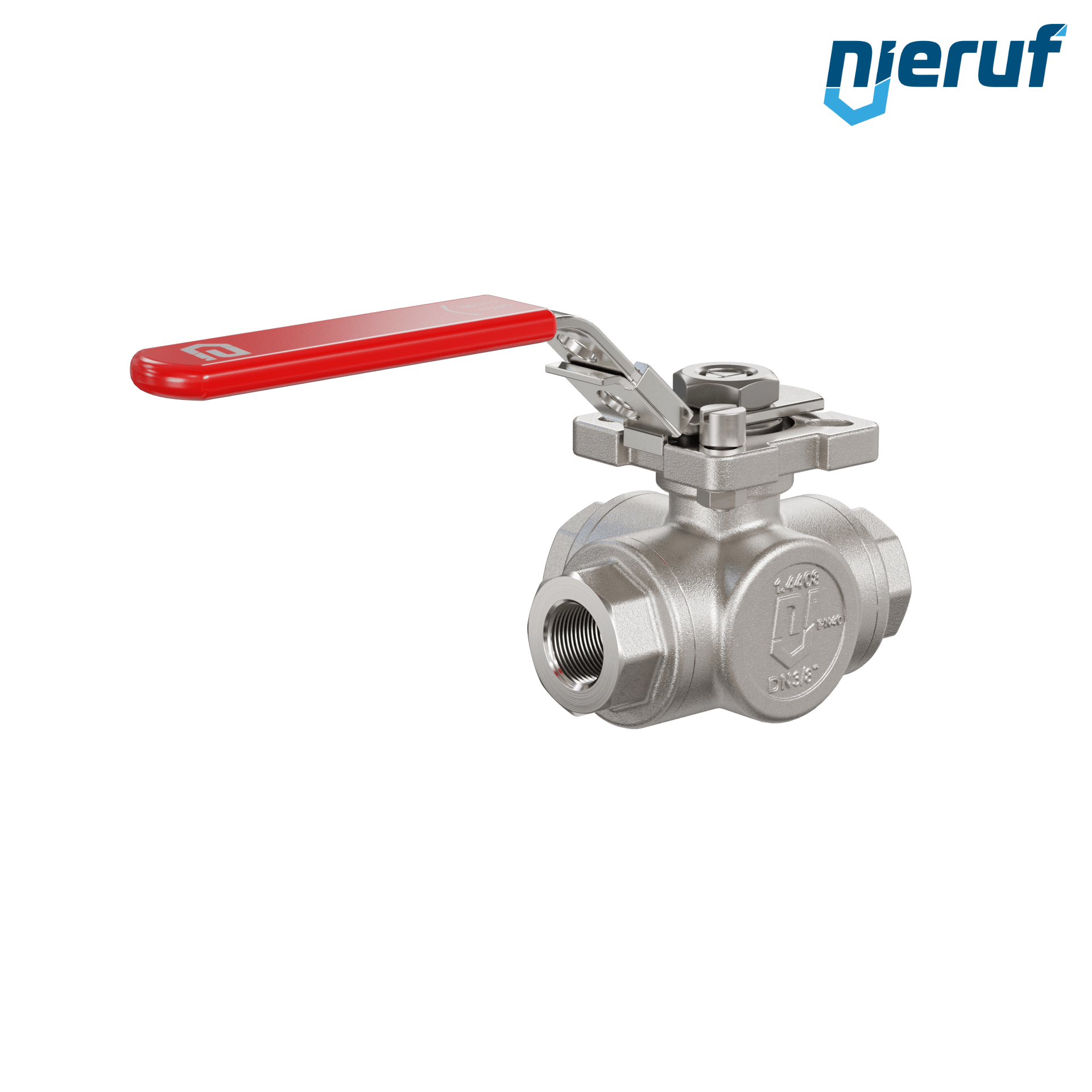 3 way ball valve DN10 - 3/8" inch T drilling seal made of PTFE in stainless steel for liquid and gaseous media