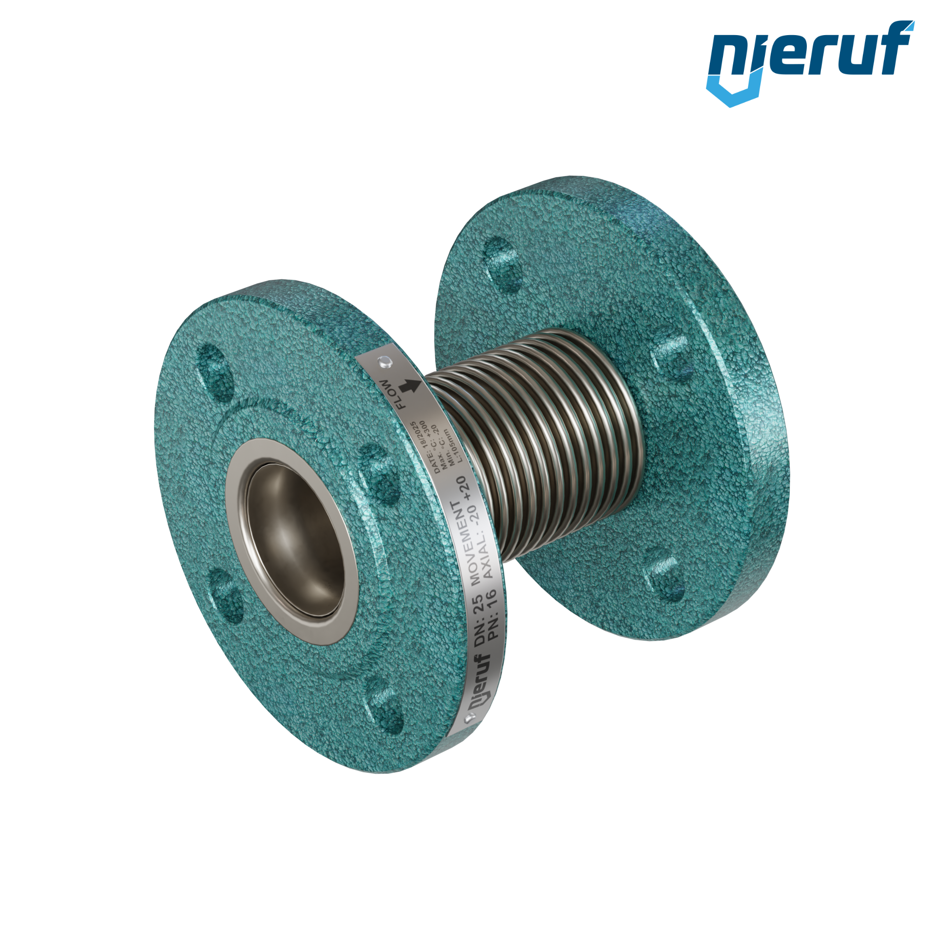 Axial expansion joint DN25, sleeve and bellow made of stainless steel 1.4541 / SS 321 flange acc. DIN EN 1092-1 PN 10/16