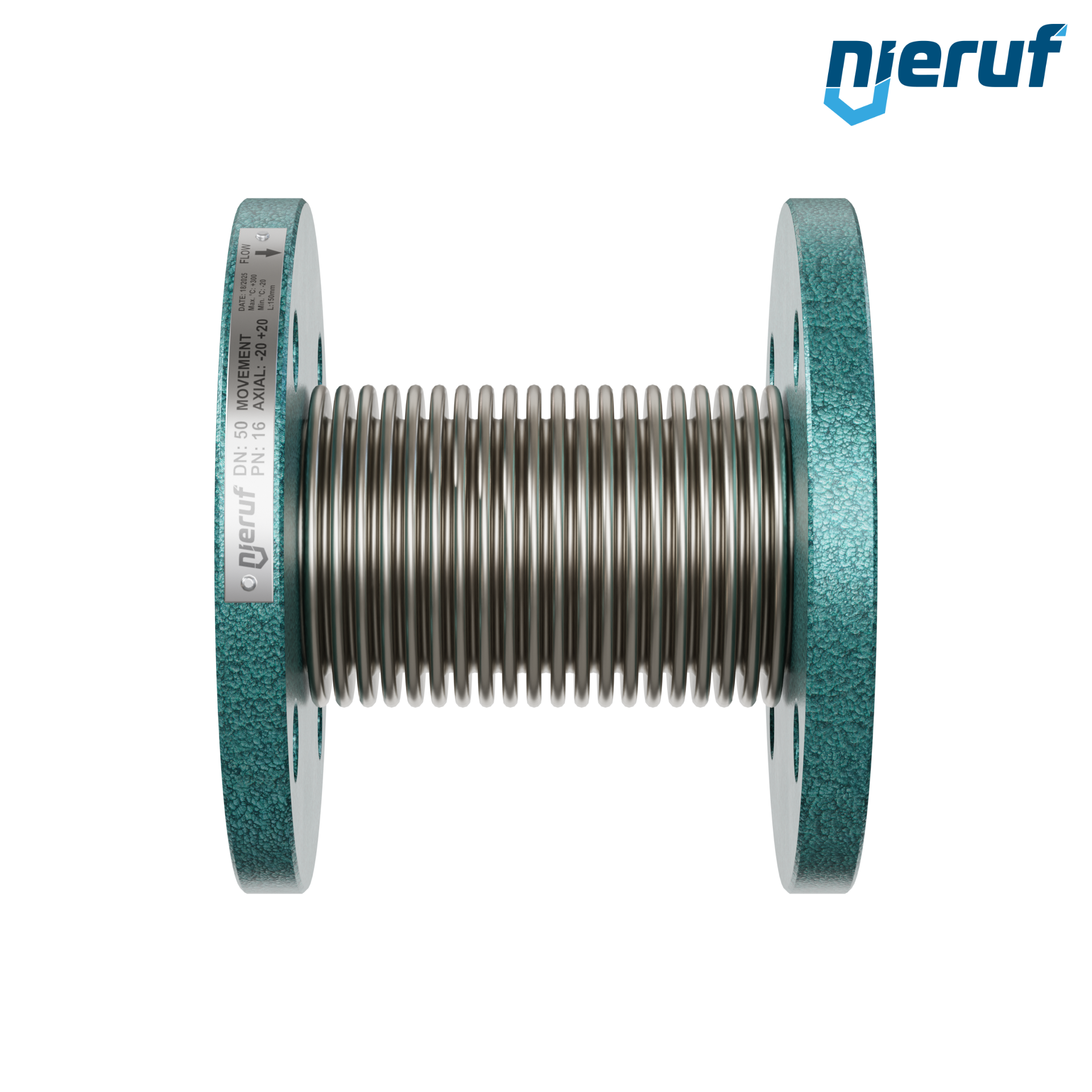 Axial expansion joint DN50, sleeve and bellow made of stainless steel 1.4541 / SS 321 flange acc. DIN EN 1092-1 PN 10/16