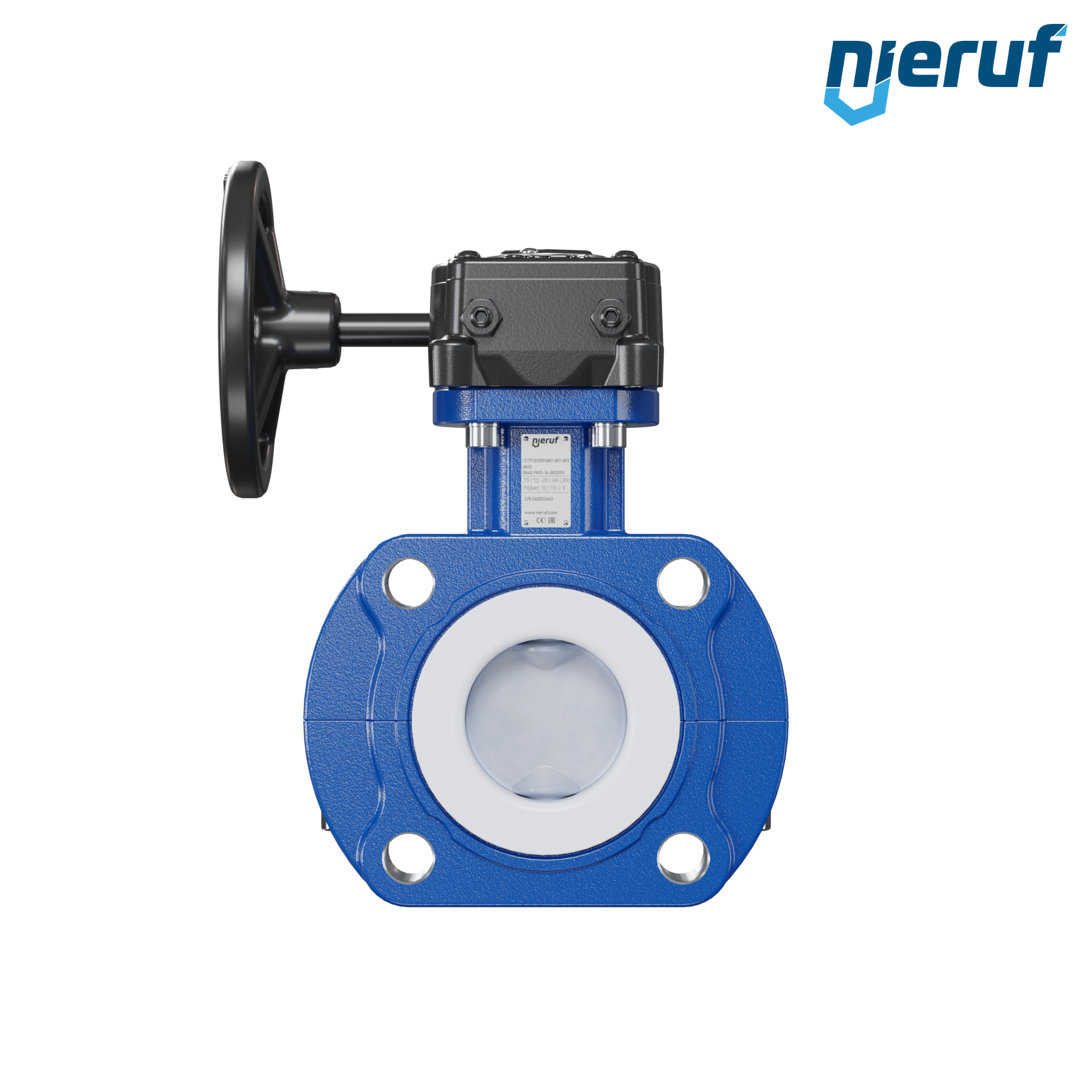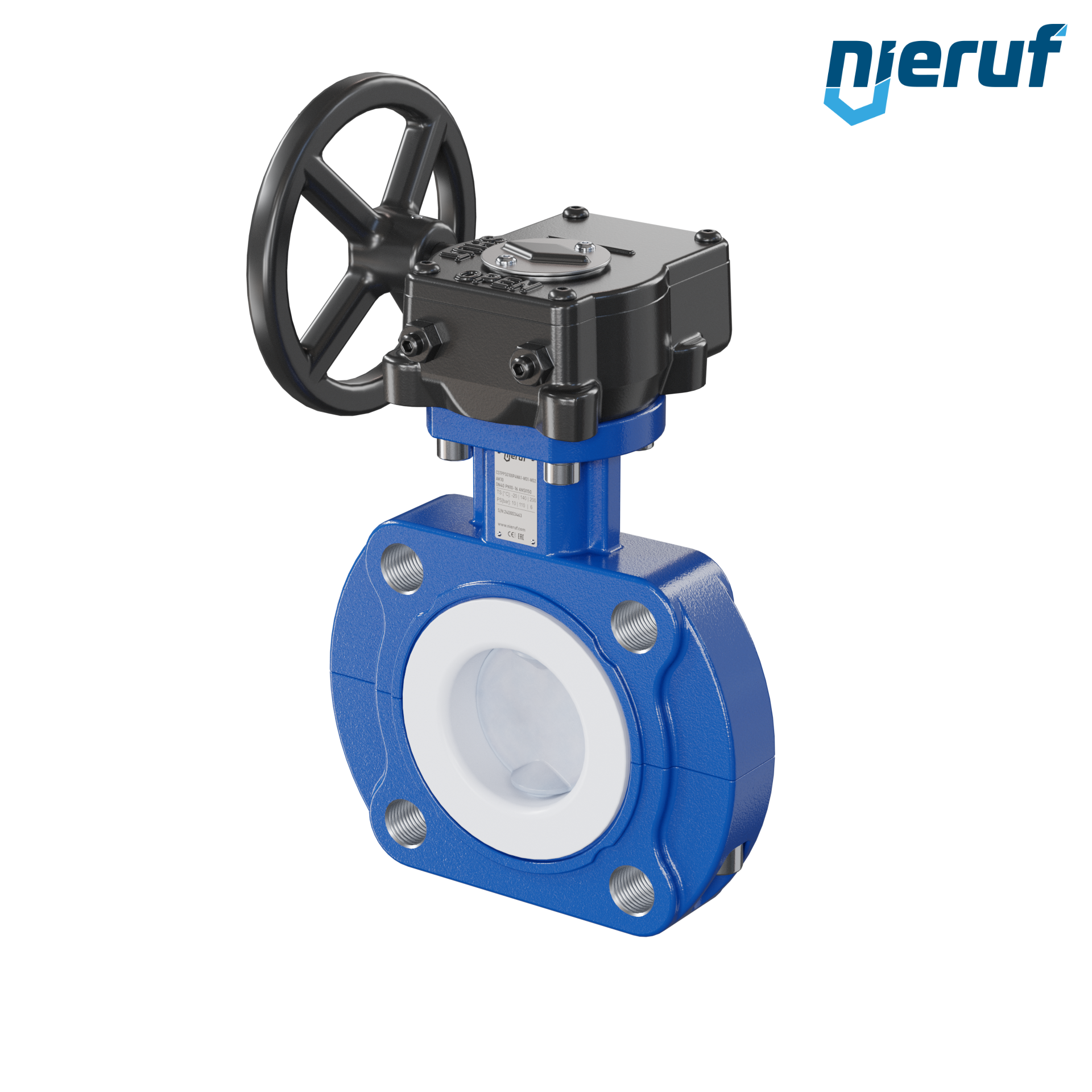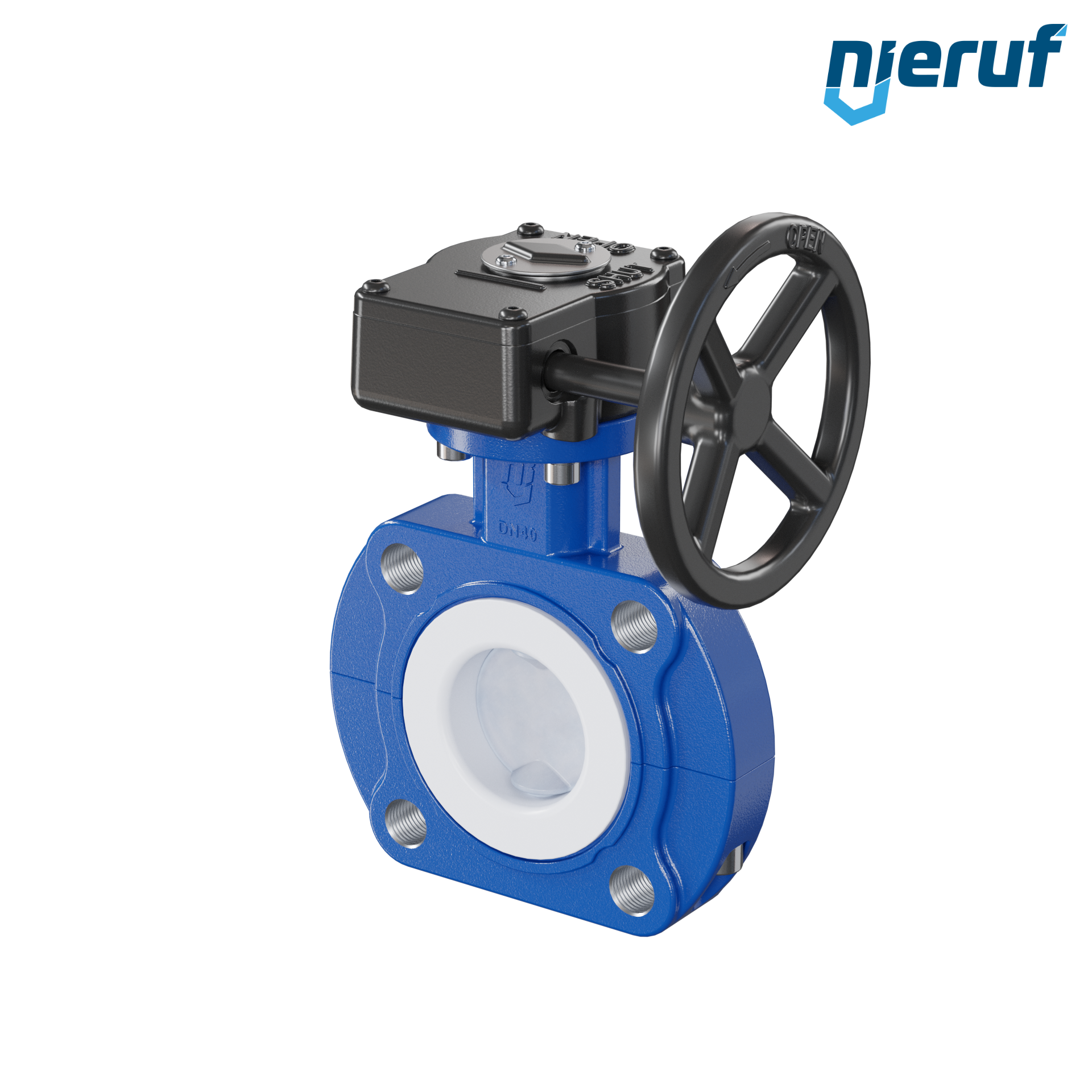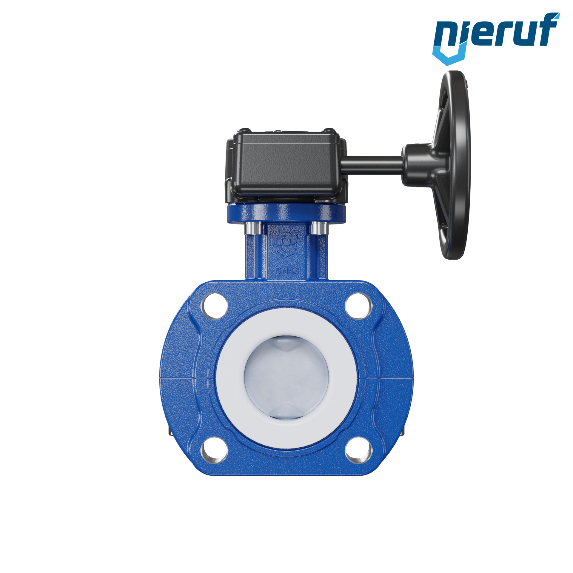 Butterfly-valve PTFE AK10 DN40 PN10-PN16 handwheel gearbox FKM insert