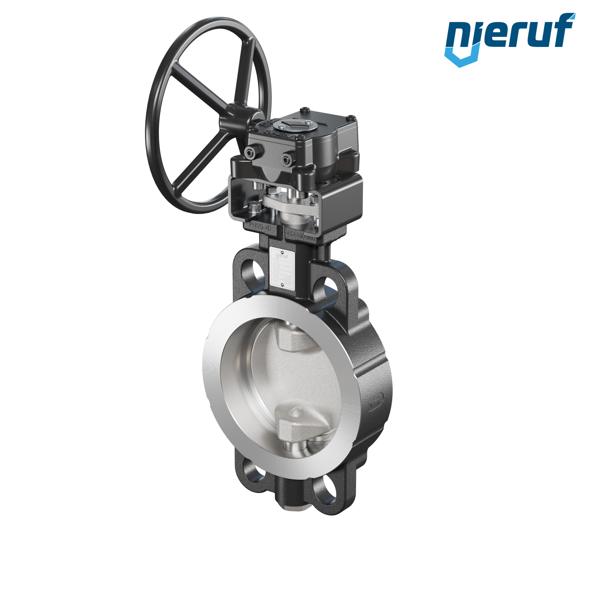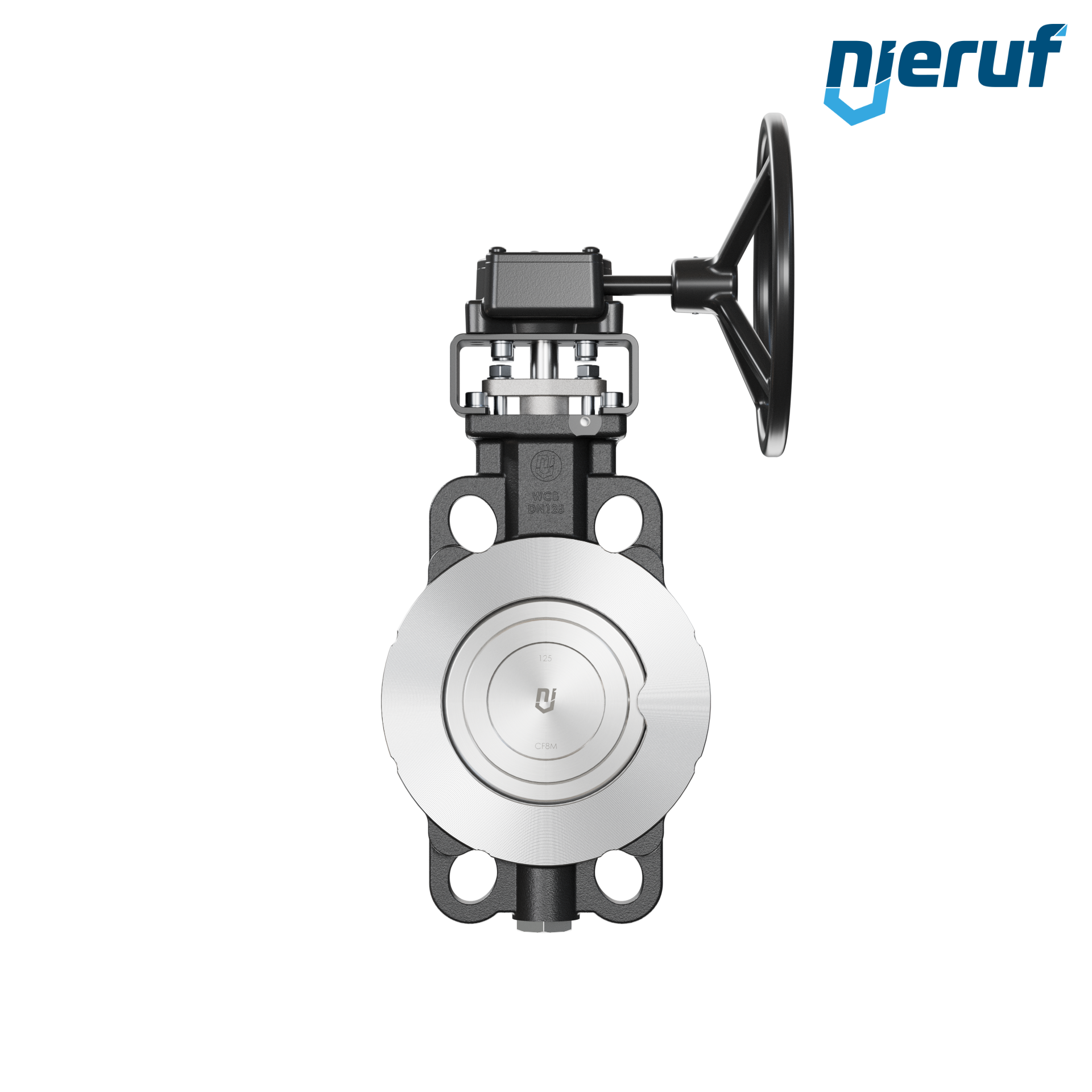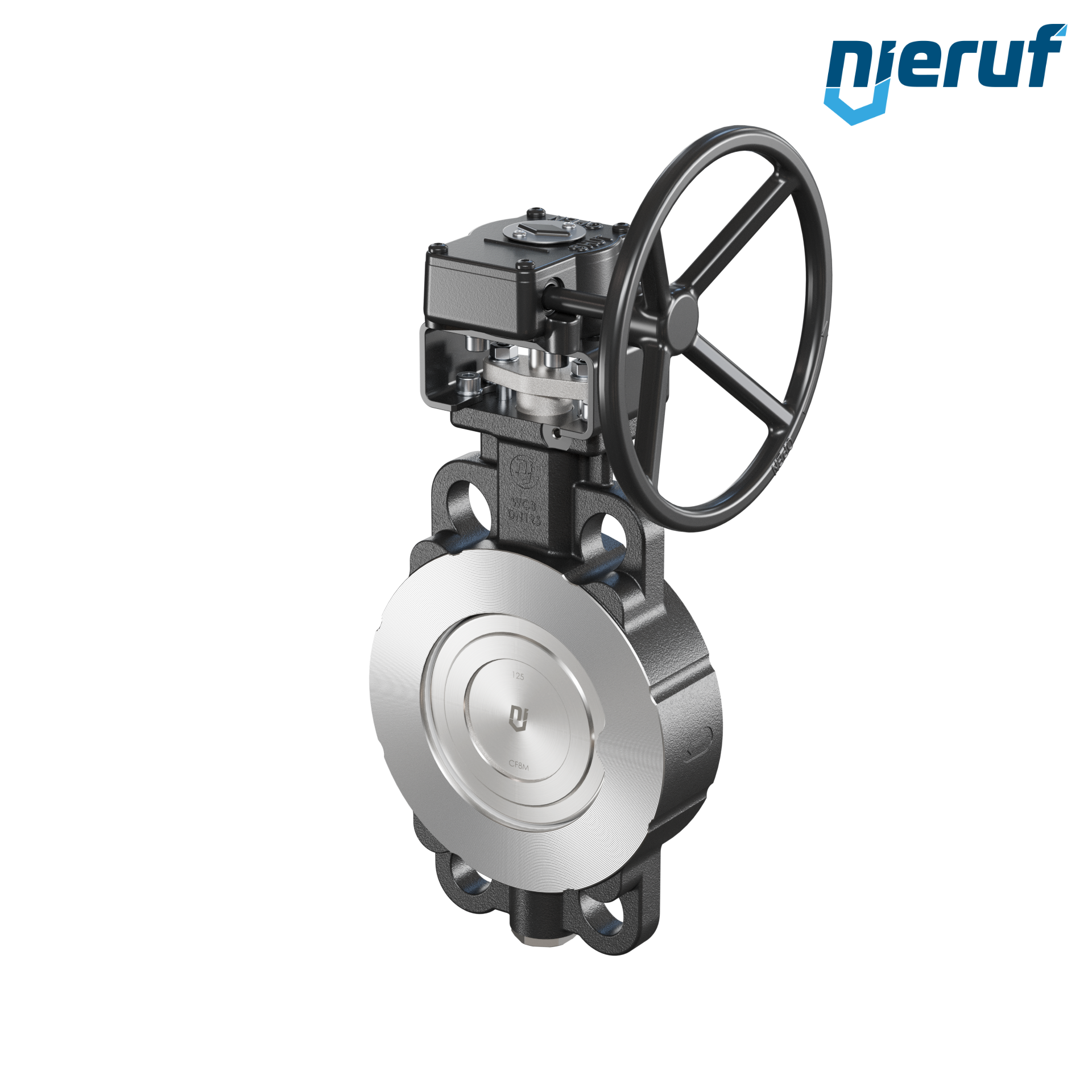 Double eccentric butterfly valve WAFER type AK11 DN 125 PN10-PN16-PN25-PN40 & ANSI150-ANSI300 with body made of carbon steel max. 40 bar worm gear