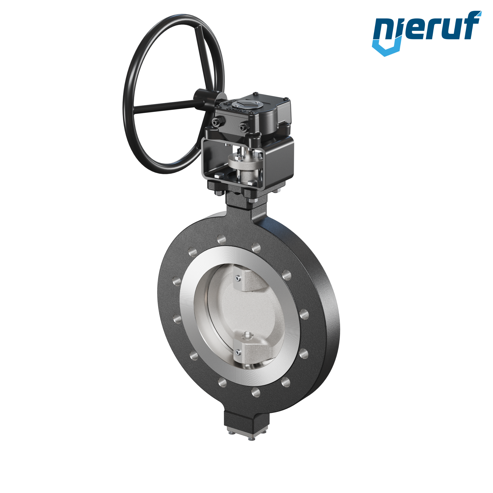 Double offset butterfly valve for demanding applications. Split stem for higher flow value, low maintenance.
