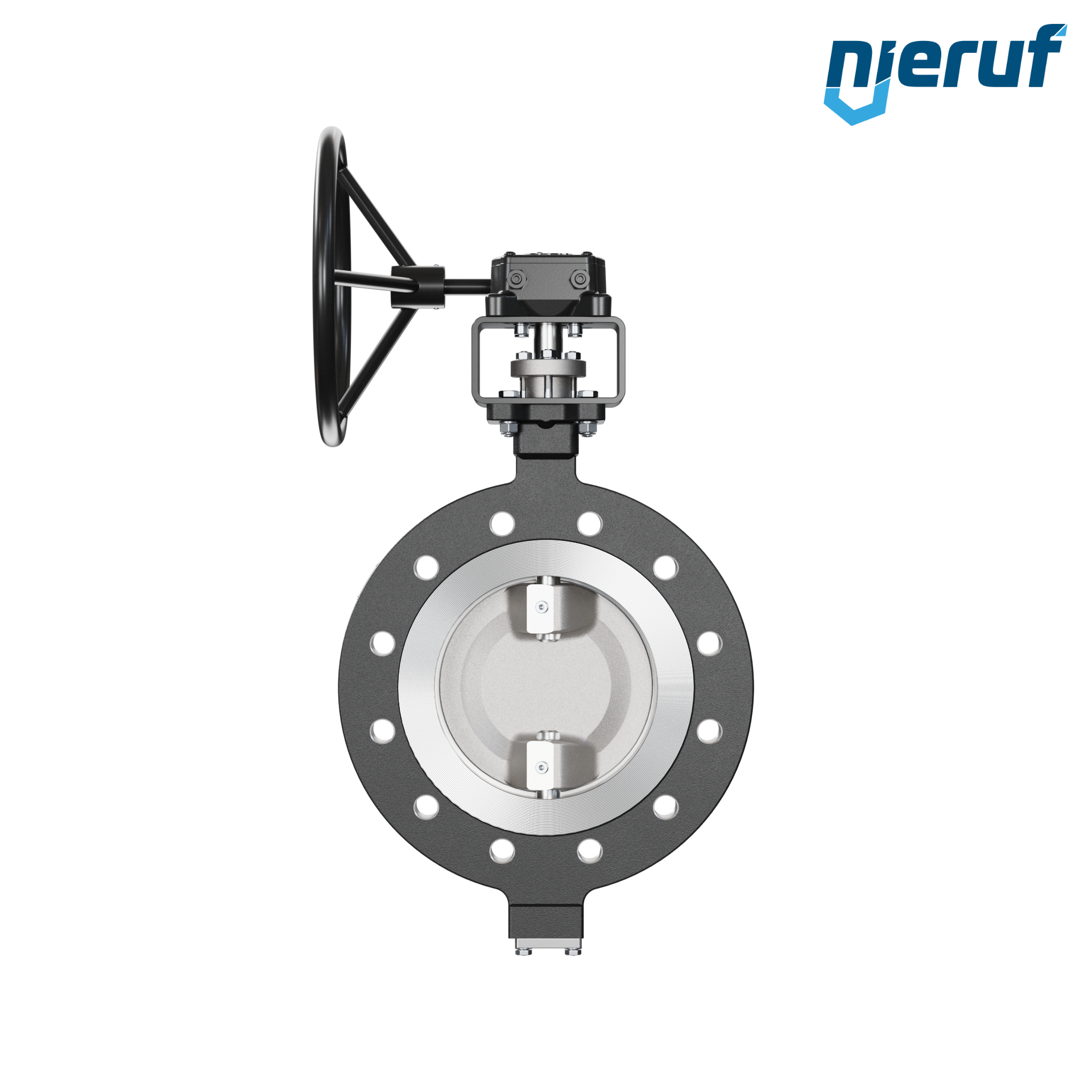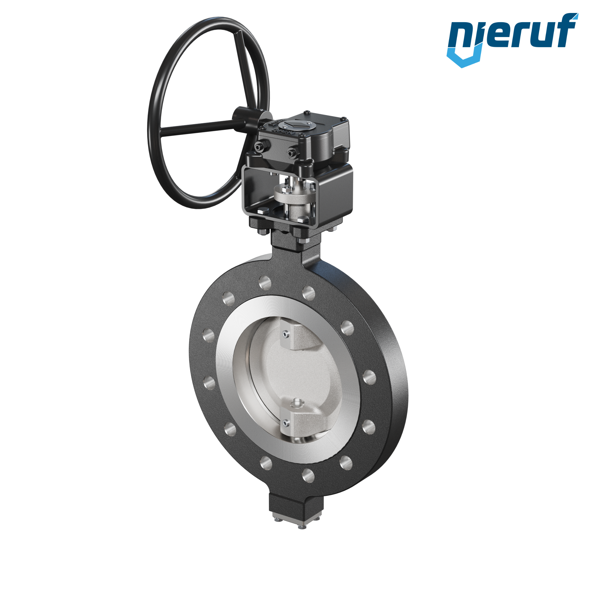 Double offset butterfly valve for demanding applications. Split stem for higher flow value, low maintenance.