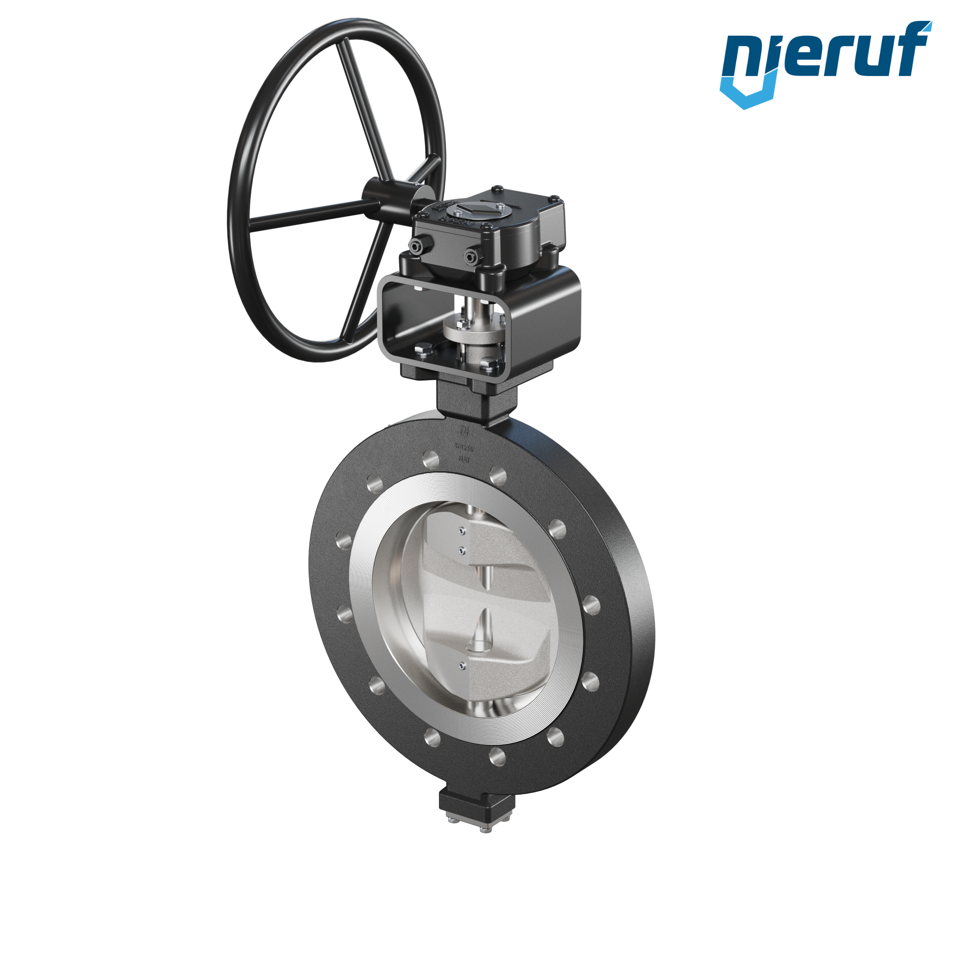 Double offset butterfly valve for demanding applications. Split stem for higher flow value, low maintenance.