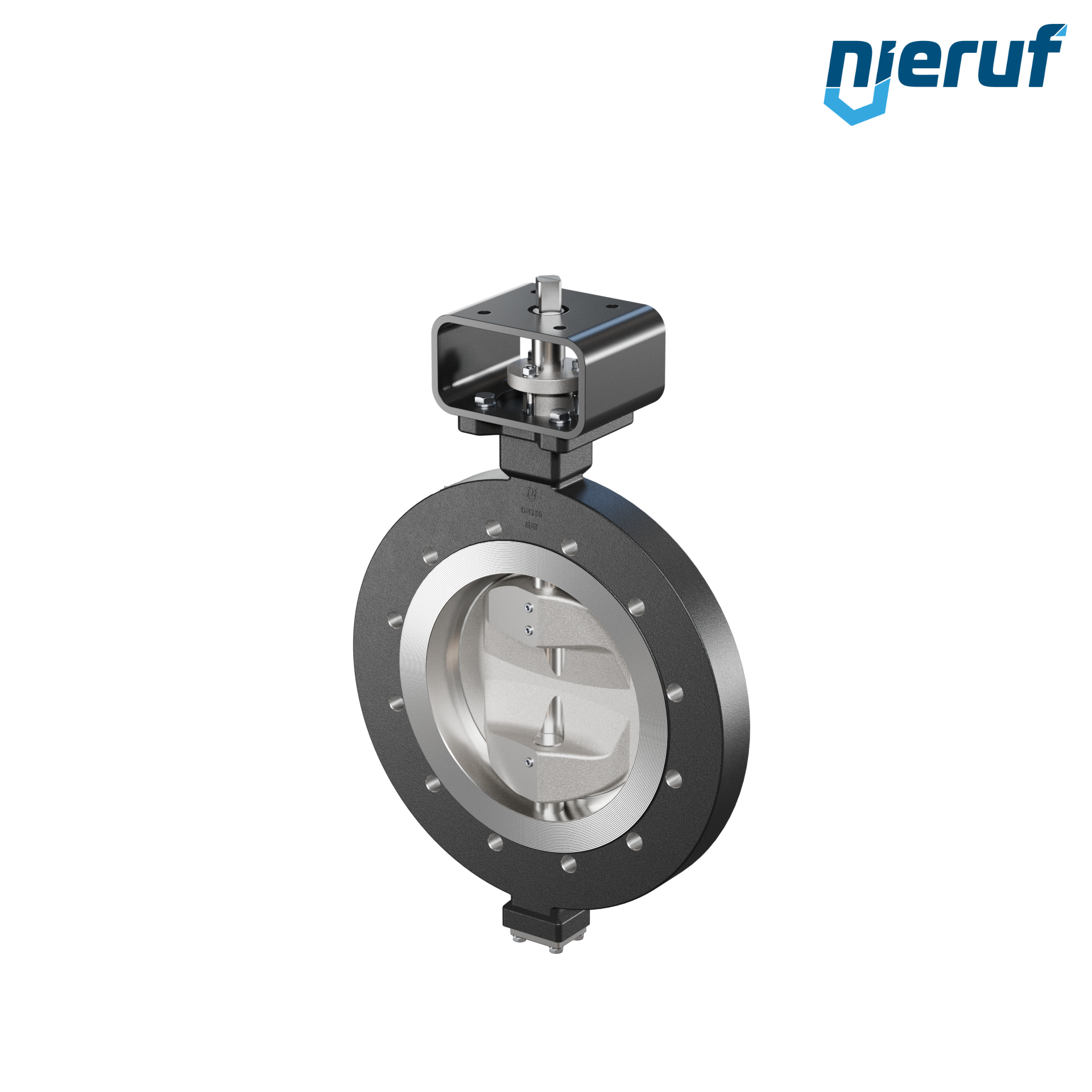 Double offset butterfly valve for demanding applications. Split stem for higher flow value, low maintenance.