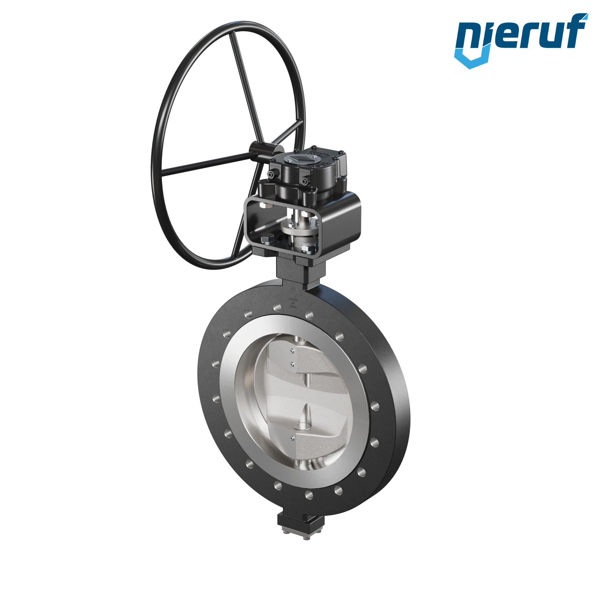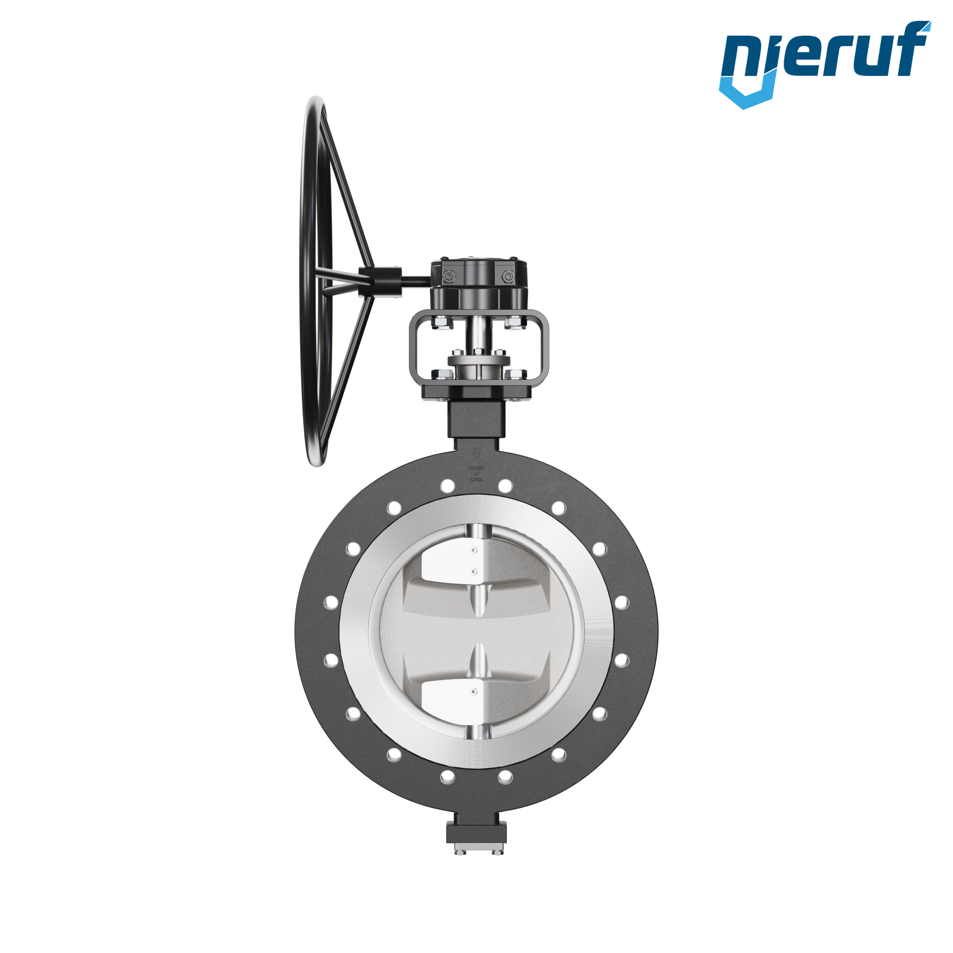 Double offset butterfly valve for demanding applications. Split stem for higher flow value, low maintenance.