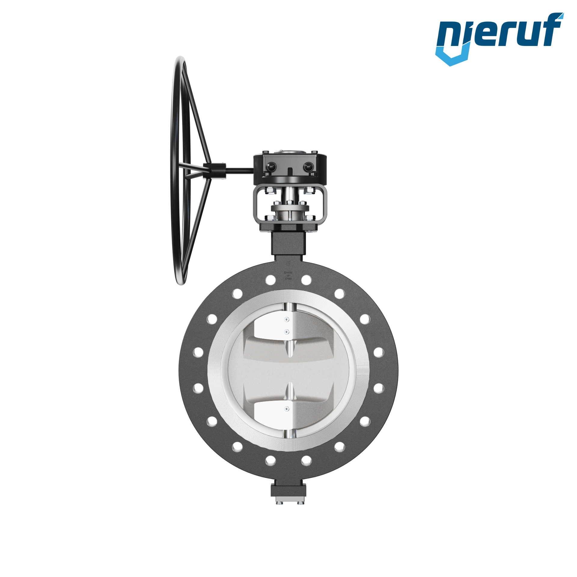 Double offset butterfly valve for demanding applications. Split stem for higher flow value, low maintenance.