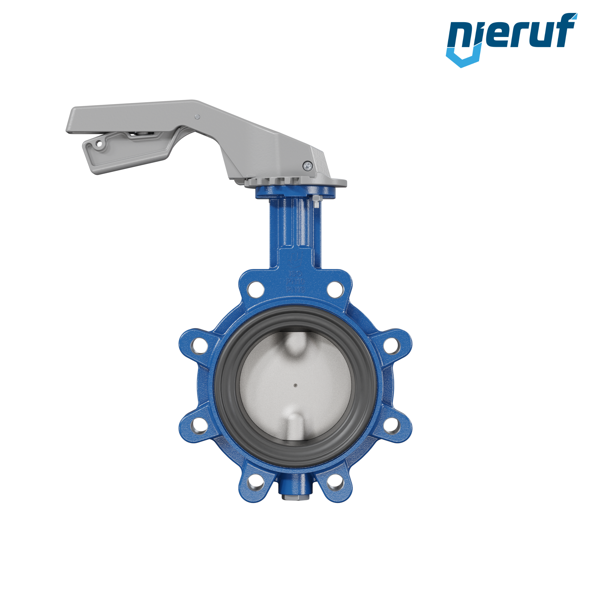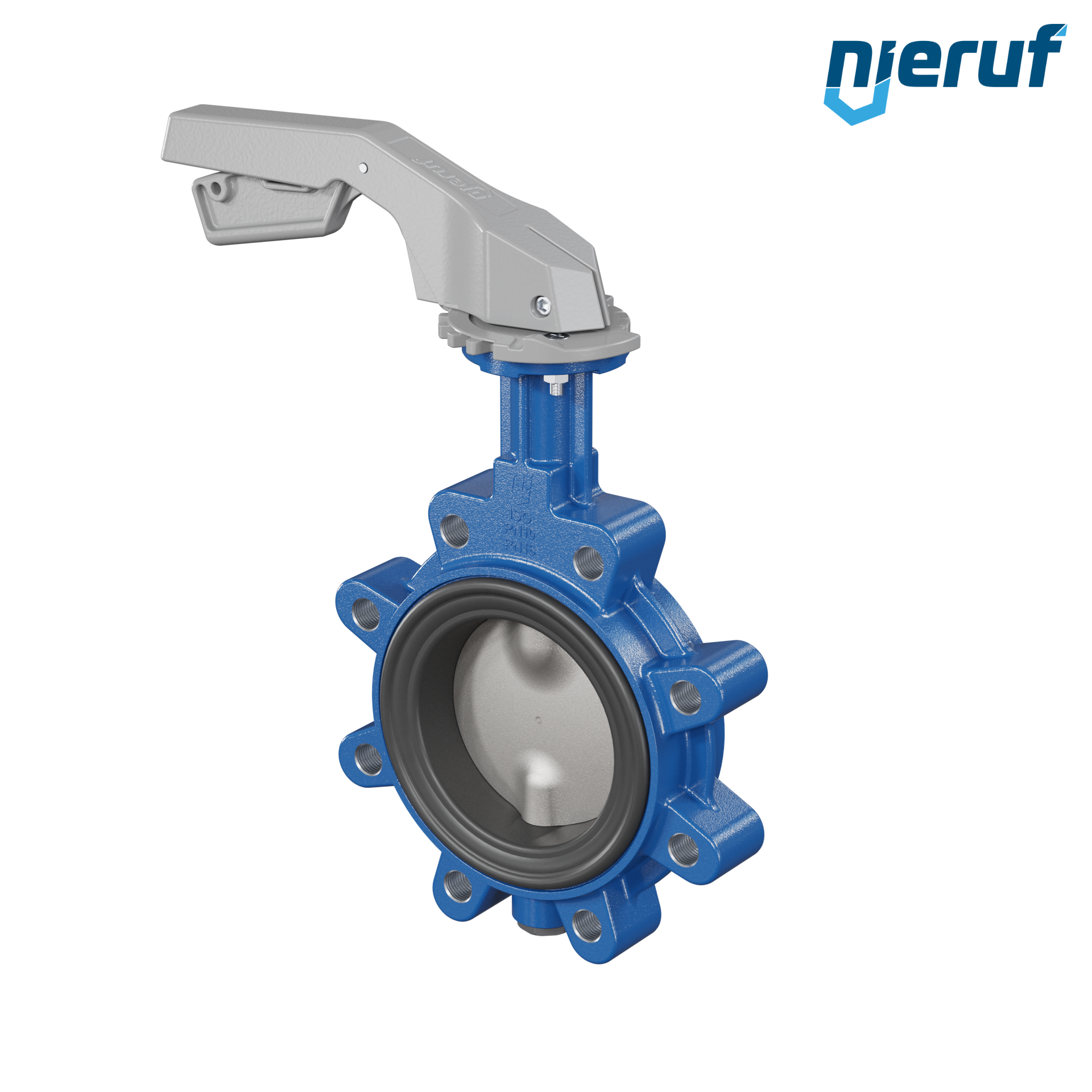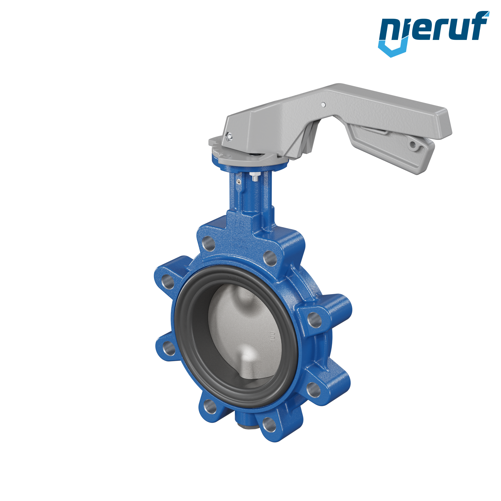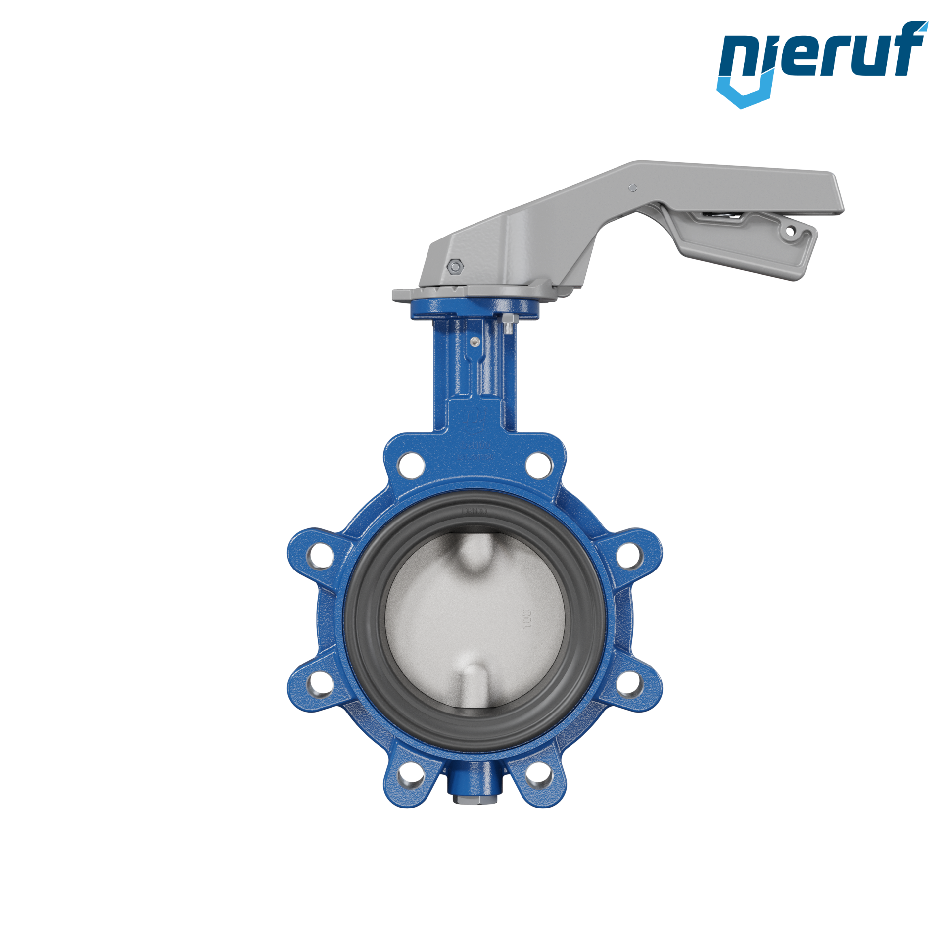 Butterfly valve DN 100 PN10-PN16 Lug type body made of GGG40 with notch lever grey seal FPM for liquid and gaseous media industry design
