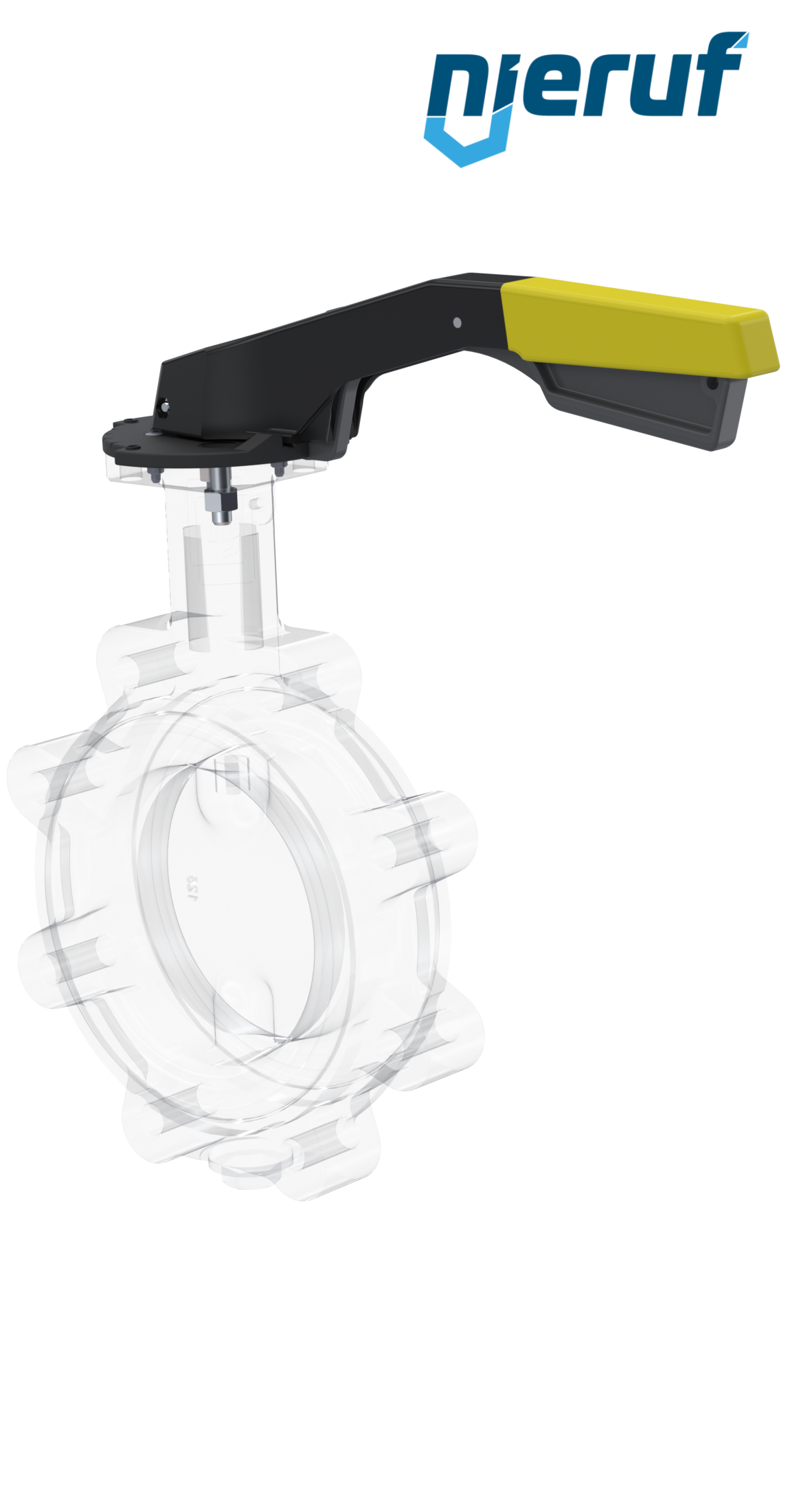 Butterfly valve DN 125 PN10-PN16 Lug type GGG40 with notch lever with yellow sleeve NBR-70-black DVGW gas