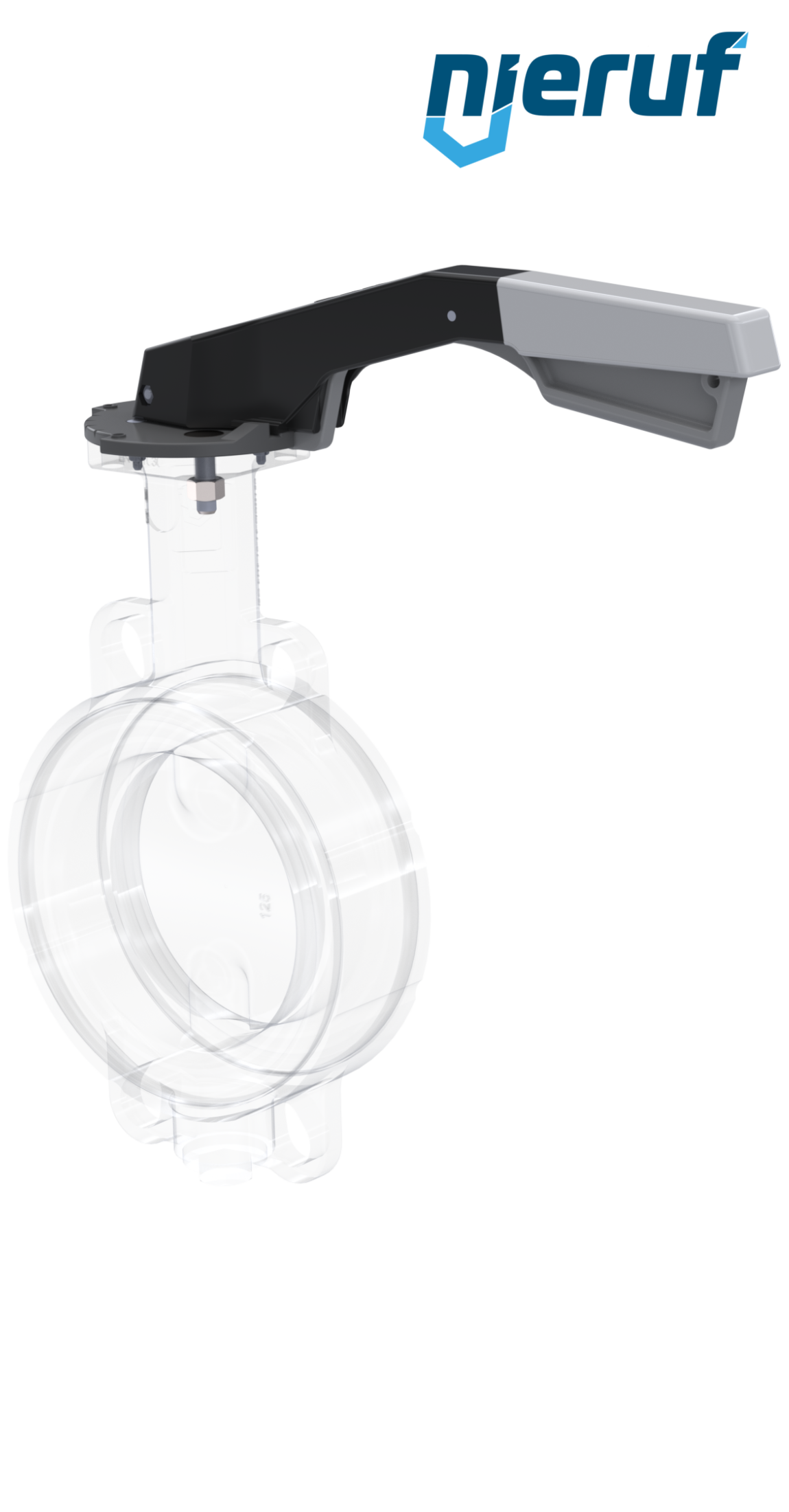 Butterfly valve DN 150 PN6-PN10-PN16 & ANSI150 Wafer type GGG40 with notch lever with grey sleeve seal EPDM DVGW drinking water, WRAS, ACS, W270