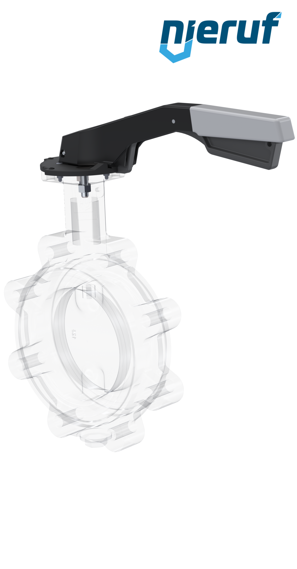 Butterfly valve DN 150 PN10-PN16 Lug type body made of GGG40 with notch lever with grey sleeve seal FPM for liquid and gaseous media industry design