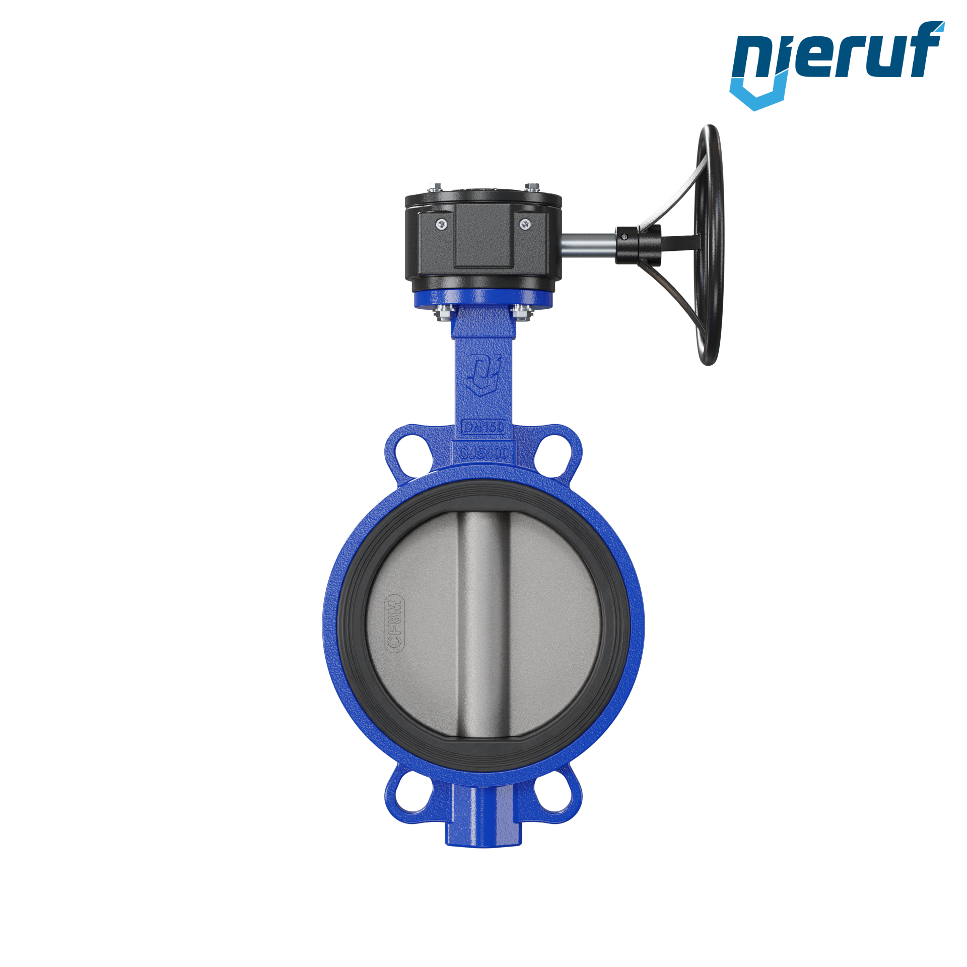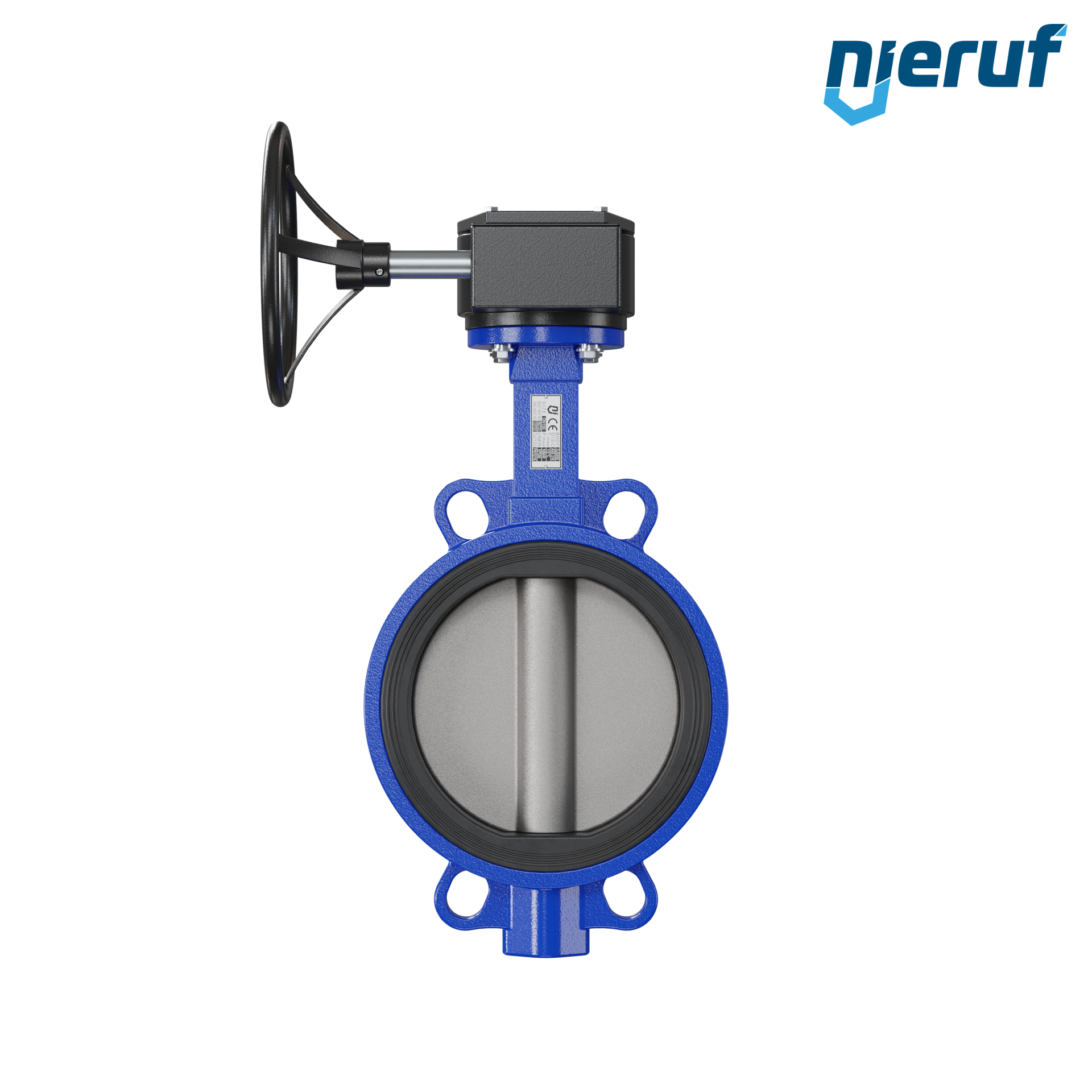 Butterfly valve DN 150 PN16 Wafer type body made of cast iron EN GJL-250 (GG25) with gearbox EPDM