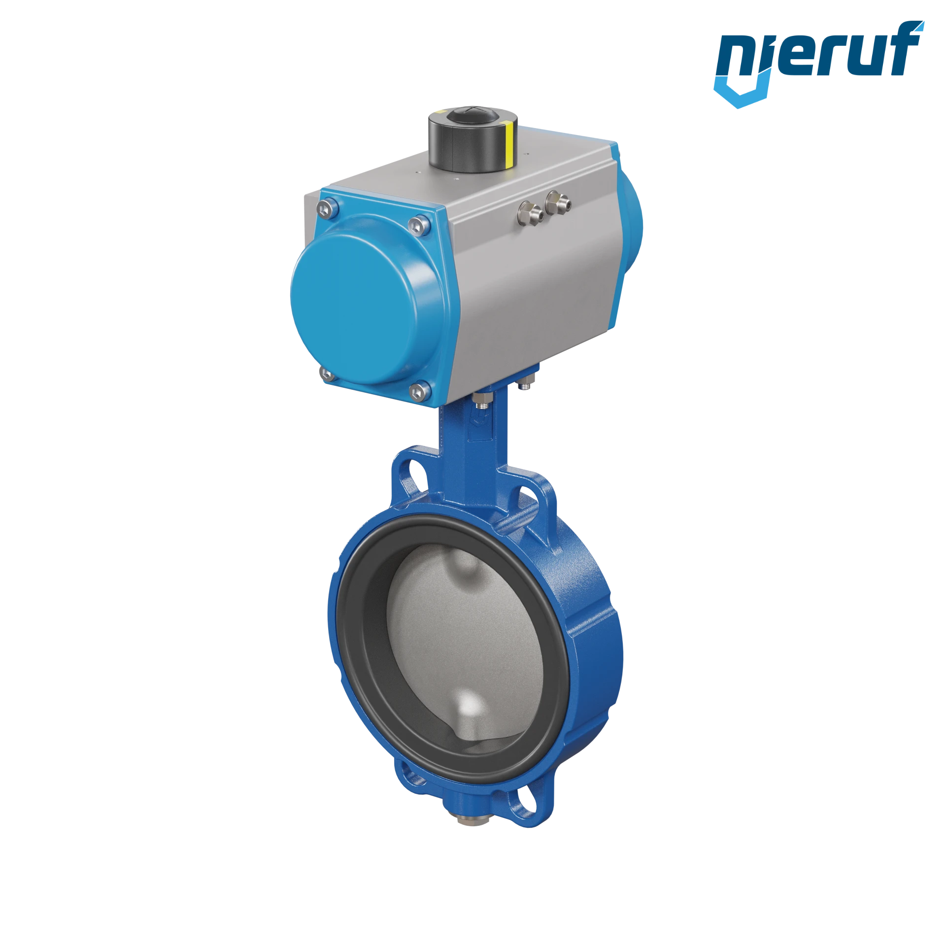 Butterfly valve DN 150 Wafer type body made of GGG40 with pneumatic actuator double acting seal EPDM DVGW drinking water, WRAS, ACS, W270 industry design
