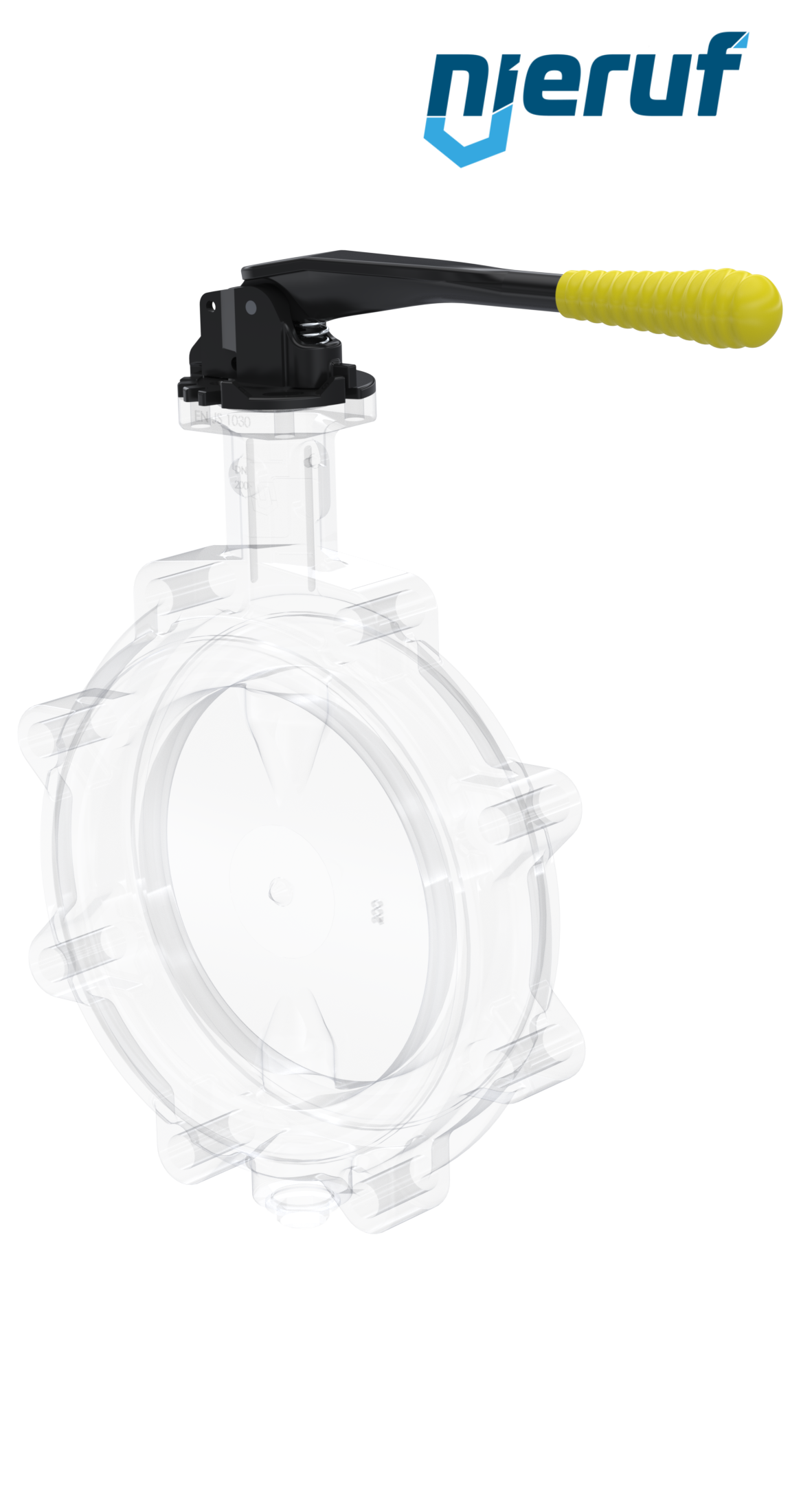 Butterfly valve DN 200 PN10 Lug type GGG40 with notch lever with yellow sleeve NBR-70-black DVGW gas