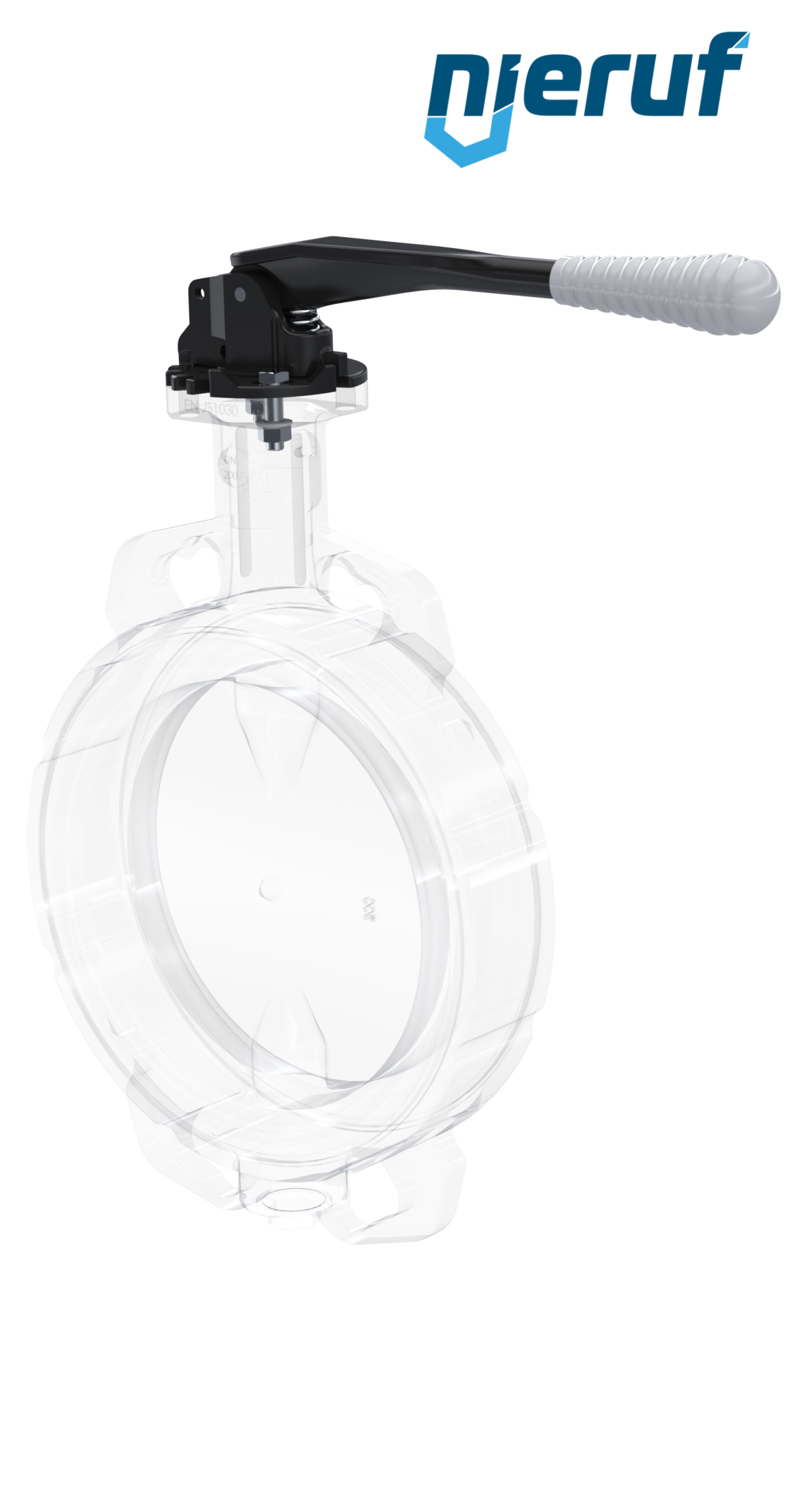 Butterfly valve DN 200 PN6-PN10-PN16 & ANSI150 Wafer type body made of GGG40 with notch lever with grey sleeve seal FPM