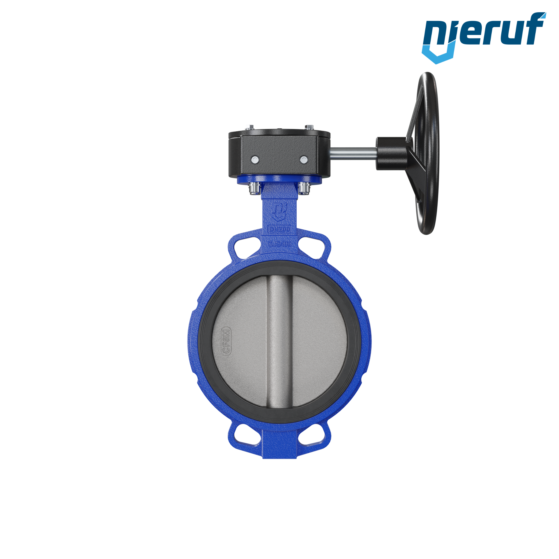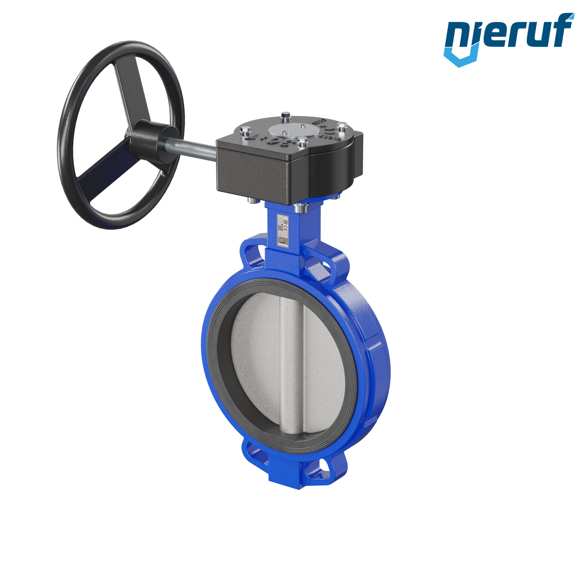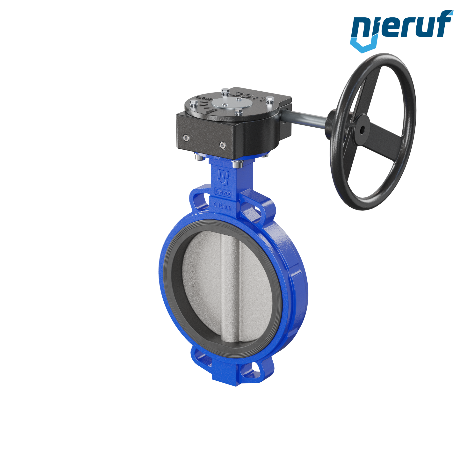 Butterfly valve DN 200 PN16 Wafer type body made of cast iron EN GJL-250 (GG25) with gearbox NBR