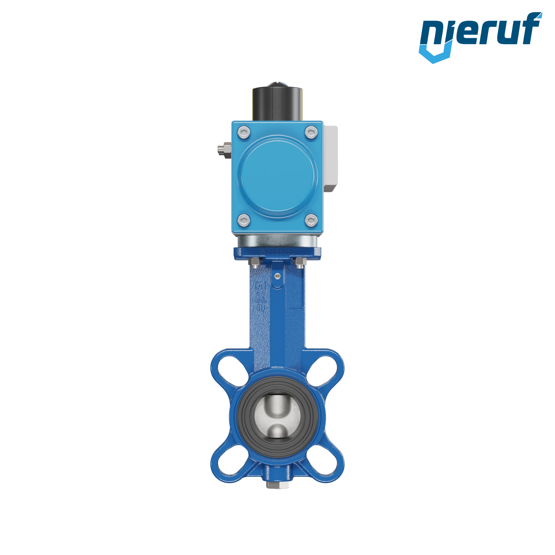 Butterfly valve DN 40 Wafer type body made of GGG40 with pneumatic actuator single acting normally closed seal NBR-70-black DVGW gas industry design