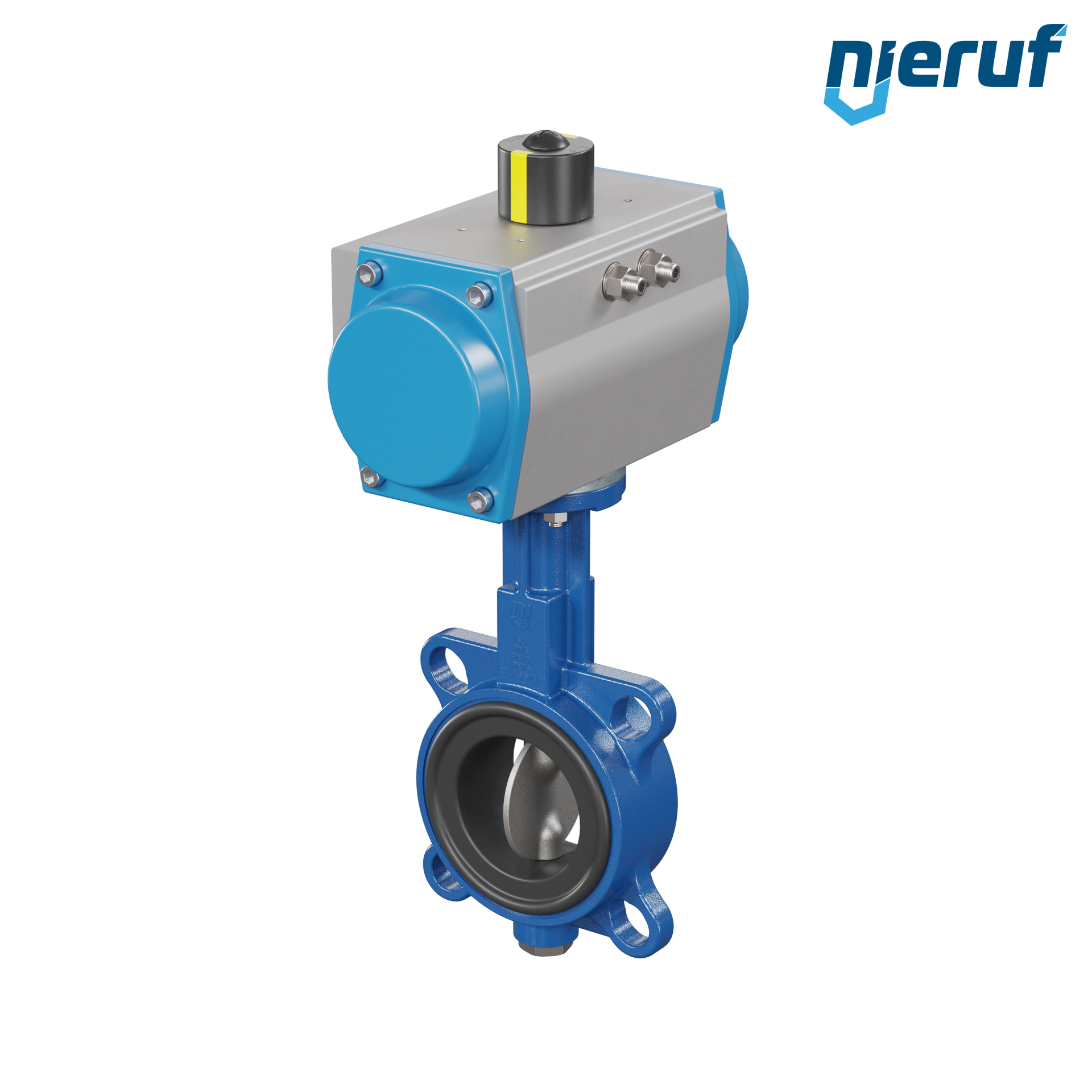Butterfly valve DN 65 Wafer type body made of GGG40 with pneumatic actuator single acting normally open seal EPDM DVGW drinking water, WRAS, ACS, W270 industry design