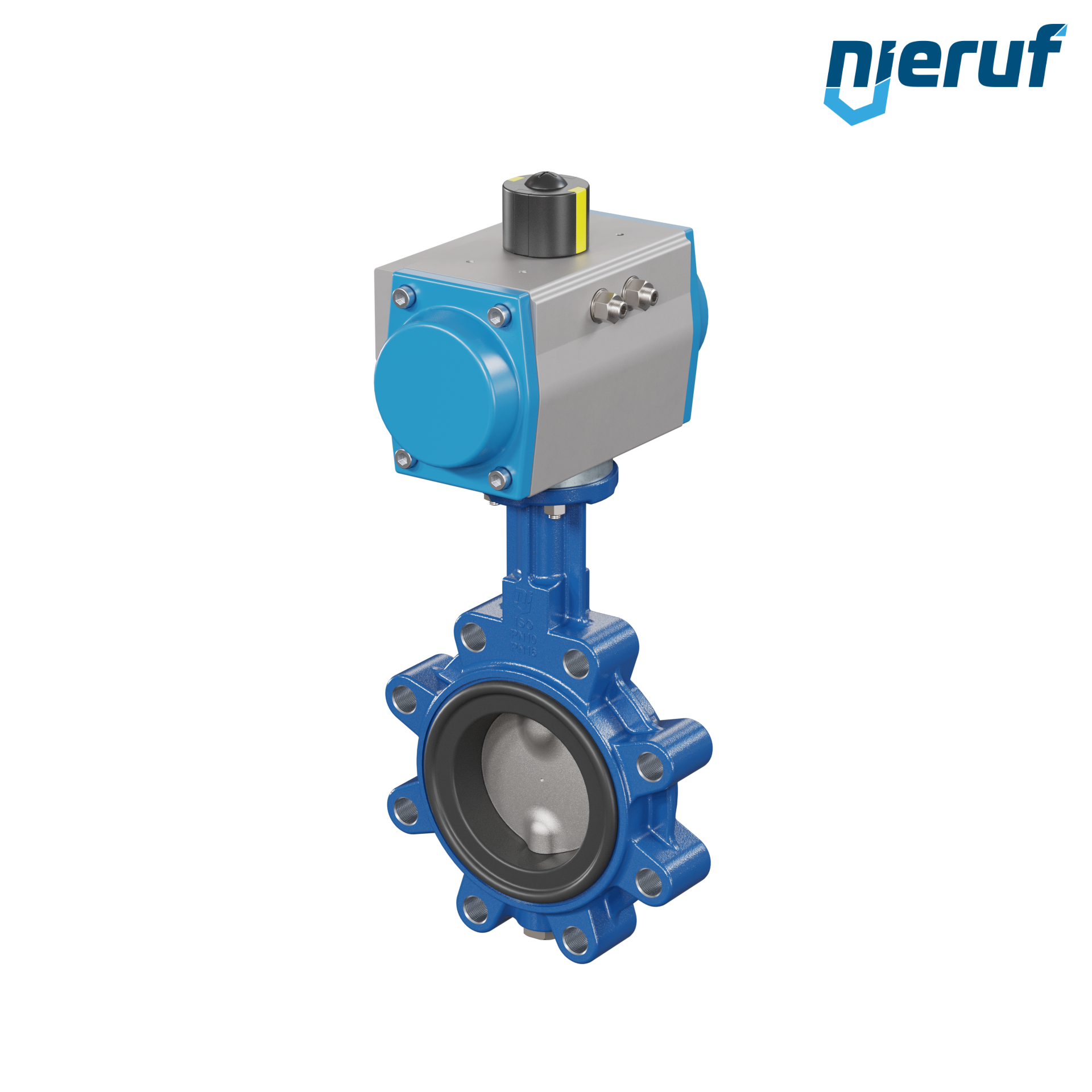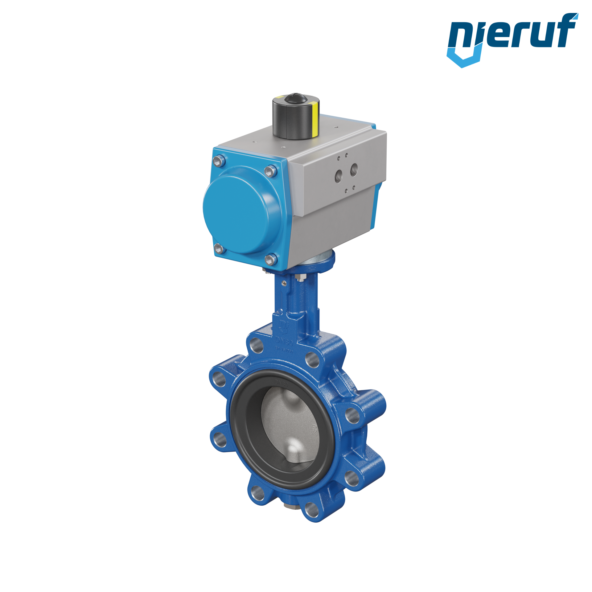 Butterfly valve DN 80 Lug type body made of GGG40 with pneumatic actuator double acting seal EPDM DVGW drinking water, WRAS, ACS, W270 industry design