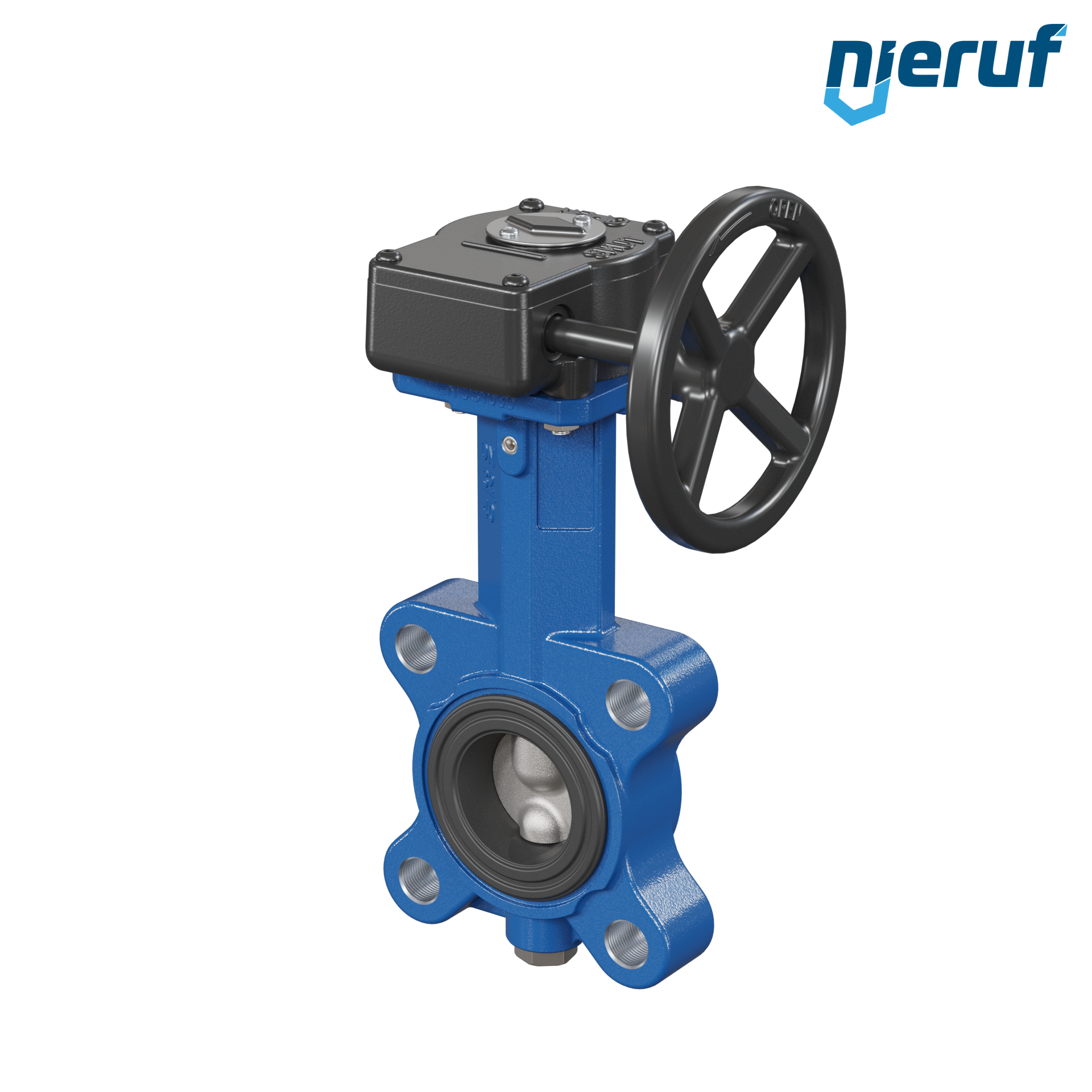Butterfly valve DN 32 PN10-PN16 Lug type GGG40 with Worm gear NBR-70-black DVGW gas