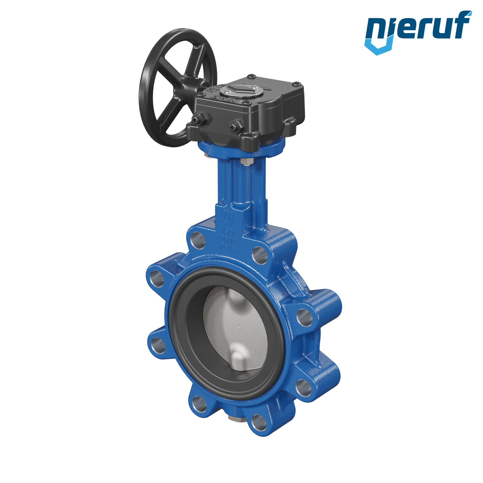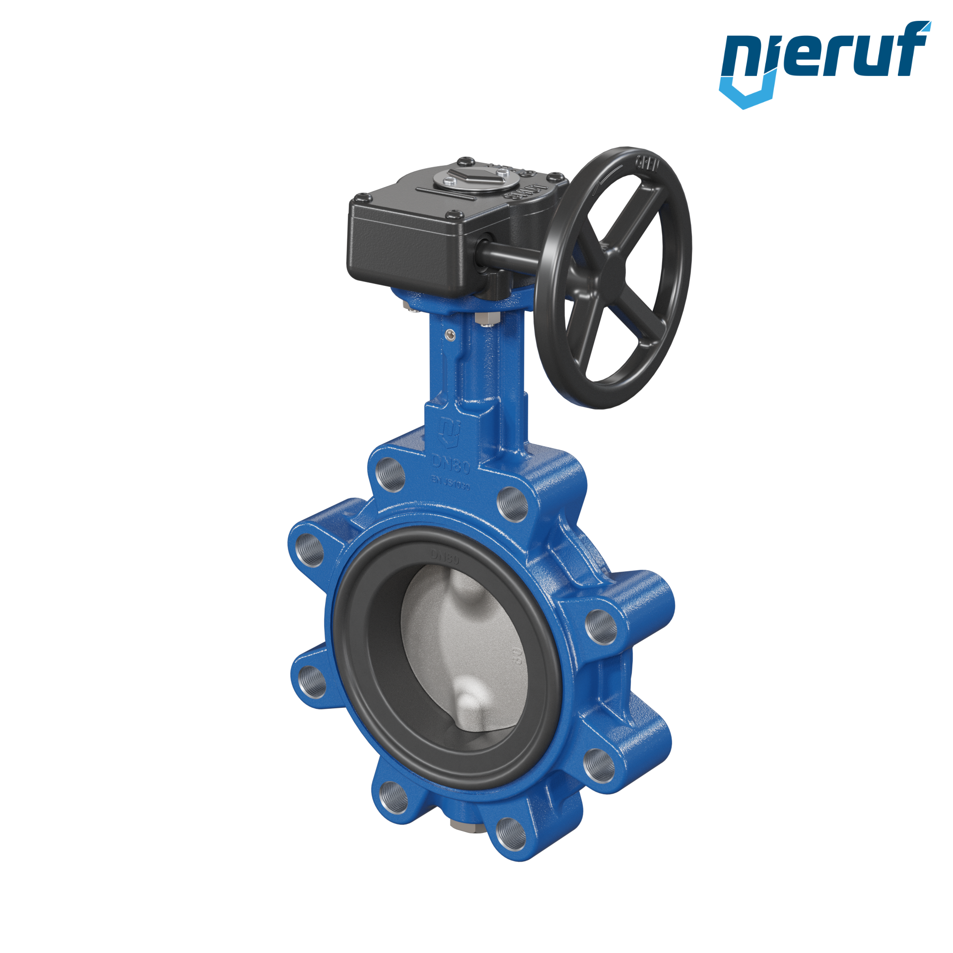 Butterfly valve DN 80 PN10-PN16 Lug type GGG40 with Worm gear NBR-70-black DVGW gas