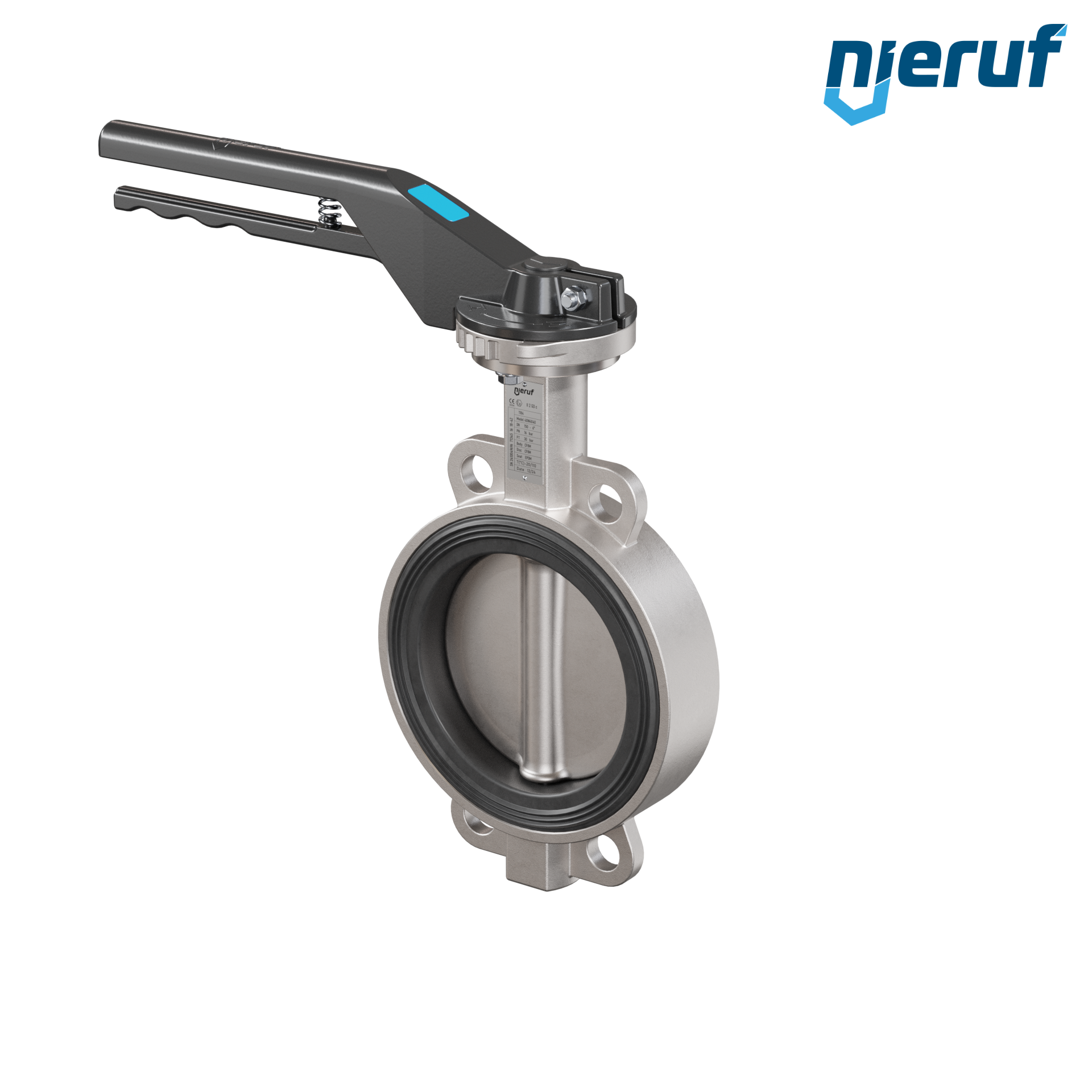 stainless-steel butterfly valve DN 150 PN16 Wafer type body made of stainless-steel 1.4408 with notch lever seal made of EPDM