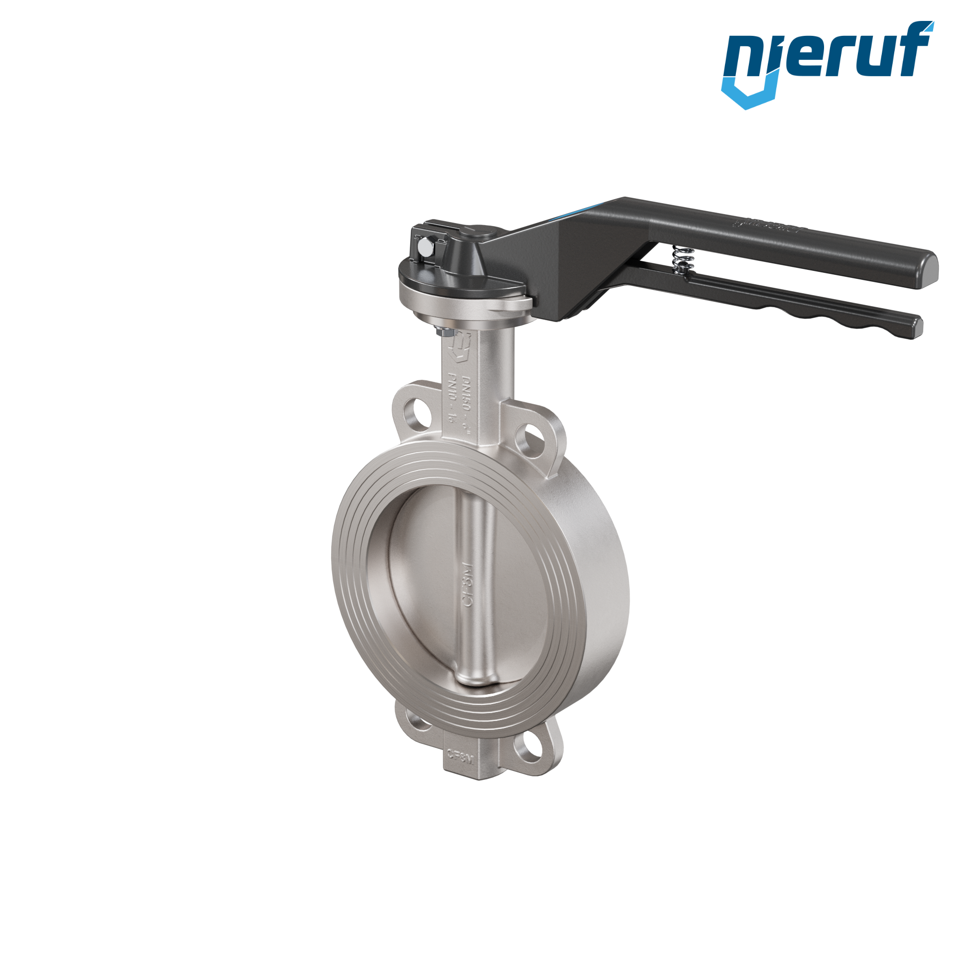 stainless-steel butterfly valve DN 150 PN16 Wafer type body made of stainless-steel 1.4408 with notch lever seal made of metall