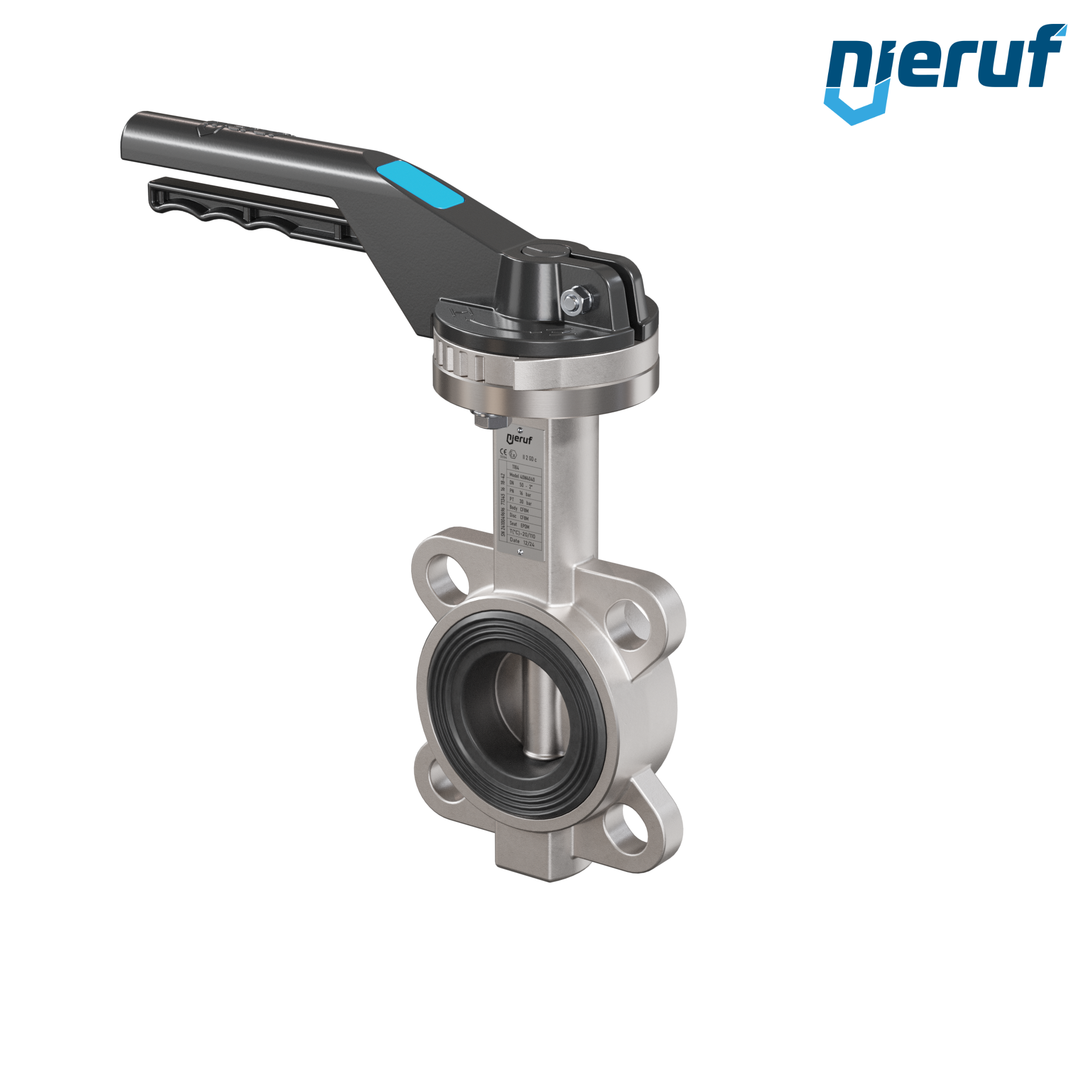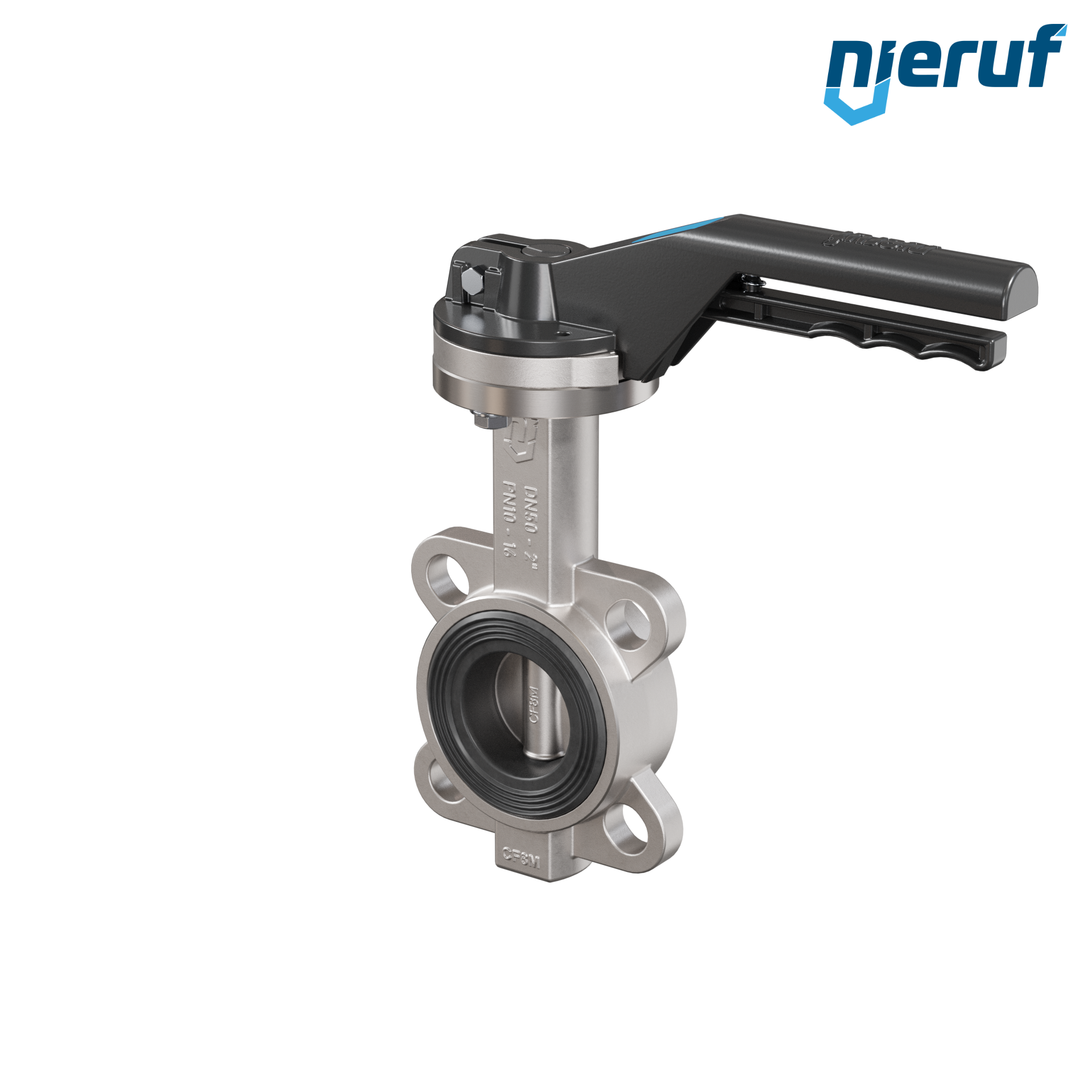 stainless-steel butterfly valve DN 50 PN16 Wafer type body made of stainless-steel 1.4408 with notch lever seal made of EPDM